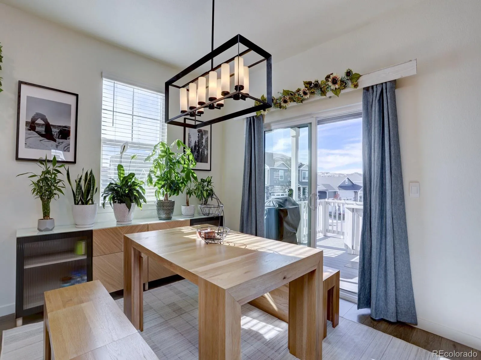 Like-new, move-in-ready 2023 corner-lot ranch on an approx 0.20-acre lot with a more open rear outlook, covered outdoor living, an oversized 3-car epoxy garage, smart-home upgrades, and a full walkout basement. This bright 4 bed / 2 bath home sits on a desirable corner lot. The elevated homesite means the home behind sits lower, so your rear outlook from the dining room and covered back patio is more open and not directly obstructed by a neighboring roofline. Lightly lived in by the original owners, the interior still feels like new. The oversized 3-car garage features 12ft ceilings and professional polyaspartic (epoxy) floor. Smart conveniences include app-controlled garage, entry, and select lighting, an app-controlled smart curtain on the patio sliding door, and smart dimmers and motion sensors; fan speed is via in-wall/manual controls. Security includes ADT with two exterior cameras, a video doorbell, and door/window/patio sensors. Built in 2023 to modern energy codes, with an efficiency-minded design and a tankless water heater to help reduce heating and cooling costs and keep utility bills down. Full, unfinished walkout basement ready to finish to your needs—rec room, additional bedrooms, gym, or multigenerational space. Outdoors: covered front porch and covered back patio. The low-maintenance backyard with rock, natural grass, and irrigation is a clean slate for your landscaping ideas. The southeast-facing driveway gets great sun exposure, helping snow melt faster in winter. Inclusions: gas range/oven, built-in microwave, dishwasher; GE washer/dryer combo negotiable. Community amenities include a pool and fitness center, nearby parks and trails, and convenient access around Castle Rock. Area improvements include a planned Costco and a new I-25 interchange intended to enhance access; timelines subject to municipal/agency schedules. Close to historic downtown dining/shopping and the seasonal farmers market.