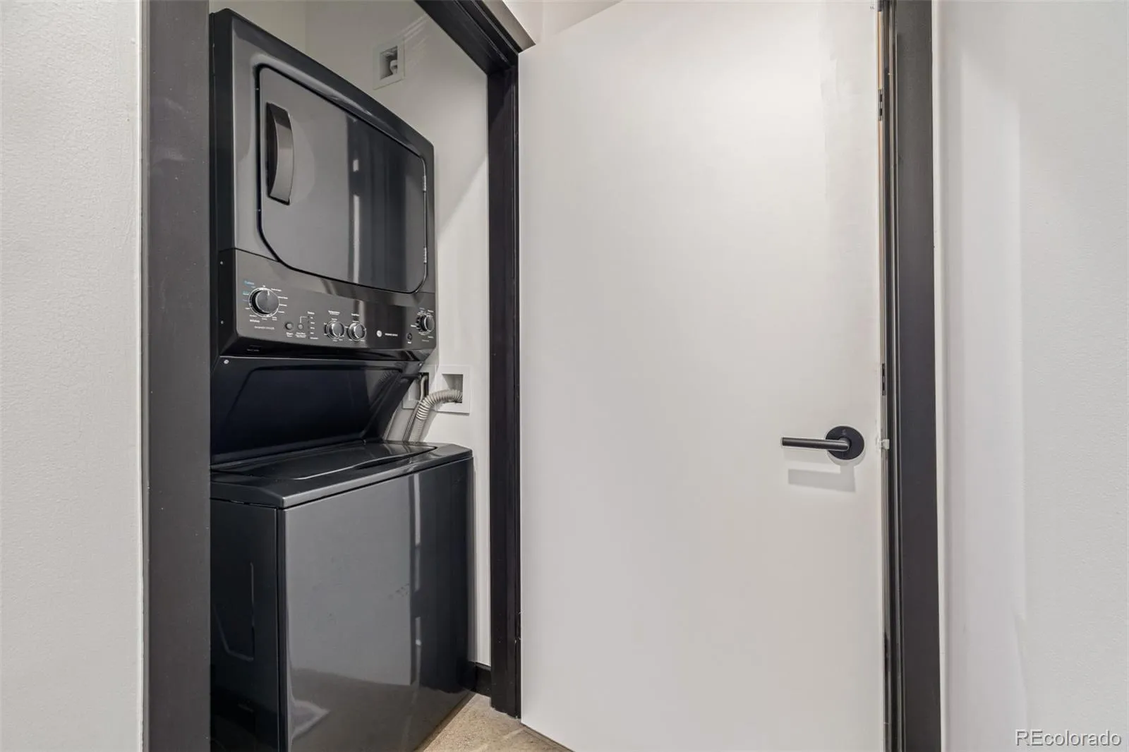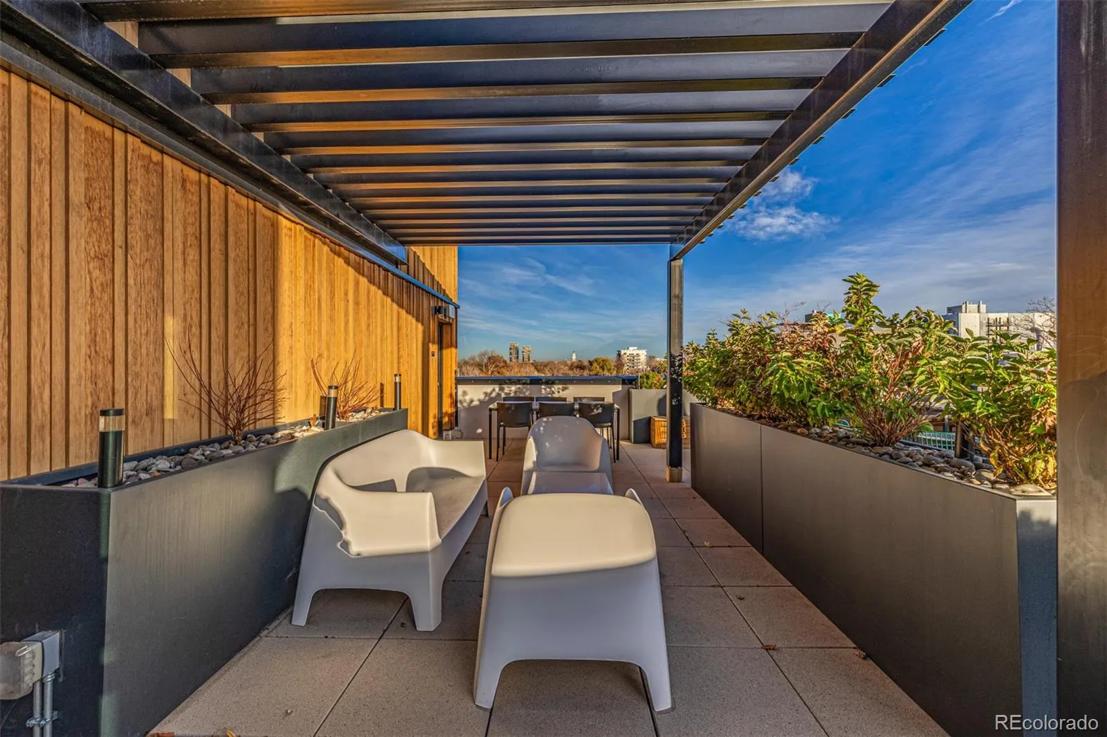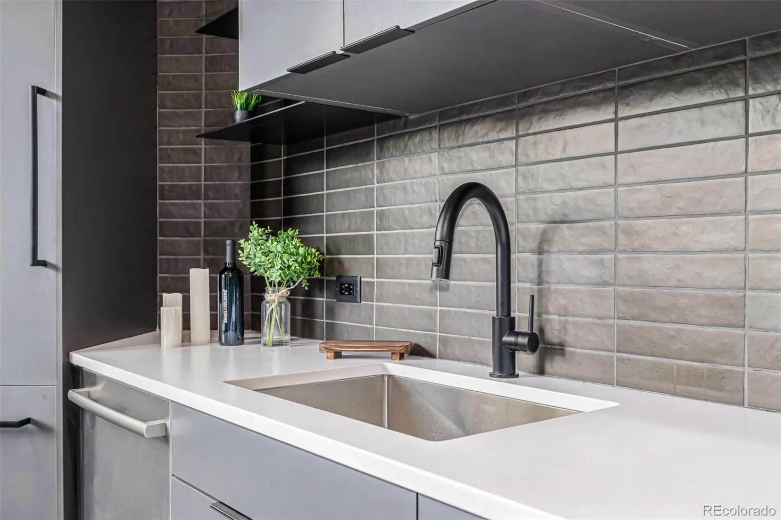 Discover refined urban living in this impeccably designed ground-level residence, where contemporary style meets unmatched city convenience. Nestled in the heart of Denver with an exceptional walk score, this modern retreat offers an open, airy layout enhanced by soaring ceilings, polished concrete floors, and a sophisticated, minimalist aesthetic. The kitchen is a true focal point—crafted with quartz countertops, flat-panel cabinetry, recessed lighting, and integrated stainless steel appliances, including a Bosch range and concealed refrigerator. A striking black tile backsplash adds depth and contrast while maintaining a sleek architectural feel. Expansive windows illuminate the home with natural light, complemented by custom dual-roller shades that let you tailor brightness and privacy to your liking. The bedroom provides a peaceful sanctuary, completed with a walk-in closet. The full bathroom continues the modern theme, featuring a floating vanity, glass-enclosed tub/shower, and ample room for daily comfort. Additional conveniences include in-unit laundry, a sizable linen/storage closet, and a well-designed entry nook ideal for coats, shoes, and everyday essentials. Two mini-split systems offer year-round climate control, ensuring comfort in every season. Beyond the unit, The Arbory delivers elevated amenities such as secure package delivery, a fully automated parking system with your own deeded space (#34), and a stunning rooftop lounge—perfect for gatherings set against breathtaking skyline views. All of this places you minutes from Downtown, City and Cheesman Parks, RiNo, Coors Field, plus countless restaurants, cafés, and shops along 17th Avenue. Don’t miss this opportunity to claim a polished, modern haven in one of Denver’s most vibrant urban settings.