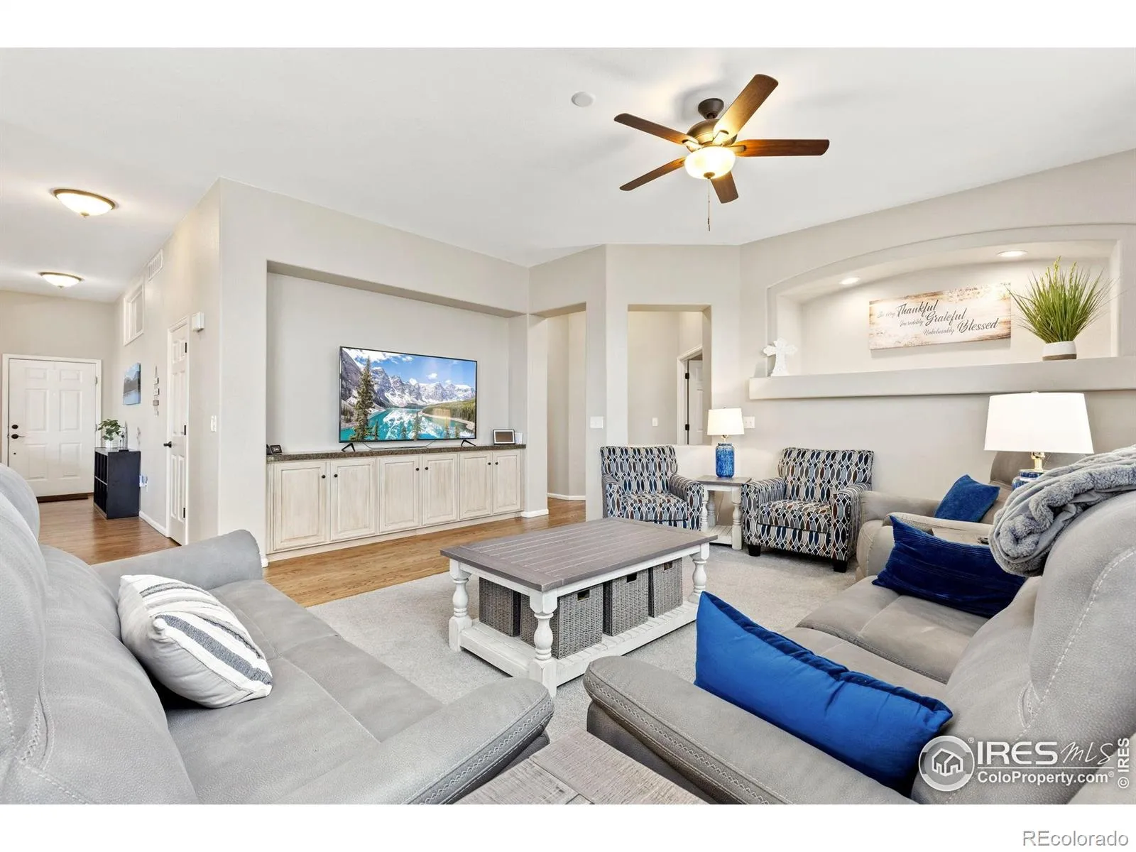 Welcome to this beautifully updated and lovingly maintained 3-bedroom, 2-bath ranch in the highly sought-after St. Vrain Ranch neighborhood. Ideally situated on a quiet corner cul-de-sac and backing directly to Patterson Park, this home offers a rare combination of privacy, convenience, and authentic Colorado living. Step inside to an inviting open floor plan filled with natural light from windows that frame the surrounding greenery. Fresh finishes, warm hardwood flooring, and thoughtful upgrades create a welcoming atmosphere throughout. The kitchen features refreshed cabinetry, modern lighting, upgraded appliances, and an effortless connection to the great room, ideal for everyday comfort and entertaining alike. The primary suite feels like a peaceful retreat with a stylish barn door and calming ambiance. Every space reflects exceptional care, from newer paint and flooring to upgraded fixtures and features designed to elevate daily life. The finished basement extends your living space with an office, a comfortable family room, luxury vinyl flooring, and a dedicated workshop, perfect for hobbies, storage, or creative projects. Outside, the backyard is crafted for both relaxation and durability, offering a newly poured patio, renewed landscaping, and direct gated access to Patterson Park. A recently installed Class 4 roof, upgraded mechanical systems including A/C and water heater, oversized garage, and numerous additional improvements provide comfort and peace of mind. Close to the library, dog park, frisbsee golf course, the Firestone Trail, restaurants, shopping, and easy access to I-25. All information is deemed reliable but not guaranteed. Buyer and Buyer’s Agent to verify all information.