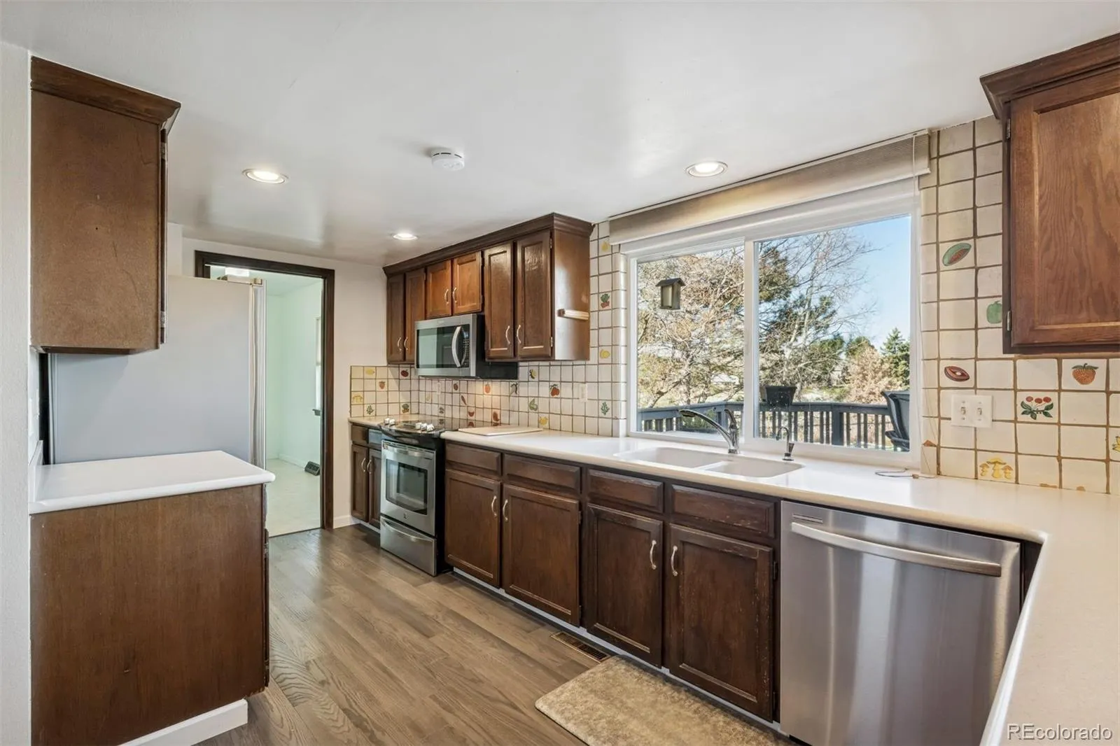 Nestled in the heart of Willow Creek and within the highly acclaimed Cherry Creek 5 School District, this cherished Writer Homes Waterbury model blends timeless design with a setting that embraces nature and community. Positioned on a terraced lot overlooking greenbelts and neighborhood amenities, the home offers a rare combination of privacy, tranquility, and connection to the community and the outdoors. Inside, sunny rooms and a well-designed floor plan include four generous upstairs bedrooms and a finished walkout basement with a spacious family/rec room, additional bedroom, and bath—ideal for guests, multi-generational living, or a private retreat. This home is the best of both worlds; it is ready for its next chapter and is a clean slate for your design choices, and it has been lovingly maintained over the years and has recent updates like prefinished hardwood floors in entry hall, kitchen, breakfast nook and half bath, a newer back fence, back yard retaining wall, washer/dryer. Outdoor living opportunities everywhere! Enjoy the welcoming front porch, dine on the expansive deck with open-space views, or unwind on the shaded, covered patio overlooking a beautifully landscaped, tree-filled yard. A private backyard gate provides direct access to sport courts, a playground, and neighborhood trails that lead straight to the pool for easy summer fun. Willow Creek residents enjoy parks, playgrounds, sport courts, a swimming pool, and miles of scenic greenbelt trails. The neighborhood’s vibrant calendar includes garden and home tours, food trucks, movie nights, and seasonal celebrations, fostering a remarkable sense of community. All of this is just minutes from Park Meadows’ premier shopping and dining, with convenient access to the Denver Tech Center, light rail, I-25, and C-470. Offered for the first time in 45 years, this is a home with heart—lovingly cared for, ready for your vision. Inspection report and Seller’s Property Disclosure are available.