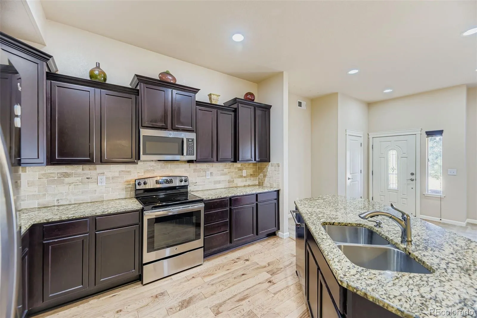 SELLER INCENTIVE: 12 MONTHS OF PRE-PAID HOA DUES! Move-in ready 3-bed, 2.5-bath townhome in the desirable Aspen Brook Townhomes community—just 0.5 miles from Downtown Parker and all the shopping, dining, and charm of Mainstreet! Enjoy beautiful west-facing mountain views from both your private patio and primary suite that overlook the community park and green space. Built in 2014, this well-maintained home features: Open-concept main level with bright living and dining areas, Modern kitchen with granite countertops, breakfast bar seating, stainless steel appliances and a large pantry. Abundant storage throughout. Upstairs includes a Loft with built-in cabinetry–perfect for a home office, media room, or fitness area, A Spacious primary suite with gas fireplace, walk-in closet and luxurious 5-piece bath, Two additional bedrooms plus a full hall bath and linen closet. ADDITIONAL HIGHLIGHTS include: Attached 2-car garage with interior access and additional driveway parking, “Lock-and-leave” convenience with HOA covering WATER, SEWER, trash, snow removal, and exterior maintenance. Prime location – 0.4 mi to Discovery Park, and 0.6 mi to Fika Coffee House; 1.5 mi to Challenger Regional Park for trails and recreation. Easy access to Parker Road, E-470, and nearby shops, dining, and library. 3D walkthrough and video tour available!
