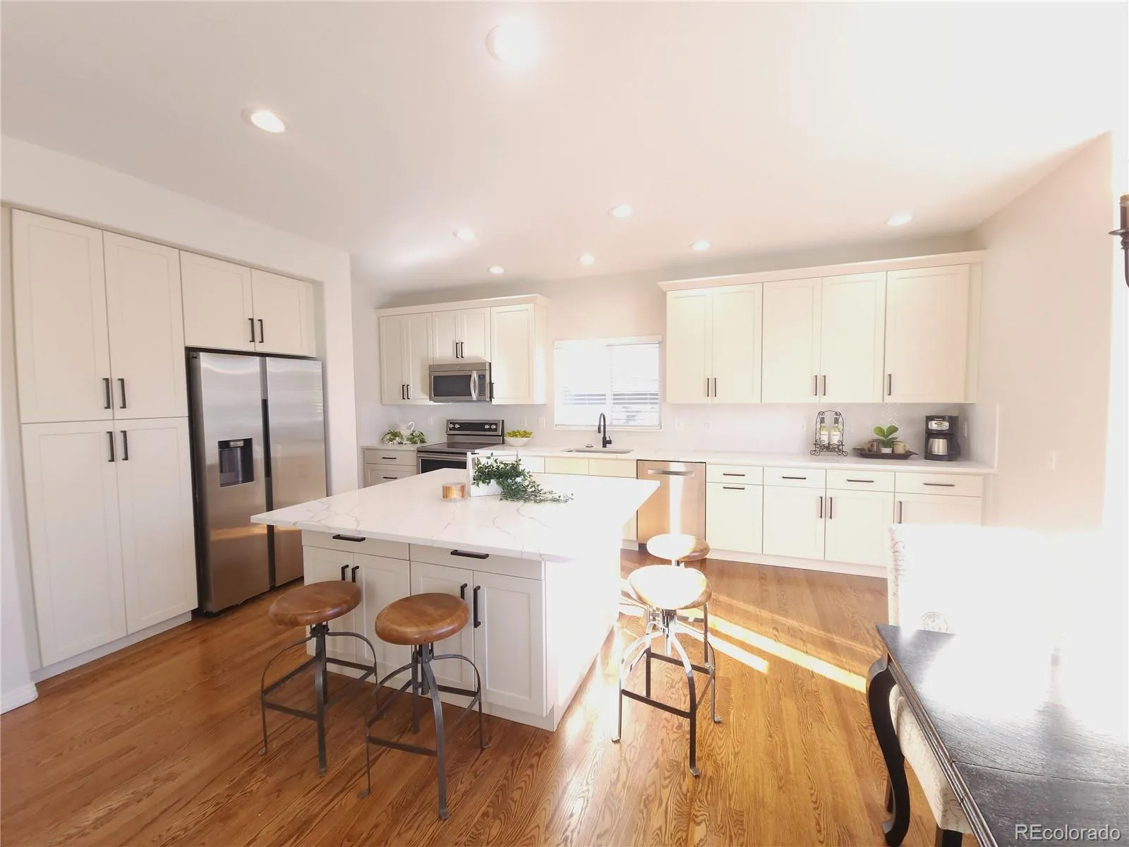 ABSOLUTELY STUNNING, FULLY REMODELED HOME IN HIGHLY SOUGHT-AFTER HIGHLANDS RANCH. This beautifully updated residence showcases a BRAND-NEW KITCHEN AND BATHS featuring cream shaker cabinetry with soft-close doors and drawers, GORGEOUS QUARTZ COUNTERTOPS WITH GREY VEINING, and an ELEGANT HERRINGBONE TILE BACKSPLASH. The chef’s kitchen includes STAINLESS STEEL APPLIANCES, A LARGE ISLAND THAT COMFORTABLY SEATS SIX, and additional seating in the sunny eat-in area, perfect for everyday living and entertaining.