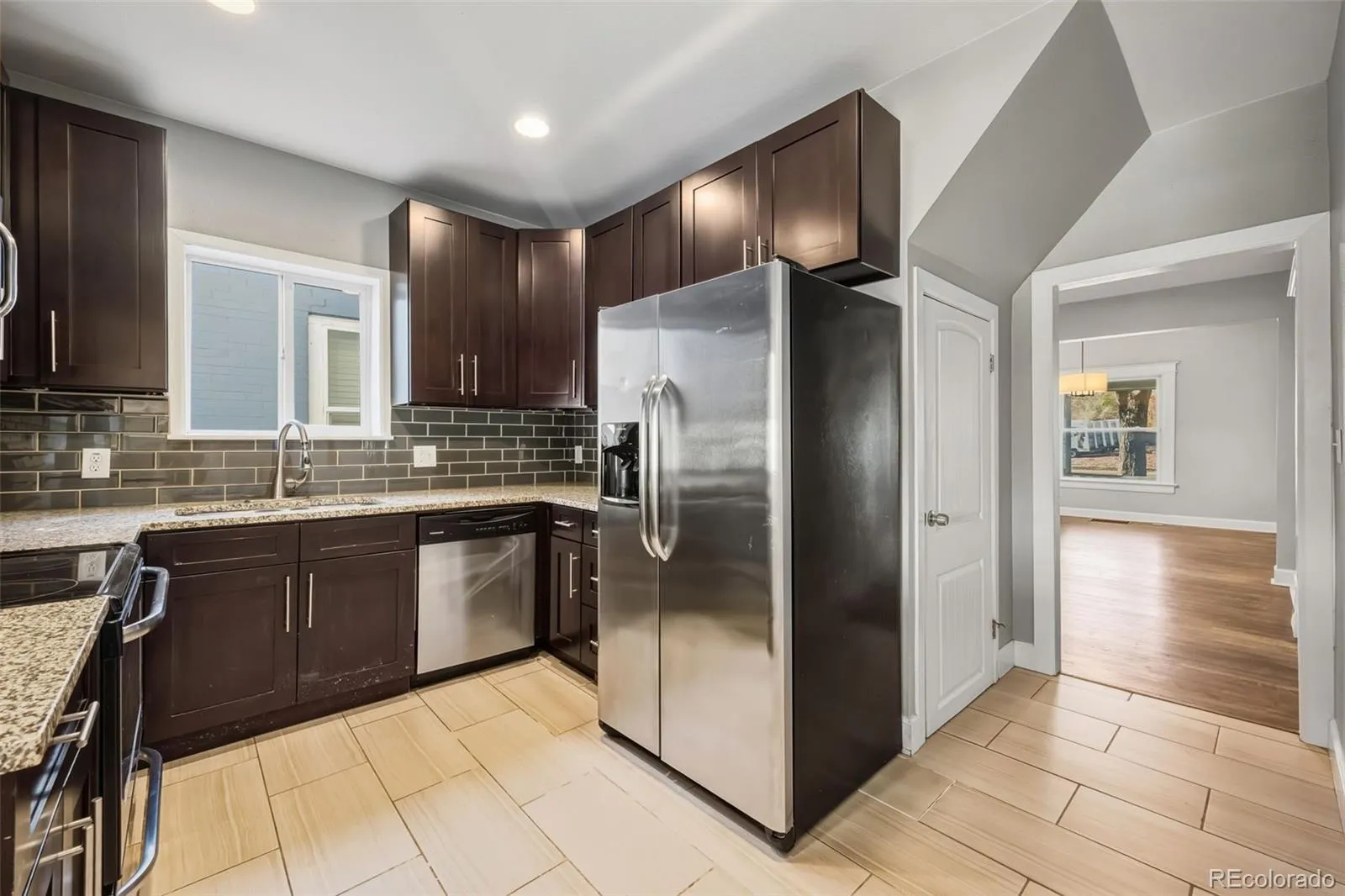 Welcome to this updated and inviting home just one block from Jefferson Park. The main level features hardwood floors, a bright dining room with built-ins, and two bedrooms, each with walk-in closets, alongside a full bath. The kitchen offers slab granite counters, dark cabinetry, stainless appliances, and a walk-in pantry. The finished attic adds a private suite with a skylit bedroom, walk-in closet, updated full bath with double sinks, and a cozy loft area. The basement provides a versatile bonus space plus a laundry room. A detached one-car garage, and carport space complete the property.