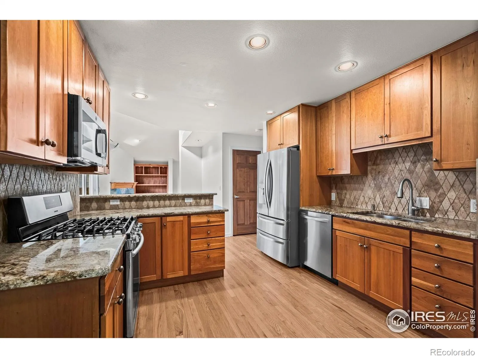 Light-filled and inviting, this Kings Ridge home combines comfort, style, and a convenient Boulder location. Updates include a NEW roof, freshly painted throughout, and new carpet in the basement. Flooded with natural light, the 4-bed, 3-bath layout features vaulted ceilings and an open, connected flow throughout the main level. The gourmet kitchen opens seamlessly into the spacious Great Room with a cozy fireplace that opens to the back patio. Main-floor office/den is ideal for working from home or enjoying quiet evenings in or non-conforming 4th bed. Upstairs, you’ll find three bedrooms, including a generous primary suite with a serene, 5-piece bath and an expansive walk-in closet. The finished lower level offers even more versatility with space for guests, a second office, fitness, or play. Set on a quiet, tree-lined street steps from Valmont Park, miles of trails, and Boulder’s beloved open space. Minutes to Boulder Reservoir trails or downtown Boulder, this home offers the best of convenience and classic Colorado living. Move-in ready – a true Boulder gem not to be missed.