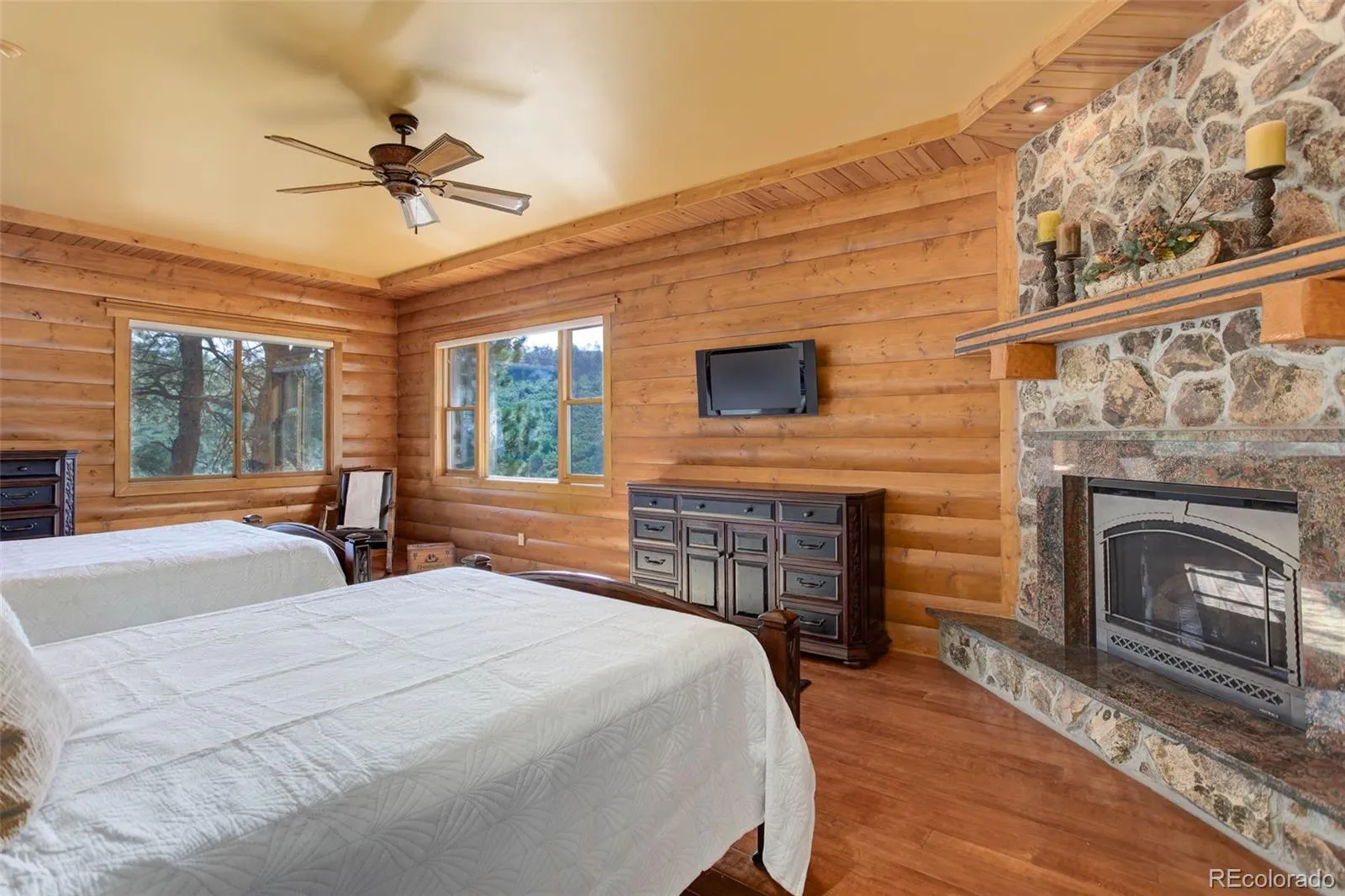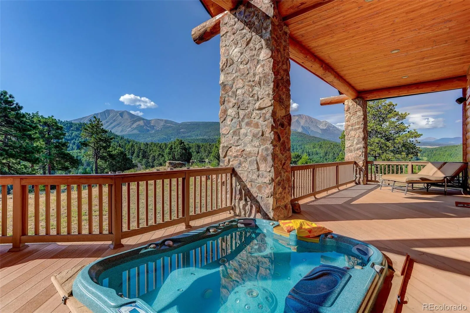 Whiskey Springs Ranch … This Magnificent 8,000+ sqft Log and Stone Mountain Retreat has no restrictions or covenants and is located in Southern Colorado near La Veta and Cuchara. An unspoiled High Alpine area with views of the Spanish Peaks and Sangre de Cristo Mountain Range. Built by One of Arizona’s Premiere Custom Home Builders, he put his heart and soul in every detail of this Treasure as his own Retreat and Lodge. Walk through the Stone Entry into the Great Room which is flanked with Massive Timber Vigas, Vaulted Ceilings, and Stone Floors. The lodge features Stone Accents throughout and includes 5 stone propane Fireplaces with the most magnificent Fireplace in the Great Room. A Wet Bar adjoins the Great Room with a wall of windows with no homes in sight. You may catch a glimpse of Elk, Wild Turkey, Deer, or an occasional Black Bear surrounded by approximately 4000 acres of private ranch land protected by a conservation easement. The Main Lodge consists of 3 Bedrooms, 4 Baths with a Library, Office, Wine Cellar, and Theatre. The Guest House has 2 Bedrooms, 3 Baths ,a kitchen and a living room with a stone Fireplace as well as a 6 car garage including an RV Bay. The Main Lodge has an Oversized 3 Car Attached Garage with plenty of storage just off the laundry room. This Incredible property is designed for Family gatherings and entertaining with a Chef’s kitchen equipped with a Wolf 6 burner stove, Dual ovens, subzero Refrigerator, two Granite Islands with Bar stool seating area that opens to the Dining Area with yet another Stone Fireplace and sliding Glass doors that lead to Covered Trex Decks with a built in Grill for Outside cooking and fun. The Primary Bedroom has large Stone Fireplace and Bath with Two Separate Granite Countertops, Raised Soaking Tub with yet another Fireplace, Walk-in Shower with Custom Tile and Huge Walk-in Closet. Outside the Primary Bedroom is a sunken hot tub under the covered deck. This Ranch is a Retreat like none other.