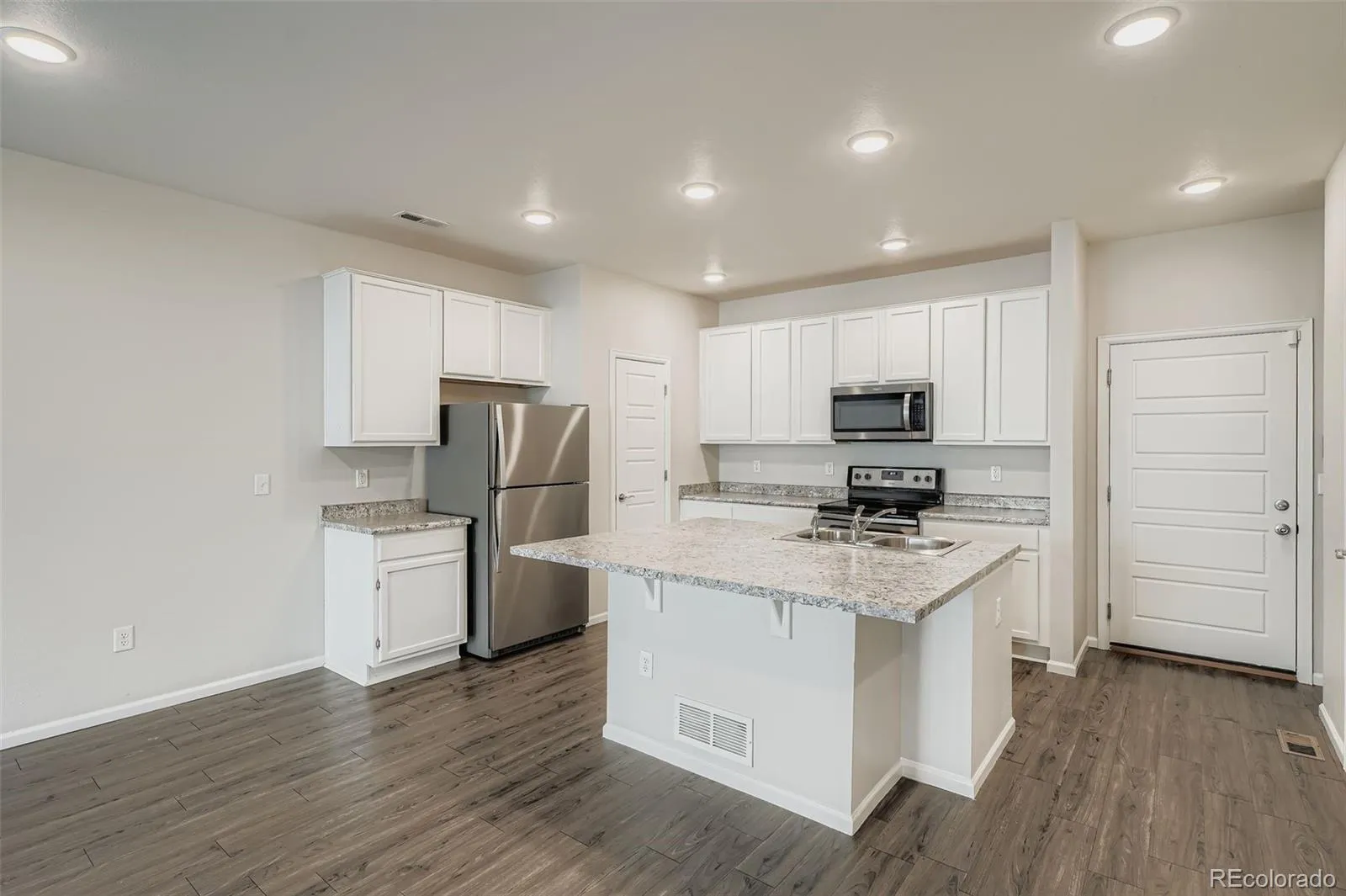 Amazing 4-Bedroom Townhome in the Green Valley Ranch Community!** Check out this beautiful 2-story townhome in the popular Oak Crest. The main floor has an open layout, perfect for hanging out or hosting guests. It features a stunning accent wall, a bright living room with lots of natural light, a dining area, and a modern kitchen with a big island, black stainless steel appliances, and a handy half bath. Upstairs, the primary bedroom is spacious with a large 4-piece bathroom, a glass shower, and a walk-in closet. There are two more bedrooms and a full bathroom. The laundry room comes with a washer and dryer. This property offers a full basement with a fourth bedroom and a full bathroom. Outside, there’s a covered front porch where you can relax and enjoy the quiet area. Plus, the 2-car attached garage adds extra convenience. This property can be purchased individually or as part of a six-property rental portfolio.