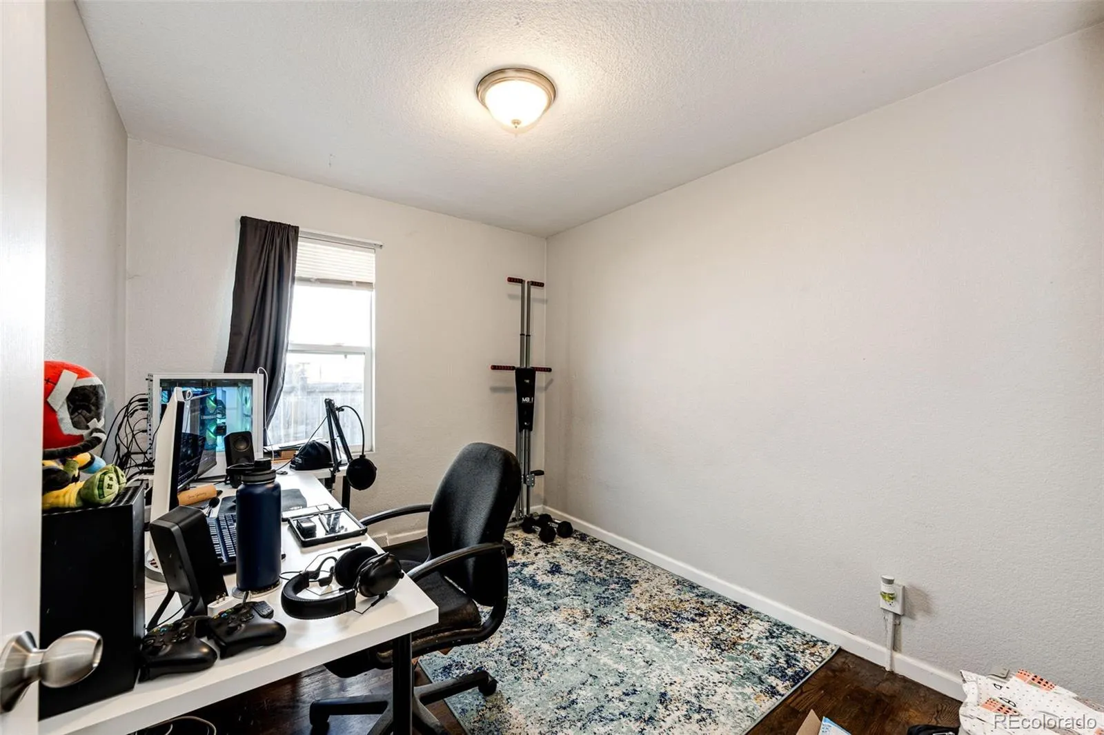 The flexible layout allows you to enjoy two true bedrooms or use one as a spacious home office. Both rooms offer comfortable dimensions and generous closet space. Upon entering through the front door, you’re welcomed into an inviting living area that flows seamlessly into the hallway, with a bedroom on each side and the kitchen straight ahead.