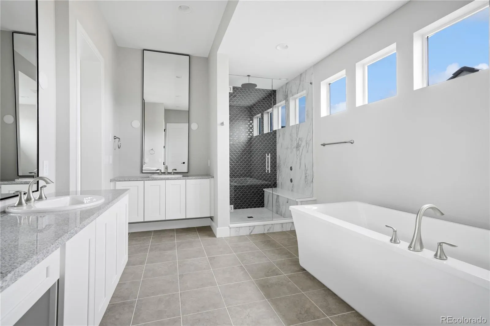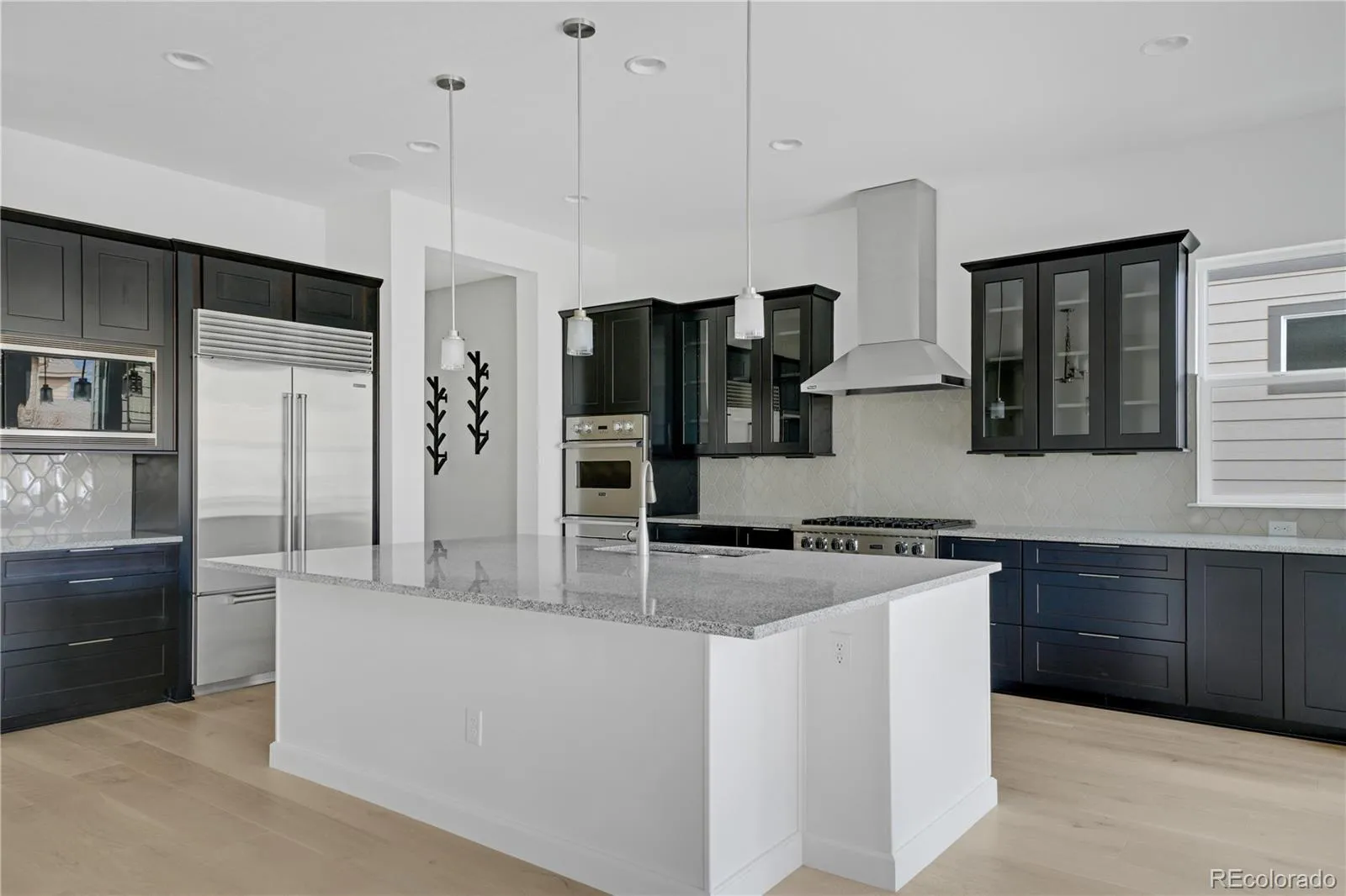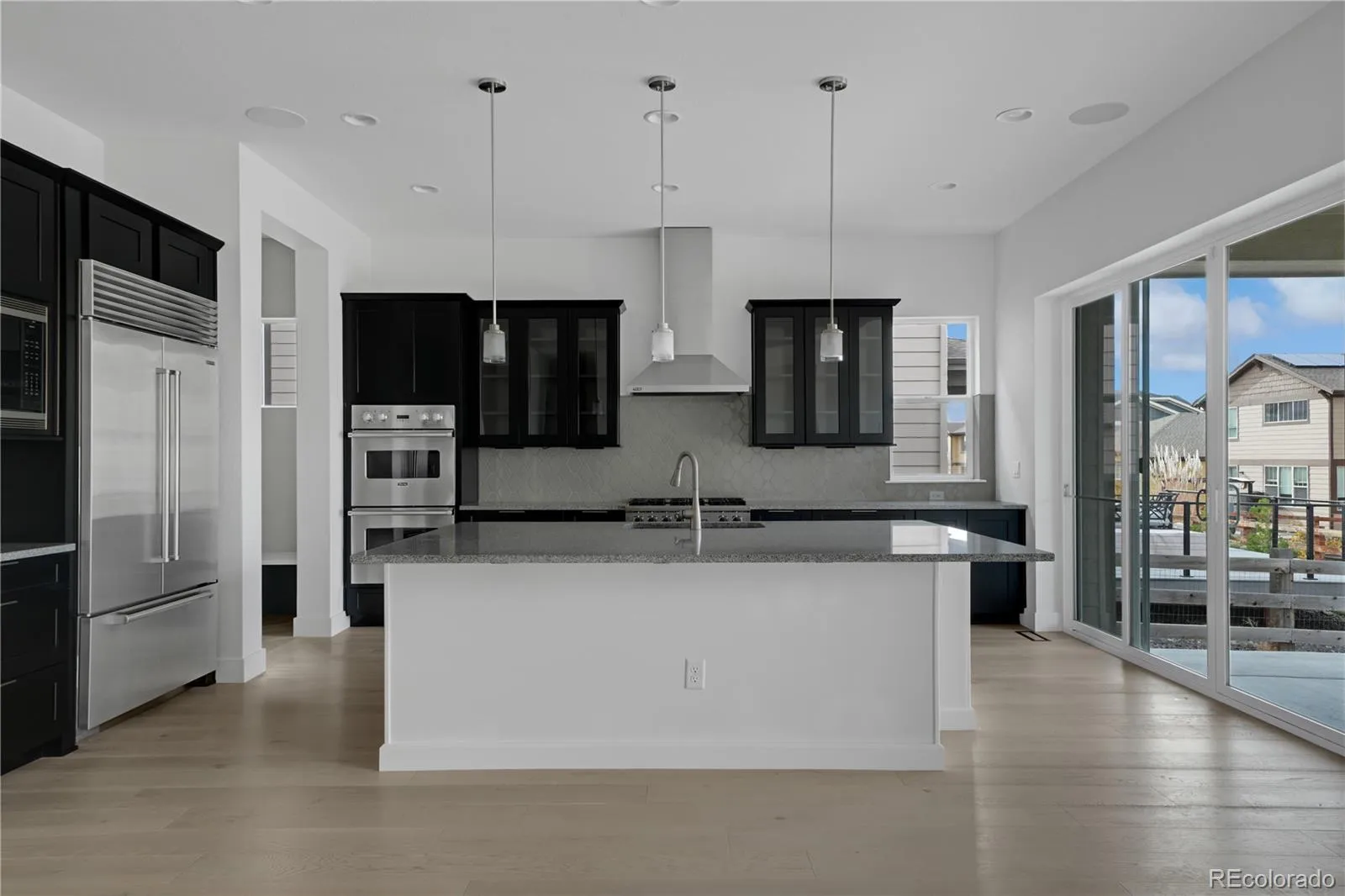 Discover an epic luxury residence in Leyden Rock! An exceptional 4-bed, 4-bath masterpiece built by Epic Homes, but later upgraded with designer finishes and thoughtful details which elevate every corner of this beautifully curated home. Step inside and feel the drama of soaring great room ceilings, gas fireplace, sun-filled spaces, and modernized wood floors that flow effortlessly throughout the main level. The gourmet kitchen is the heart of the home – an entertainer’s dream with an oversized granite island with plenty of seating, Sub-Zero built-in refrigerator, Viking double oven & 6 burner cooktop, an appliance lift & a separate eat-in space. A seamless blend of style and function. The main level offers unmatched convenience with a luxurious primary suite featuring floating vanities, exquisite 3 variation tile shower, a stand alone soaker tub & a spacious walk-in closet connected directly to the laundry room. A secondary main-floor junior suite provides privacy for guests, children or multigenerational living. Work from home in the dedicated office with quartz surfaces & a plethora of built-in cabinetry. Enjoy the practical comfort of a stylish half bath & generous mudroom. Slide open the expansive glass door to the covered outdoor living space, complete with mounted TV – ideal for game days. The beautifully designed backyard features a custom tile patio, hot tub, a gas stub-in for a future fire pit, & generous yard including an adjacent green space to the north for added privacy. The fully finished basement continues the story of luxury living with a stunning wet bar, Viking beverage fridge, extensive media room with large screen TV, surround sound, pool table & two additional bedrooms with egress windows separated by a custom 3/4 bathroom. Even the garages are elevated – a finished 2-car attached garage plus a separate 1-car garage perfect for a vehicle, workshop, gear, or home gym. If you love elevated finishes rather than builder grade, this home is for you!