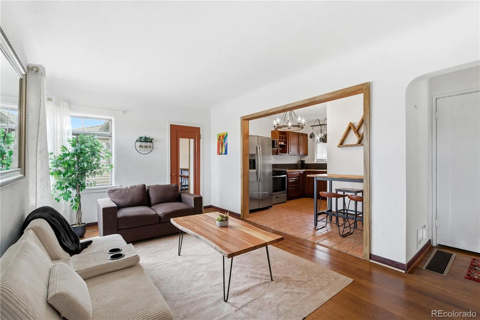 This charming home is located on a quiet street in the desirable Chafee Park neighborhood, just minutes from I-70 and close to downtown, LoHi, and the Highlands, with world-class dining and entertainment nearby. It features numerous updates, including a newer roof, gutters, sewer line, privacy fence, an updated kitchen and bath, and newly refinished solid oak floors. This is a great starter home with a fenced yard, a pergola-covered patio, and a detached garage with ample parking. Get into the neighborhood with this move-in-ready home.