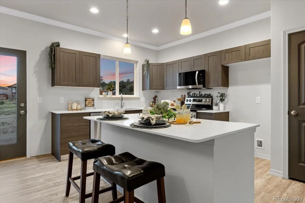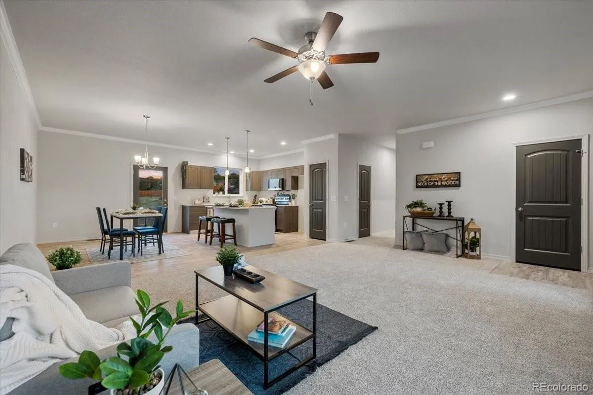 Welcome to this beautiful 3-bedroom, 2-bath ranch-style home in desirable Calhan! Situated on a full acre of land, this 1,680 sq ft fully electric home offers comfort, style, and efficiency. Inside, you’ll find 9-foot ceilings and a spacious open-concept kitchen and dining combo—perfect for gatherings and everyday living. The kitchen features granite countertops, a large island, GE appliances, and ample storage. Throughout the home, luxury vinyl flooring and plush carpet provide the perfect blend of durability and comfort. The elegant 5-piece master bath includes a soaking tub and walk-in shower for a spa-like retreat. A 3-car garage offers plenty of room for vehicles and hobbies, while the stucco exterior adds timeless curb appeal. Experience peaceful Calhan living with stunning views and modern finishes in a home built to last.