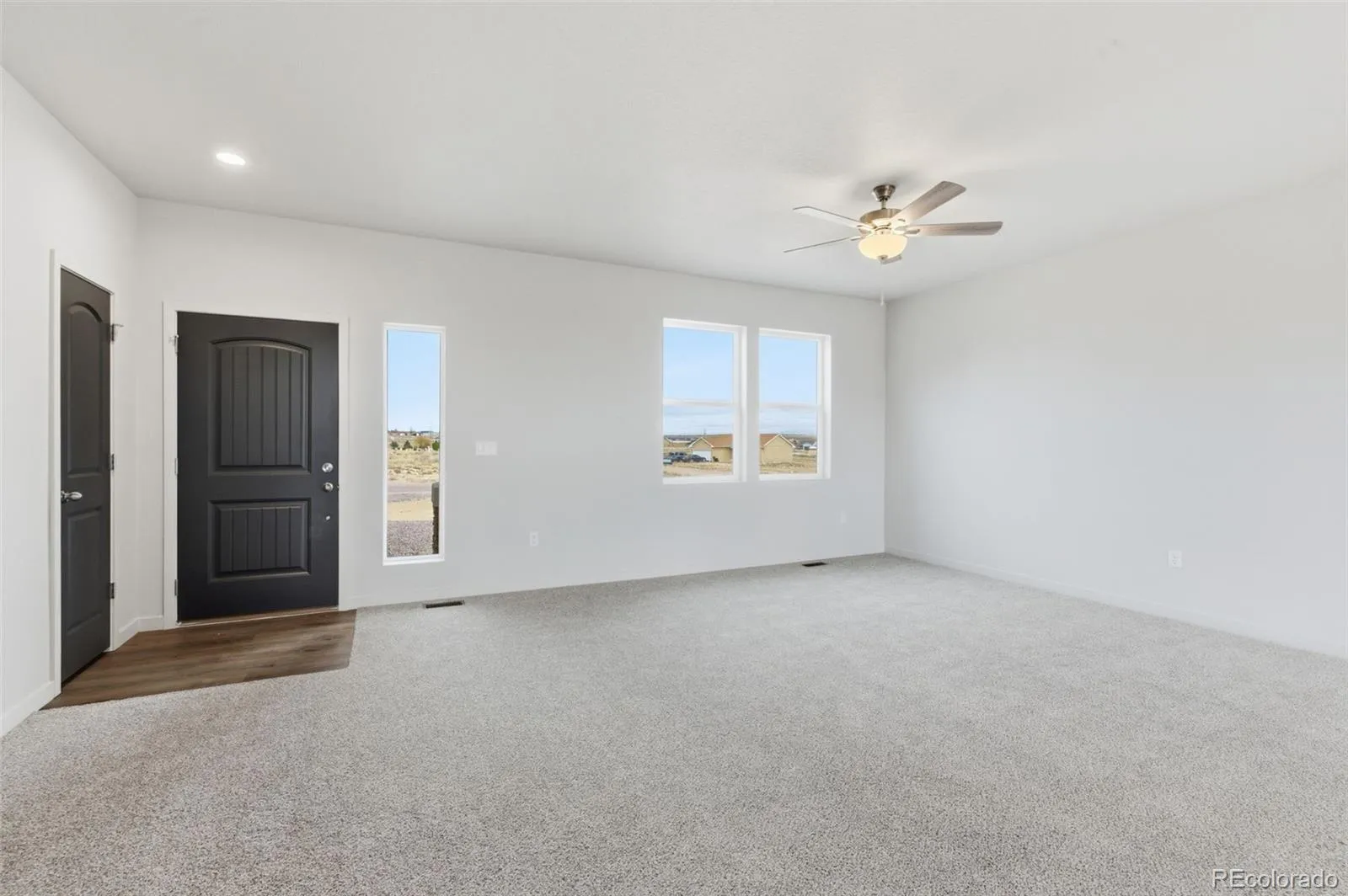 Welcome to this beautiful 3-bedroom, 2-bath ranch-style home in desirable Calhan! Situated on 35 acres of land, this 1,680 sq ft fully electric home offers comfort, style, and efficiency. Inside, you’ll find 9-foot ceilings and a spacious open-concept kitchen and dining combo—perfect for gatherings and everyday living. The kitchen features granite countertops, a large island, GE appliances, and ample storage. Throughout the home, luxury vinyl flooring and plush carpet provide the perfect blend of durability and comfort. The elegant 5-piece master bath includes a soaking tub and walk-in shower for a spa-like retreat. A 3-car garage offers plenty of room for vehicles and hobbies, while the stucco exterior adds timeless curb appeal. Experience peaceful Calhan living with stunning views and modern finishes in a home built to last.