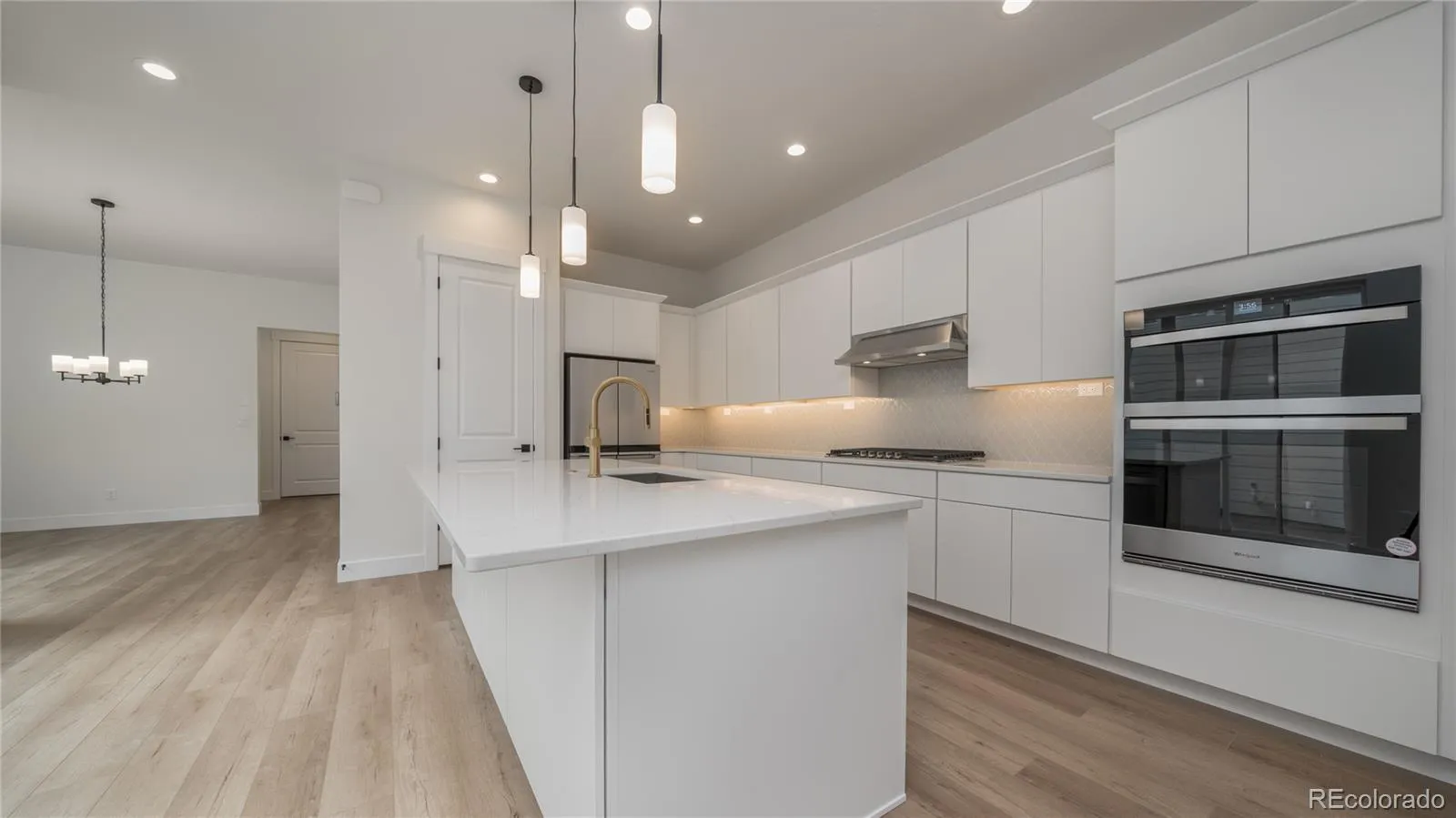 With an idyllic blend of comfort and elegance, this move-in ready home perfectly fits your lifestyle. Embrace relaxation in the sun-filled great room that is bursting with natural light and is adjacent to the kitchen. Flex space on the first floor could be used as an office or a yoga room—the possibilities are endless. This main level living home is perfect for bringing the outdoors inside with the 12-foot multi-slide door that opens to an oversized patio. Modern white cabinets with a complementing backsplash make a statement in the kitchen. Rough-in plumbing has already been installed for a future finished basement with 9′ ceilings.