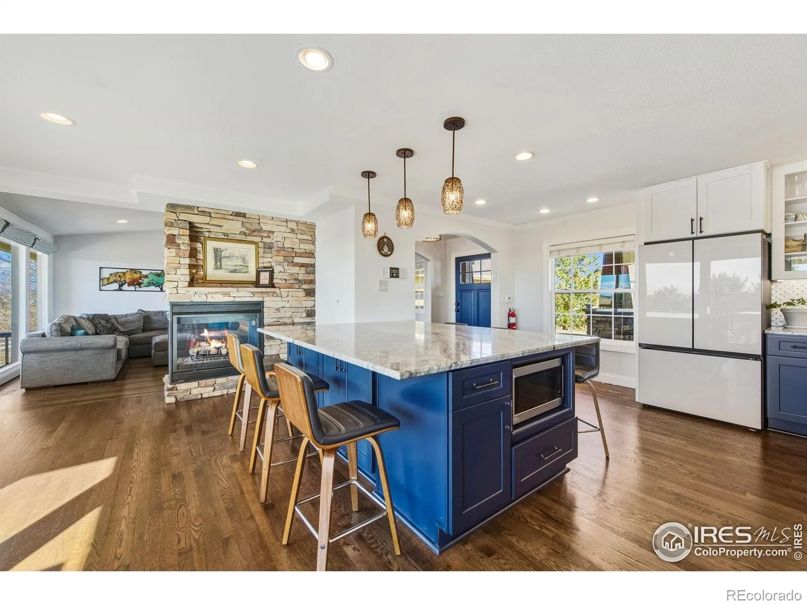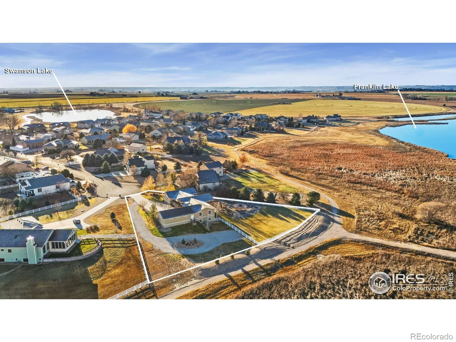 Experience wide-open Colorado living in this beautifully updated ranch home in Baldridge! Perched on over an acre and backing to private open space, this home delivers MAJESTIC views of the mountains and Lake Franklin, offering the kind of peaceful, picture-perfect backdrop that feels straight out of a postcard. Inside, the home has been refreshed from top to bottom with updates throughout, including refinished hardwood floors, brand-new carpet, fresh paint, and detailed finishing touches that create a smooth, move-in ready experience. Large picture windows stretch across the living area, filling the home with natural light and bringing those scenic outdoor views right into your everyday spaces. The kitchen includes stainless steel appliances, elegant quartzite countertops, and plenty of storage and prep space for effortless cooking. The massive primary suite redefines comfort, featuring a private deck and a luxurious 5-piece ensuite bathroom with a jetted tub, walk-in shower, and a walk-in closet. Three additional bedrooms on the main level offer plenty of flexibility, including one with its own ensuite bathroom as well. The walk-out basement is an entertainment powerhouse that can also be an ideal multi-generational setup. Featuring its own kitchen, a large living area with a pool table, a dedicated theater room, a bonus hobby room, and two more bedrooms, this level opens the door to endless possibilities. Outside, the expansive fenced backyard is a true outdoor paradise! From the raised deck with unobstructed views to the concrete patio with a mini pond, plus an elevated firepit area and full landscaping, every corner invites relaxation. Parking and storage are never a problem with a 3-car attached garage, a massive concrete drive, and a circular driveway. A rare find ready for its next chapter, this home delivers serious bang for your buck with incredible value in every square foot!