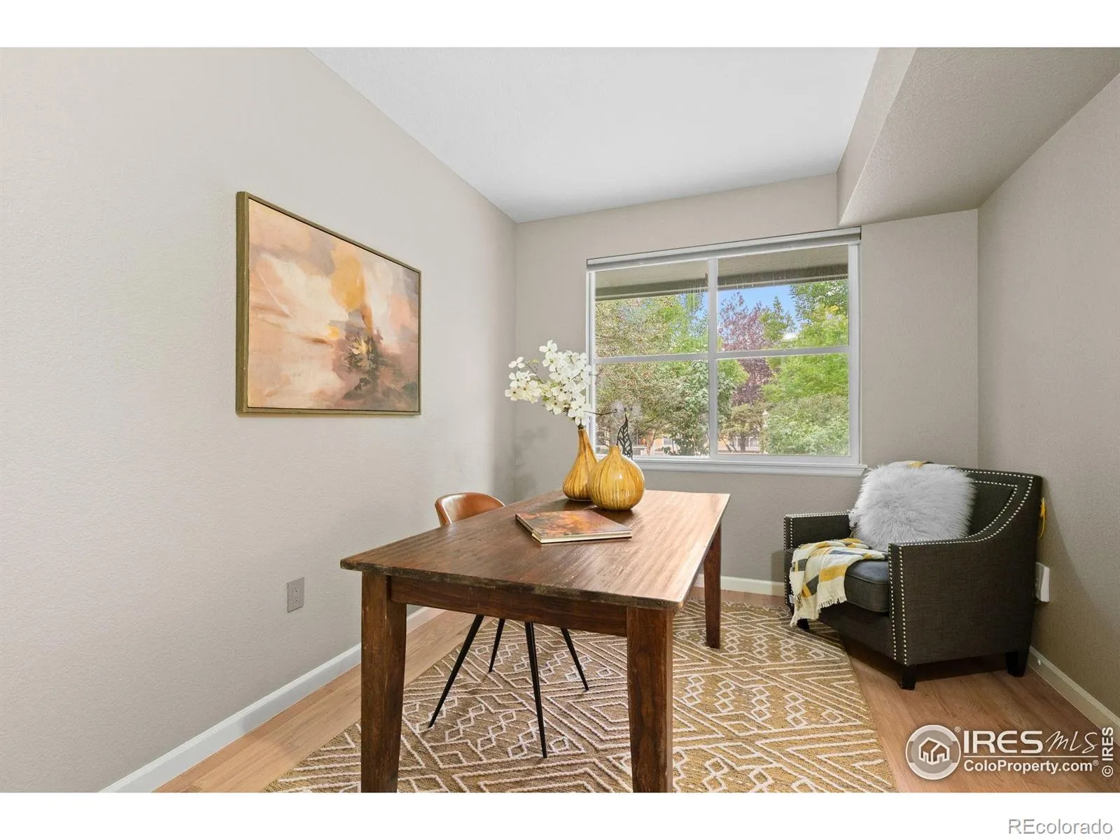 LOCATED IN SOUTHWEST LONGMONT, EASY ACCESS TO BOULDER. Sunny ground-floor corner unit with excellent natural light from 3 of the four walls. Not a stair or a step in this freshly updated 3-bedroom and 2-bath condo. The updates include modern white kitchen cabinets and newly refinished hardwood floors throughout; no “lived-in” carpeting to deal with. Open and easy to entertain between the kitchen, dining, and living areas. The master bedroom is spacious, with ample closet space, and is light and bright with a crawl space in the closet. The master bath features a tub/shower surround and a large vanity with ample storage space. The second bedroom has a large walk-in closet, and with lots of natural light, the third bedroom can also be used as a home office for the work-from-home professional. The main bath also features a tub/shower surround and a spacious vanity. The detached single-car garage is just steps away from the unit and includes shelving for additional storage-located in the highly desired St. Vrain Valley School District. The unit also includes an ample, fenced outdoor space, landscaped with low maintenance in mind, that provides a nice, private place to entertain in warmer months. Close to shopping at Village of the Peaks, Whole Foods Market, and Target. This lovely home is ready to move in and enjoy!