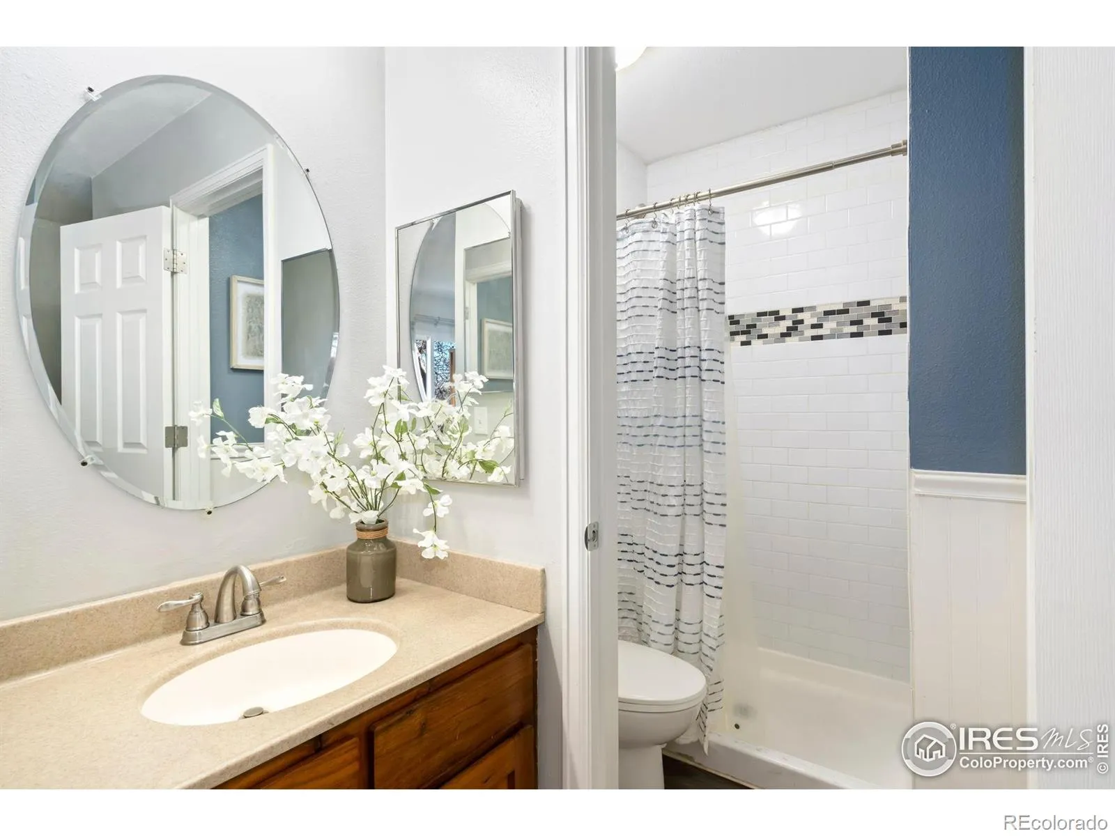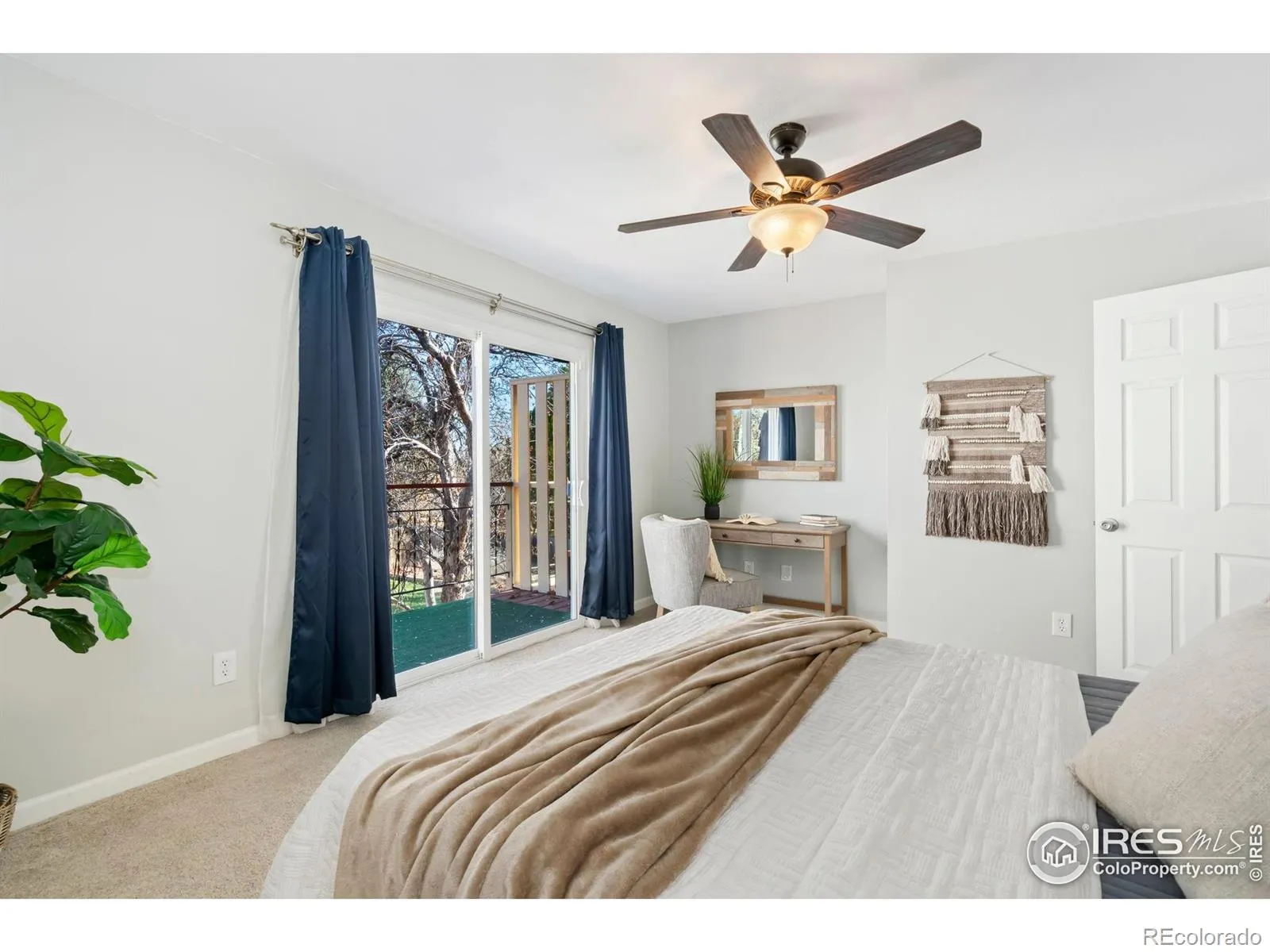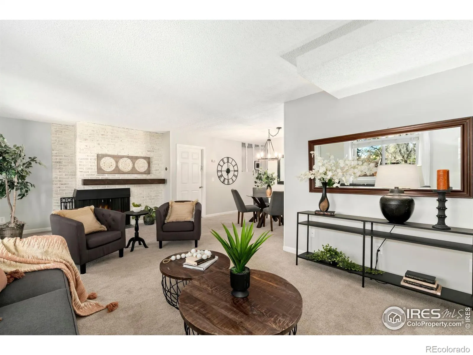 Move-in ready & beautifully maintained, this 3 bed/3 bath townhome offers low-maintenance living in a fantastic location! The main level features an open living & dining area with a wood-burning brick fireplace & loads of natural light. A large sliding door leads to the fully fenced private back deck – perfect for your morning coffee, or an evening glass of wine. The kitchen includes newer stainless steel appliances, a coffee bar/built-in desk, pantry, and a charming view of the greenspace from the kitchen sink window. Upstairs, the large primary suite offers a private east-facing balcony, walk-in closet, and en-suite bath. Two additional bedrooms share a full bath & a convenient hallway linen closet. The full unfinished basement provides excellent storage and untapped equity potential! Recent maintenance includes professionally cleaned carpet, serviced furnace and water heater, plus updated windows, AC, radon mitigation, and smart-home features for added comfort and peace of mind. 3 total parking spaces & close proximity to Benson Sculpture Park, Lake Loveland, biking/walking trails, and nearby golf courses complete this comfortable & easy-living townhome.