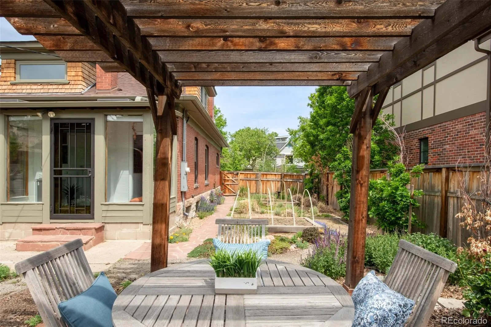 A new opportunity to make this coveted bungalow your own! Beaming with vintage charm and endless potential, this timeless home offers a rare opportunity in Denver’s acclaimed Sloan’s Lake neighborhood. Enjoy easy access to adjacent West Highlands acclaimed dining, cafes and shops, while Sloan’s Lake Park, with its grassy parkland, miles of trails and both city and mountain views, is just a short, 3 block walk. Set on a lushly landscaped, oversized lot, this charming 1910 brick and stone residence showcases classic architectural details, including a generous front porch, leaded glass windows, gleaming wood trim and floors, and exceptionally decorative metal radiators. Fresh interiors highlight expansive living spaces, including a bright living room with wide windows, exposed brick fireplace with working gas logs and new tile hearth, and original wood pocket doors opening to a gracious formal dining room with chic lighting. The warm wood kitchen with classic cabinetry and granite counters leads directly to the delightful sunroom, perfect for all your pots and plants. The main floor primary ensuite offers convenience and accessibility, while the second story features an all new, stylish bathroom, two cheery bedrooms with luxurious new carpet and a sunny loft that would host an excellent home office. Outside, a cozy pergola for al fresco dining, numerous garden beds, and a brick arch with wrought iron gate lend the garden old world charm, and the detached garage with overhead storage offers added appeal. Newer water heater, roof and gutters, and 2nd floor Marvin windows elevate and enhance the stand out vintage features.