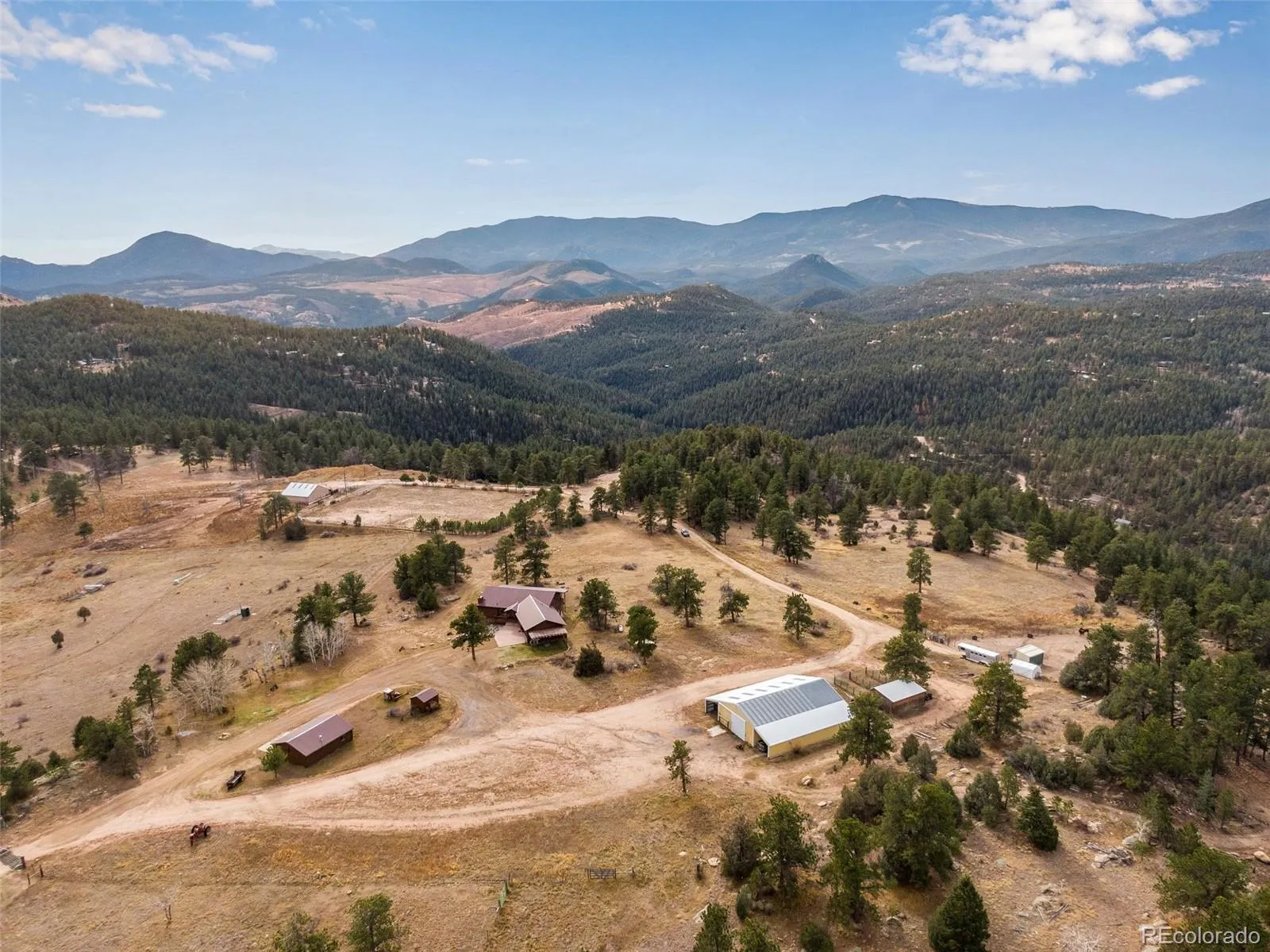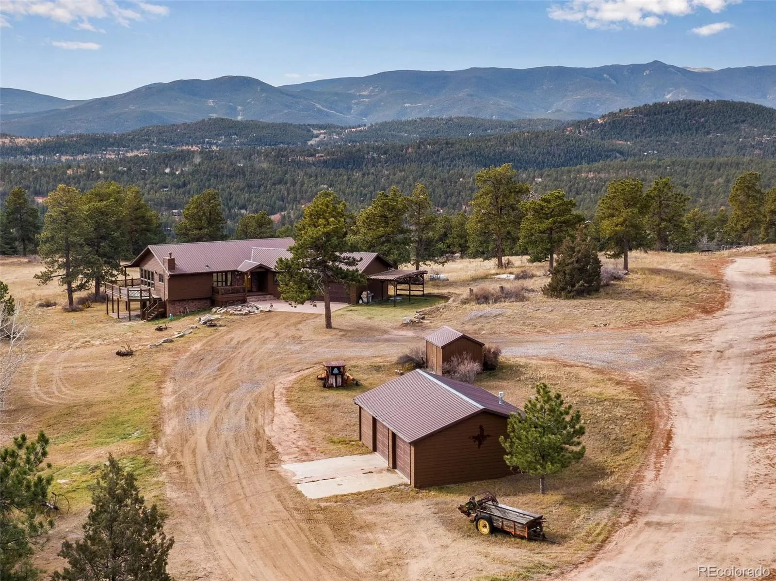 A beautiful true Rocky Mountain Ranch awaits your dreams to live and work on a gorgeous piece of mountain land. You will be living in the Colorado mountains, surrounded with majestic views, yet so close to the city. This property is made of two parcels, 17922 is 8.85 acres, 42525 is 38.61 acres, for a total of 47.46 acres, per recent 2025 survey. This property is set up for equestrian, possible working cattle ranch, hunting right outside your door, building a second home/accessory dwelling unit (ADU) or just pure relaxation. The 3,323 SqFt walkout ranch home sits perfectly surrounded by 7 different outbuildings and a professional sized arena, lights and electricity to most, including the arena. All of this and just 1.4 miles off Highway 285 and only 45-minutes from Denver. The Seller has made several expensive upgrades, which you can read about within the captions on each picture and/or the room descriptions. Just to name a few done in 2025, allowing you to spend your money elsewhere: $17K survey, $40K+ septic system & leach field, interior & exterior paint and stain, quartz countertops, SS appliances, luxury vinyl flooring, tile floor in the “sunroom”, all hardwoods refinished, kitchen sink, garbage disposal, kitchen RO system, faucets and hardware in most areas, toilets, lighting in many areas, all tile grout professionally cleaned, boiler HVAC system, pellet stove & fireplace cleaned and inspected, over 2000’ of fencing, new garage doors in detached heated garage, new access door in the attached heated garage, deck stairs and front porch flagstone stairs have been replaced. Both wells (Well permit #40416-A is on parcel 17922 for house use only. Well permit #319169 is on parcel 42525 for live stock watering.) are new within the last five years. This home is ready for your own personal touches! Don’t forget to watch the video which really represents this magnificent property. Now come and see it, make it yours for the Holidays and have your dreams come true.