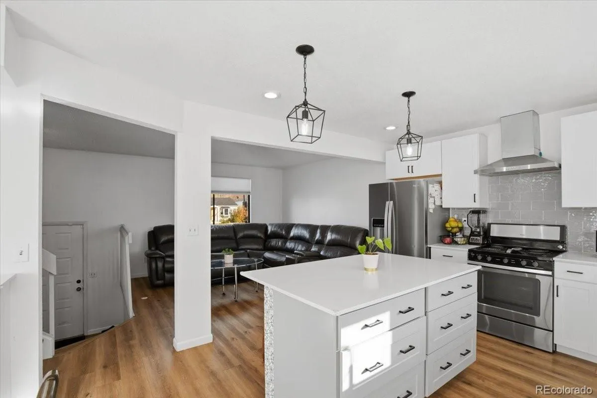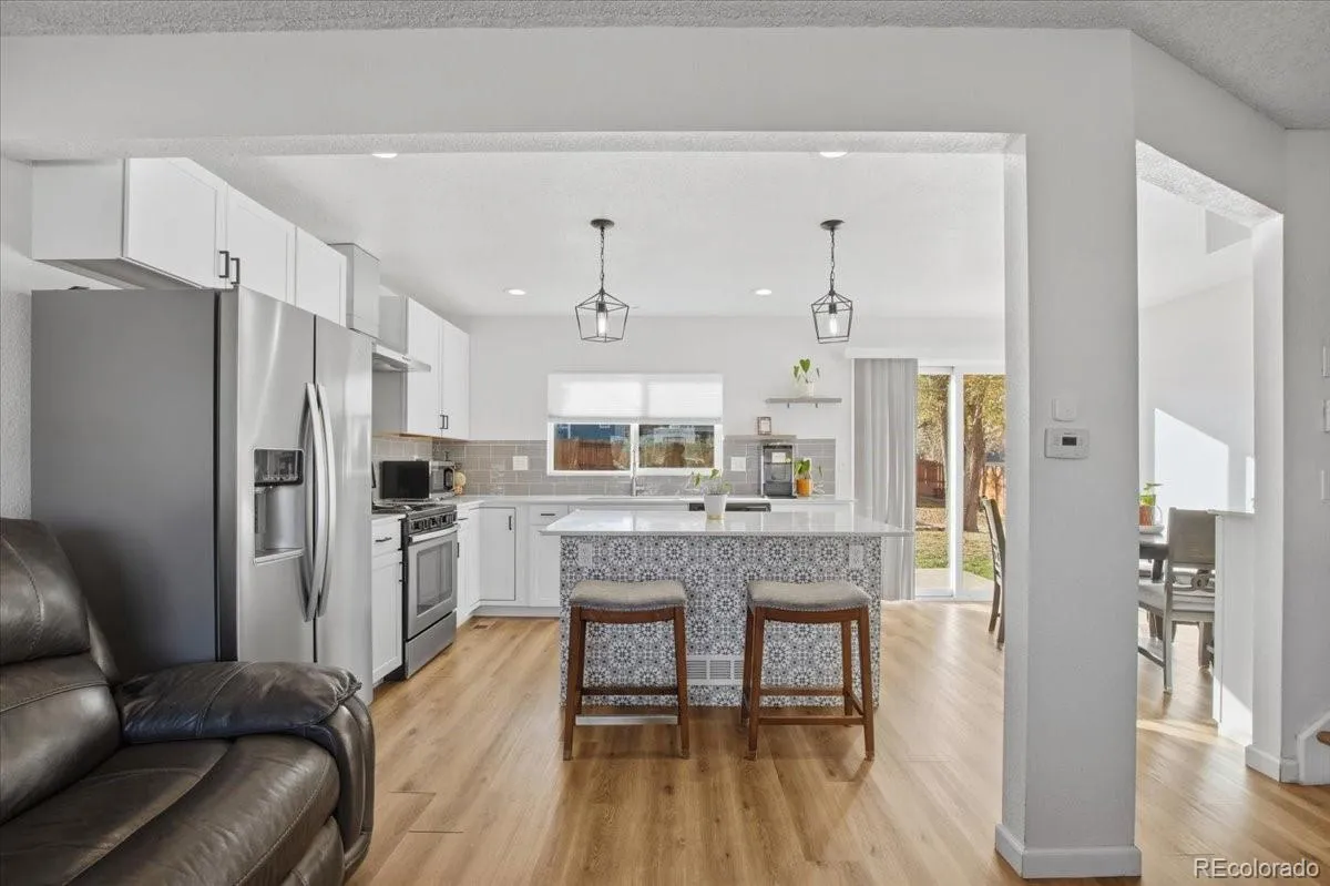 Updated Barnum West home (no HOA), close to everything that Denver has to offer! Easy to live in open floor plan bathed in natural light with updated quartz counters and large kitchen island, spacious dining and living room, updated appliances, updated electric panel, luxury LVP flooring throughout. Spacious backyard with irrigation system waiting for your personal touch! Fully fenced with room for fenced in RV parking as well! Upstairs you will find two updated bathrooms one being a very lovely en-suite primary bath. You will also find two spacious bedrooms upstairs and another conforming bedroom in the lower level along with a laundry room that includes the washer and dryer! Oversized 1.5 car tandem garage gives plenty of space for parking and storage.