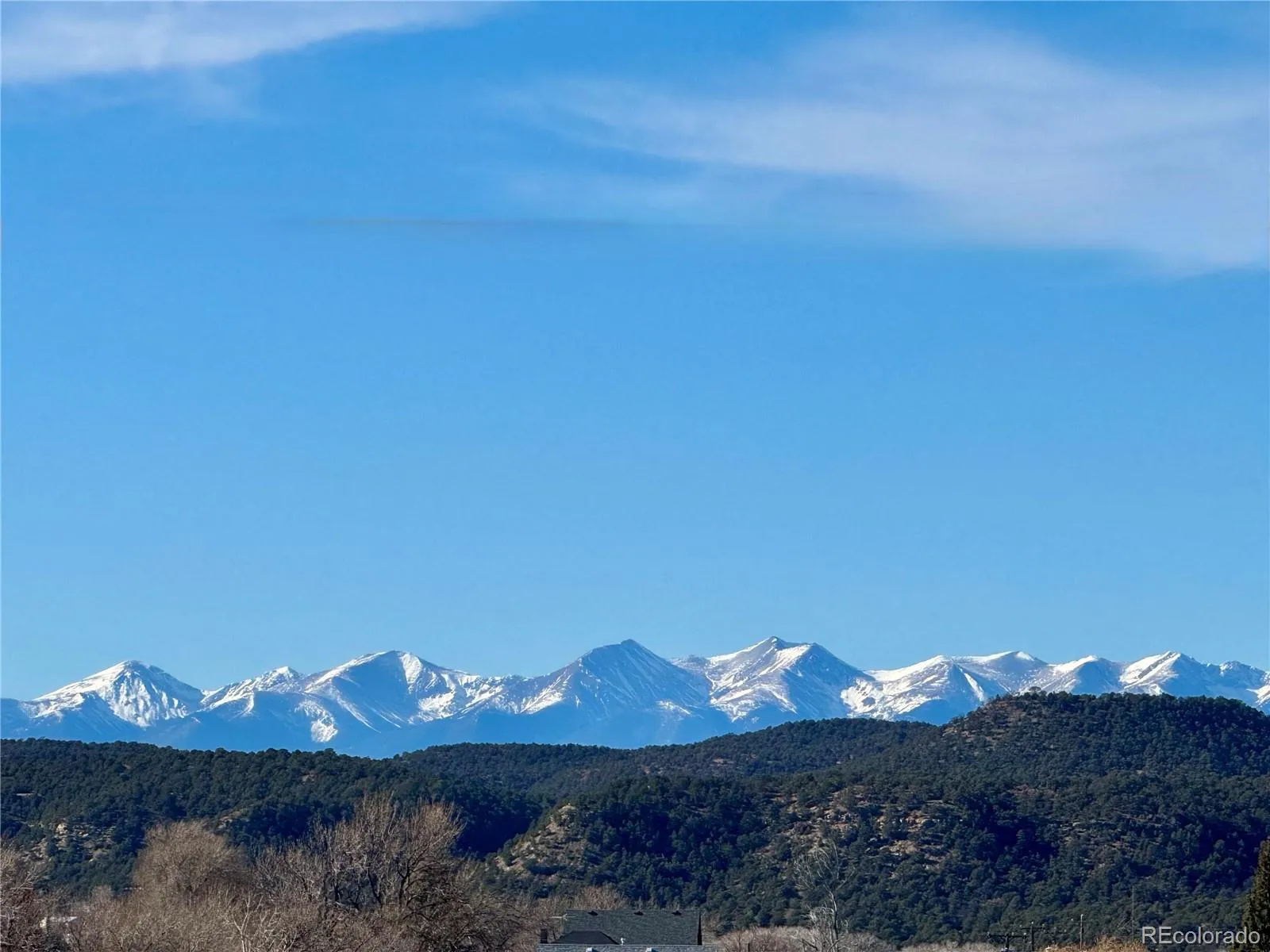 From the covered front porch, enter through a beveled glass door into the inviting living room, where large side windows fill the space with natural light. Warm wood floors flow throughout the main level and into both bedrooms, each offering its own picturesque outlook—whether toward the Sangre de Cristo mountain range or Stinson’s Rest.