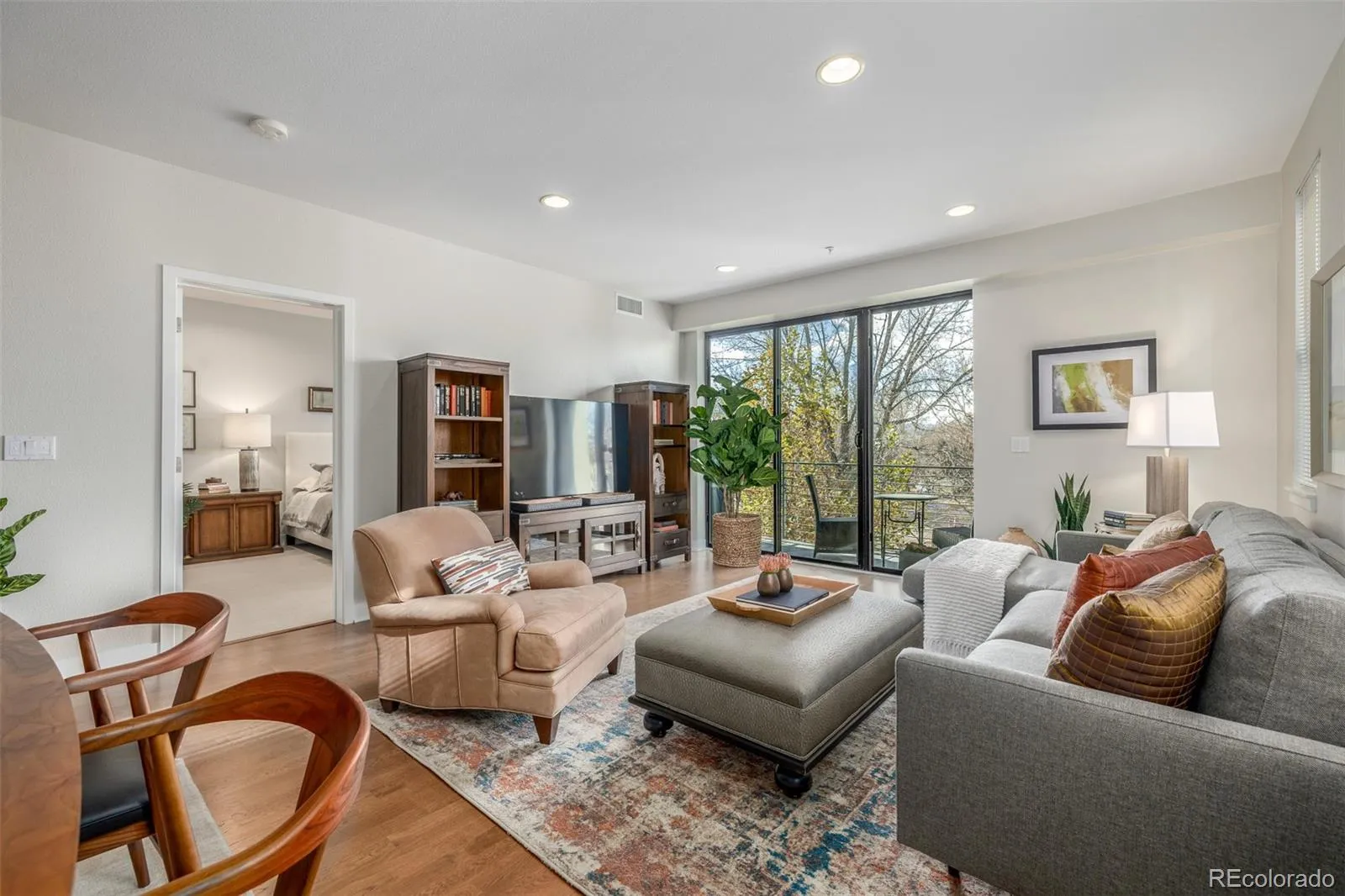 Sweet Wash Park Condo in rarely available building! Just 1.5 blocks from the park, this gorgeous, light flooded, lock-and leave, two bed, two bath condo in one of Wash Park’s newer buildings is your ideal city retreat. Perfect corner unit with a fantastic open and airy floor plan and plenty of room for a large dining table and comfortable furnishings. Delightful and highly functional kitchen with counter seating, quartz countertops, stainless appliances, and beautiful upgraded glass tile backsplash. Many a delectable meal will be created and enjoyed here! Relax and sleep peacefully in the remarkably spacious Primary Bedroom Suite with a fabulous customized walk-in closet. The second roomy Bedroom with its own walk-in closet and full Bath could fulfill many functions. This highly desirable home also has many additional attributes that are often hard to find in one place. A gracious entry foyer, large laundry room, two large coat/storage closets, covered balcony with a gas line for the grill, two parking spaces, and two storage units, zero steps! Incredible location a stone’s throw from beloved Washington Park, and mere minutes to the shops and restaurants on Old South Gaylord, Alameda and Downing, and Cherry Creek! Fantastic walls for art. Beautiful new paint and carpet. What are you waiting for!