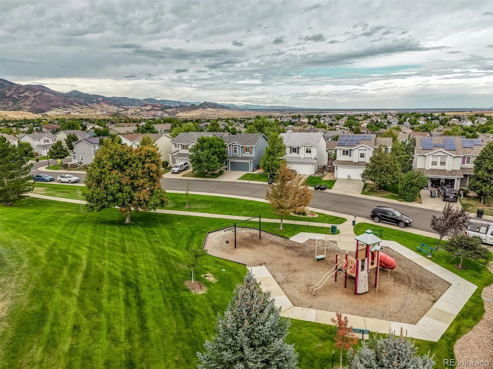 Set across from Marmot Ridge Park in the sought-after Roxborough Village community, this single-family residence combines charm, comfort, and convenience in one of Colorado’s most picturesque settings. From the moment of arrival, the home welcomes with its thoughtful curb appeal and inviting front porch, a perfect spot to enjoy morning coffee while taking in mountain ridgeline views. Inside, a fresh and well-maintained space unfolds across a semi-open floor plan that balances privacy with natural connection between rooms. A cozy gas fireplace anchors the living area, infusing warmth and character while encouraging relaxation at the end of the day. Tall ceilings and abundant natural light enhance the airy atmosphere, while details like wood-look flooring and recessed lighting bring a polished touch. All three bedrooms are located on the same level, creating an ideal arrangement for restful nights and easy daily living. The primary suite offers comfort and function with its walk-in closet and en-suite bath, while the additional bedrooms provide flexibility for family, guests, or work-from-home space. The kitchen features generous prep space, ample cabinetry, and stainless steel appliances, supporting both everyday meals and special gatherings. Just beyond, the backyard extends the living space outdoors with a full-length deck, private fencing, and grassy area ideal for barbecues, play, or quiet evenings under the Colorado sky. The location is equally compelling: directly across the street from green space and parkland, with trails, playgrounds, and mountain scenery at the doorstep. Local schools, shopping, and commuter routes are nearby, creating a lifestyle that feels both connected and restful. This is more than a home—it is a chance to experience Roxborough Village living with the perfect blend of comfort, community, and Colorado beauty.