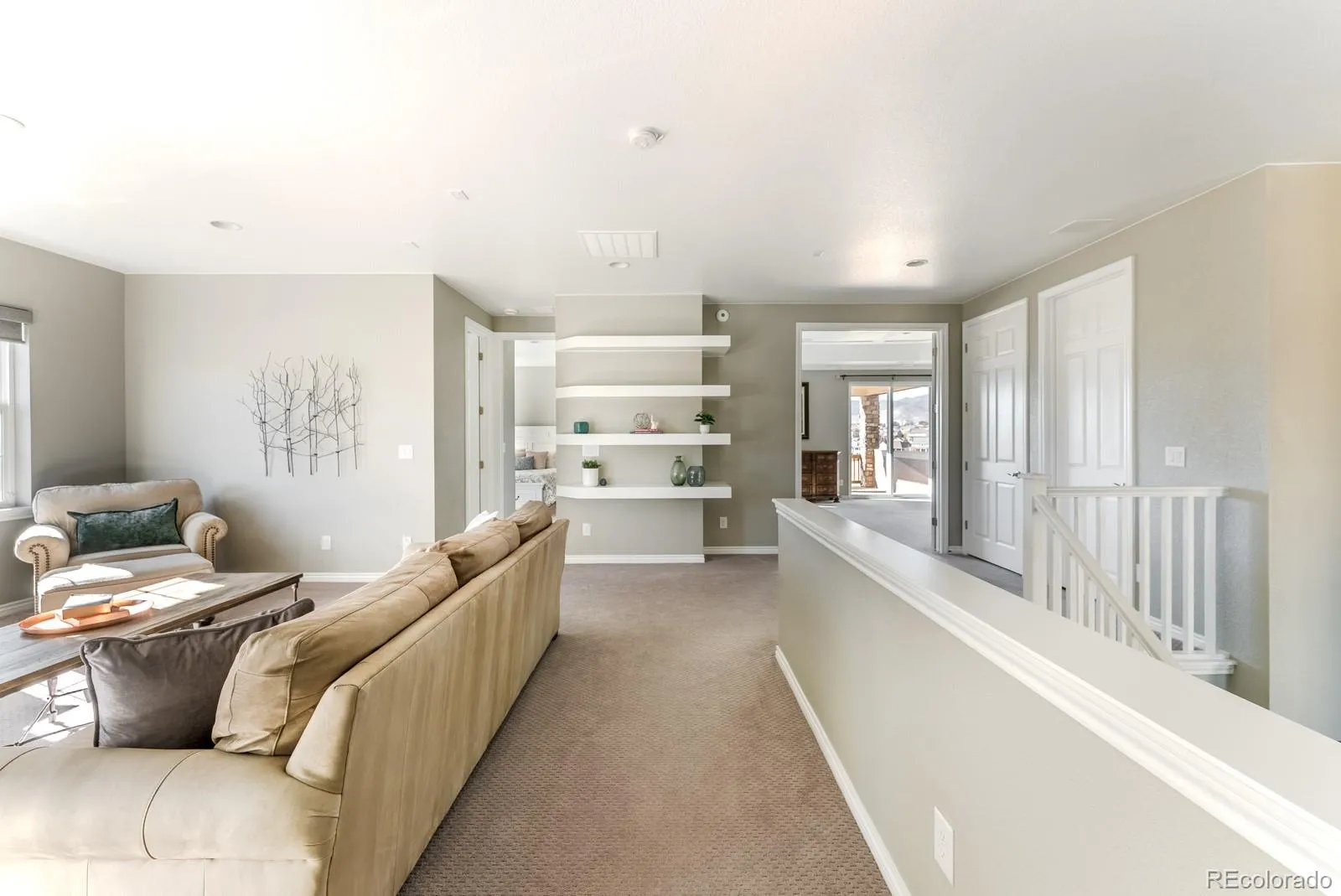 Poised at the high point of the neighborhood with sweeping views of city lights and mountain horizons, this 7 bedroom, 7 bath showpiece is a study in timeless design and elevated living. Encompassing more than 6,100 square feet and backing to open space and meandering trails, the home marries architectural grace with the serenity of its landscape—an inspired retreat within a resort-style community celebrated for its pool, clubhouse and top-ranked schools. Through a soaring two-story foyer awash in light, rich trim and extensive wood floors set an immediate tone of the craftsmanship throughout. The formal dining room, framed in decorative wallpaper, tailored wainscoting and a coffered ceiling, becomes a stage for celebration—equally suited to candlelit dinners or festive gatherings. The chef’s kitchen is designed for culinary artistry, featuring white cabinetry, a full-height designer backsplash and professional-grade appliances including built-in refrigeration, double ovens, gas cooktop, pot filler and wine chiller. Granite countertops and a generous island invite connection, flowing seamlessly into the great room where a refined fireplace and modern built-ins set a tone of effortless style. Sliding glass doors reveal a covered terrace that stretches the width of the home, where a custom stone fireplace invites evenings under the stars. The primary suite feels like a private retreat in the sky. A fireplace and balcony frame cinematic views of twinkling lights and mountain horizons, while the indulgent bath features dual vanities, a soaking tub, a glass-and-stone shower and towel warmer. An airy loft centers the upper level, accompanied by three additional bedroom suites with private baths extending the home’s effortless sense of comfort and continuity. The walk-out lower level reimagines leisure with a full bar, open lounge, covered patio, two bedrooms, fitness space and bath. An epoxied, extra-deep three-car garage complete this home of rare scale and refinement.
