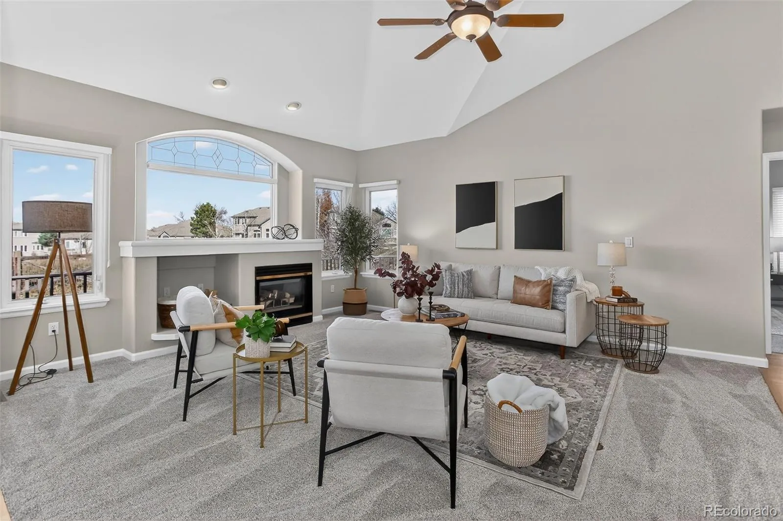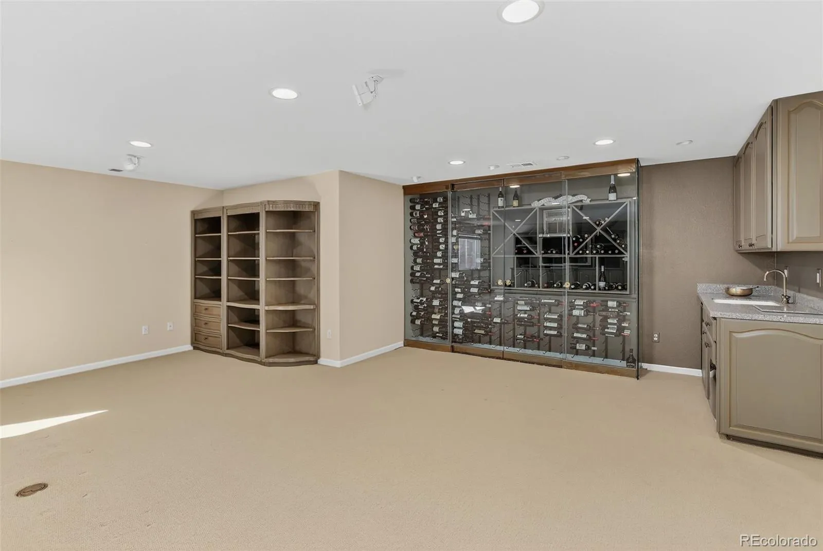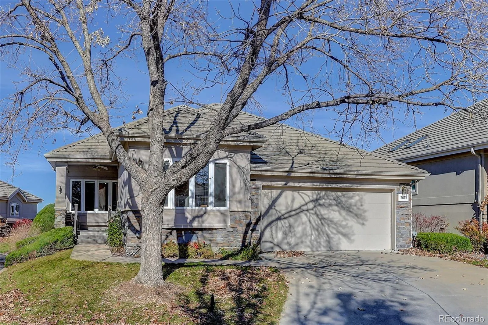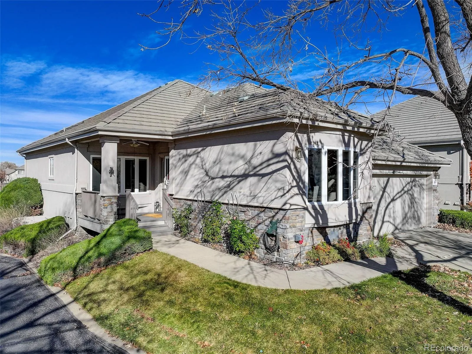 Stunning ranch-style home backing to the golf course with mountain views! This beautifully maintained residence offers low-maintenance living in an incredible setting. Its features include soaring vaulted ceilings with skylights, hardwood floors, fresh paint, new carpet, and an open floor plan filled with abundant natural light. The kitchen is designed for both cooking and gathering, offering granite counters, newer upgraded stainless-steel appliances, a breakfast bar, tile backsplash, and a cozy eating nook with wonderful views. You’ll love entertaining family and guests in the separate formal dining room. The comfortable living room, with its high ceilings and cozy fireplace, is a wonderful space to unwind at the end of your day. The main-floor primary suite captures serene mountain views and features a spacious, updated 5-piece en-suite bath with an oversized shower, jetted tub, and a walk-in closet with built-in organizers. A sunny main-floor office with a bay window is the perfect place for taking care of business. The convenient laundry room with utility sink and storage cabinetry adds exceptional functionality. The finished basement expands your living space with a very spacious family room, a large custom, temperature-controlled glass wine cellar, and a convenient wet bar. The lower level also has a separate guest bedroom and a ¾ bath. Outside, you’ll find a newer, spacious back deck overlooking the golf course, with mature trees and stunning mountain views – a space you’ll never want to leave. Relax on the welcoming front porch while enjoying a quiet cul-de-sac setting. The low-maintenance exterior also has a durable concrete tile roof. The HOA provides complete grounds maintenance and snow removal, so you’ll have plenty of time to enjoy the two community pools, a clubhouse, tennis courts, and beautiful walking trails. This exceptional home combines luxury, convenience, and a coveted Legacy Ridge golf-course location – truly move-in ready!