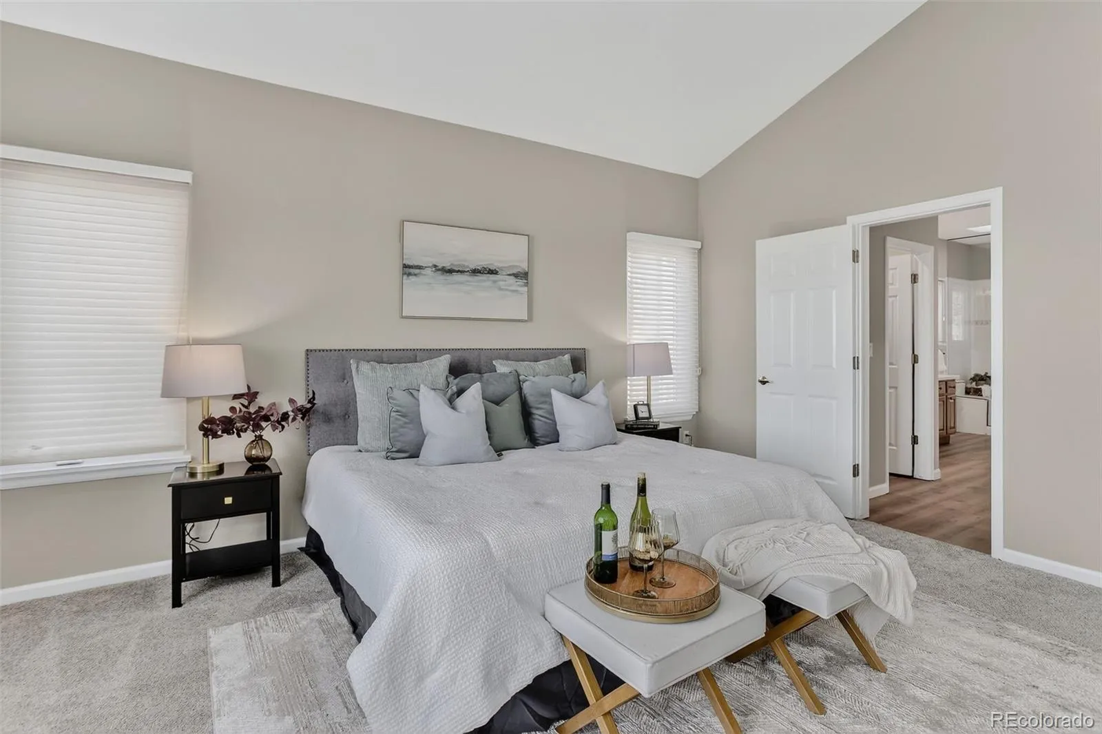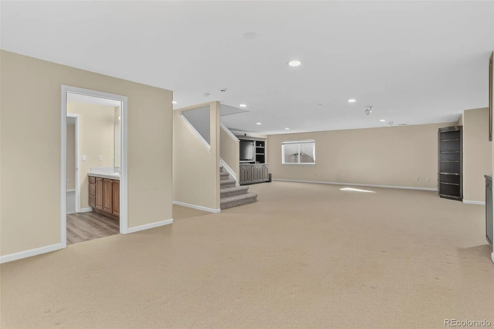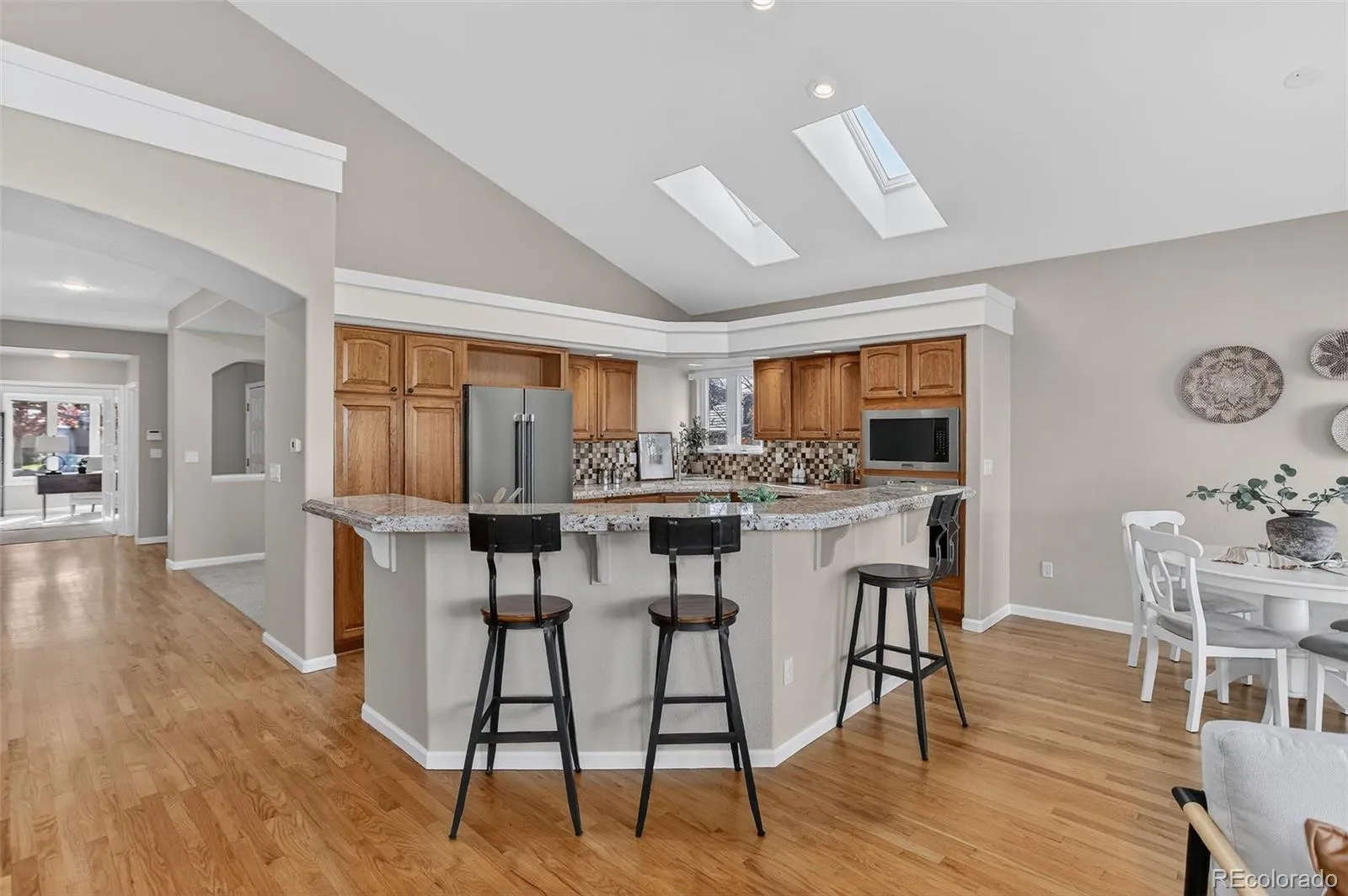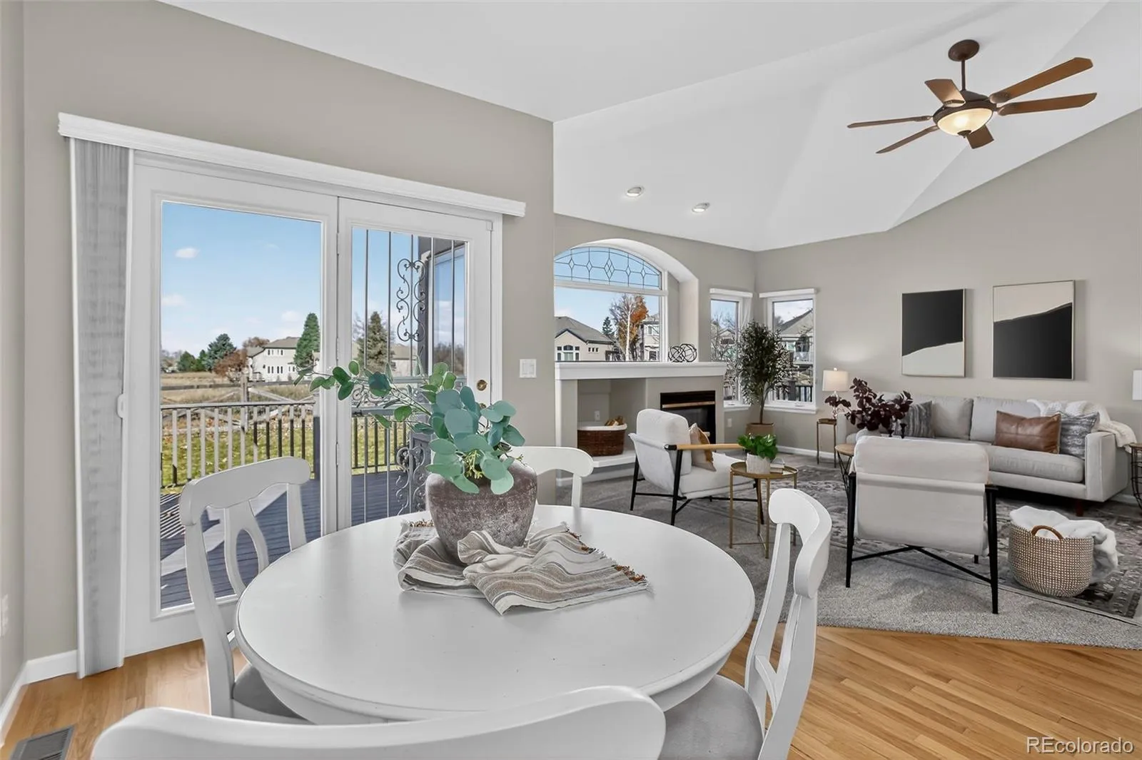Stunning ranch-style home backing to the golf course with mountain views! This beautifully maintained residence offers low-maintenance living in an incredible setting. Its features include soaring vaulted ceilings with skylights, hardwood floors, fresh paint, new carpet, and an open floor plan filled with abundant natural light. The kitchen is designed for both cooking and gathering, offering granite counters, newer upgraded stainless-steel appliances, a breakfast bar, tile backsplash, and a cozy eating nook with wonderful views. You’ll love entertaining family and guests in the separate formal dining room. The comfortable living room, with its high ceilings and cozy fireplace, is a wonderful space to unwind at the end of your day. The main-floor primary suite captures serene mountain views and features a spacious, updated 5-piece en-suite bath with an oversized shower, jetted tub, and a walk-in closet with built-in organizers. A sunny main-floor office with a bay window is the perfect place for taking care of business. The convenient laundry room with utility sink and storage cabinetry adds exceptional functionality. The finished basement expands your living space with a very spacious family room, a large custom, temperature-controlled glass wine cellar, and a convenient wet bar. The lower level also has a separate guest bedroom and a ¾ bath. Outside, you’ll find a newer, spacious back deck overlooking the golf course, with mature trees and stunning mountain views – a space you’ll never want to leave. Relax on the welcoming front porch while enjoying a quiet cul-de-sac setting. The low-maintenance exterior also has a durable concrete tile roof. The HOA provides complete grounds maintenance and snow removal, so you’ll have plenty of time to enjoy the two community pools, a clubhouse, tennis courts, and beautiful walking trails. This exceptional home combines luxury, convenience, and a coveted Legacy Ridge golf-course location – truly move-in ready!