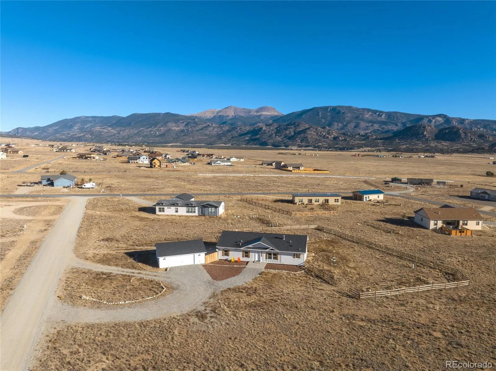 Experience bright, comfortable mountain living in this beautifully maintained Glenview South home featuring 3 bedrooms, 2 full baths, and 1,830 SQFT of thoughtfully designed space. Sweeping 360° mountain views and a sunny south-facing orientation fill the home with warm, natural light throughout the day. The living room is a true highlight, offering tall ceilings, a gas log fireplace centered between built-in shelving and unobstructed views of Mount Princeton. The thoughtful split floor plan provides privacy, placing the primary suite on one end of the home and two additional bedrooms with a full bath on the other. The spacious primary retreat includes a walk-in closet and a 5-piece bath complete with double sinks, a soaking tub, and a separate shower. All bedrooms are generously sized with carpeted flooring and ceiling fans, while durable LVP floors carry through the main living areas. The expansive kitchen is designed for both everyday function and easy entertaining, offering an eat-in space, a large granite island with bar-height seating, ample cabinetry, and stainless steel shelving surrounding the natural gas range and hood vent. An adjacent flex area works perfectly as a formal dining room or home office. A sliding door leads directly to the back patio for effortless grilling and outdoor dining. A large mudroom off the garage entrance adds exceptional functionality, complete with a dedicated laundry area, storage, and space to transition in and out with ease after days spent exploring the outdoors. Outside, you’ll find low-maintenance zeroscaping, a gravel driveway, and a fully fenced backyard ideal for pets and kids. The oversized detached 2-car garage is equipped with electricity and newly installed windows—ideal for vehicles, gear, or workshop space. Located less than 5 miles from downtown Buena Vista and just minutes from trails, hot springs, and the Arkansas River, this move-in-ready home blends comfort and functionality with standout mountain views.