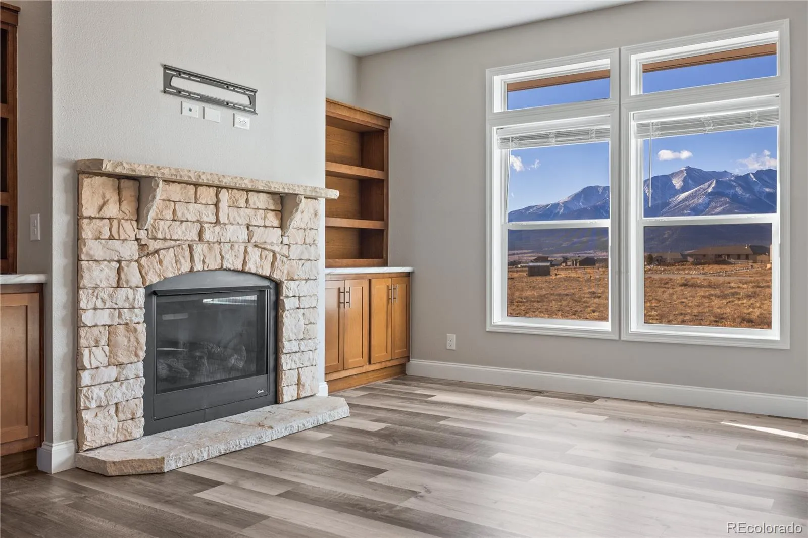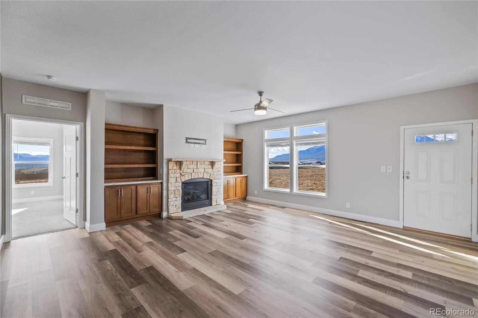 Experience bright, comfortable mountain living in this beautifully maintained mountain home, attractively positioned as one of the best values in Buena Vista. Offering 3 beds, 2 full baths, and 1,830 SQFT of thoughtfully designed space, this home captures sweeping 360° mountain vistas and a sunny south-facing orientation that fills the interior with warm natural light throughout the day. The living room is a true focal point, featuring tall ceilings, a gas log fireplace framed by built-in shelving, and unobstructed views of Mount Princeton. A well-designed split floor plan provides privacy, with the primary suite set apart from two additional bedrooms and a full bath. The spacious primary retreat includes a walk-in closet and a 5-piece bath with double sinks, a soaking tub, and a separate shower. Durable LVP flooring flows through the main living areas, while all bedrooms are generously sized with carpet and ceiling fans. The expansive kitchen is designed for everyday function and easy entertaining, offering an eat-in space, a large granite island with bar-height seating, ample cabinetry, and stainless steel shelving surrounding the natural gas range and hood vent. An adjacent flex area works perfectly as a formal dining room or home office. A sliding door opens to the back patio for effortless outdoor space, while the large mudroom off the garage entrance adds exceptional functionality with a dedicated laundry area, storage, and space to transition in and out after days spent exploring the outdoors. Outside, enjoy low-maintenance zeroscaping, a gravel driveway, and a fully fenced backyard ideal for pets and kids. The oversized detached two-car garage includes electricity and newly installed windows—perfect for vehicles, gear, or workshop space. Located less than five miles from downtown Buena Vista and minutes from trails, hot springs, and the Arkansas River, this move-in-ready home offers comfort, functionality, and standout mountain views at a compelling value.