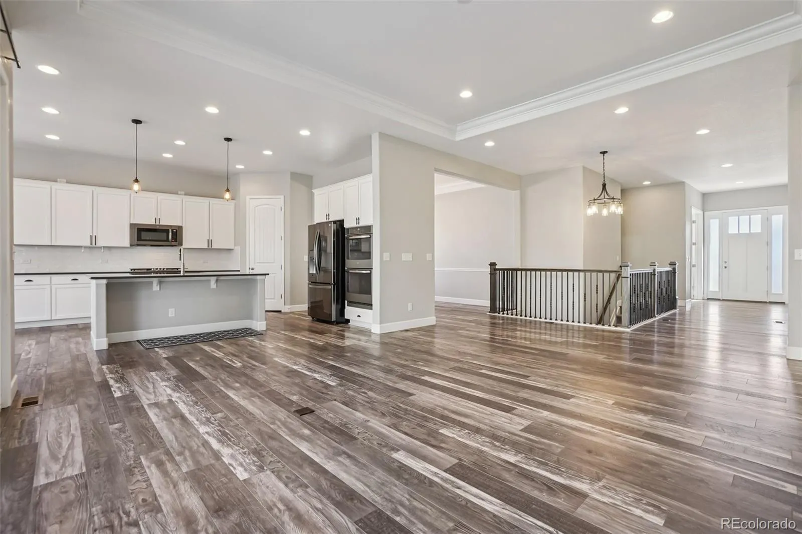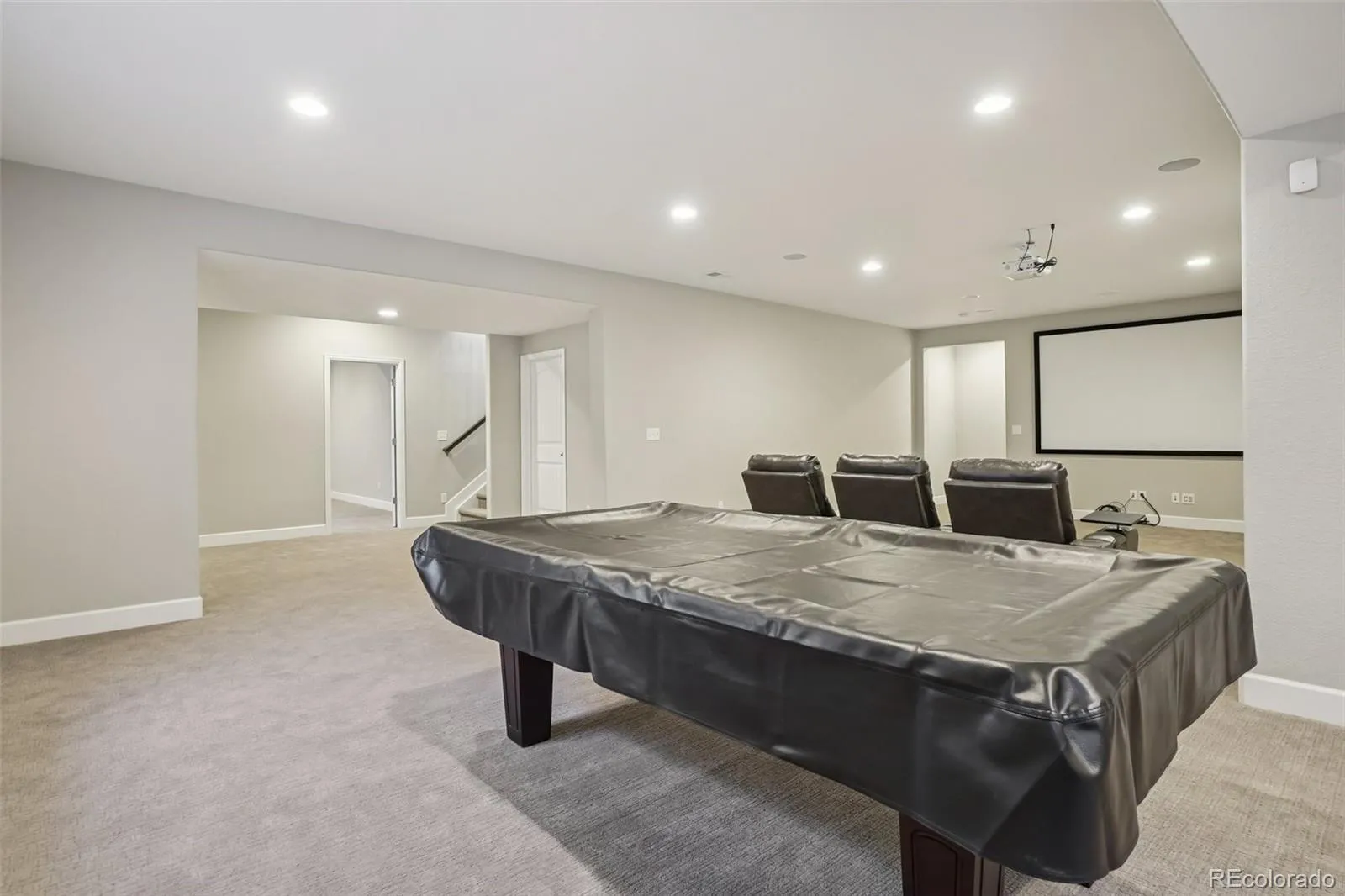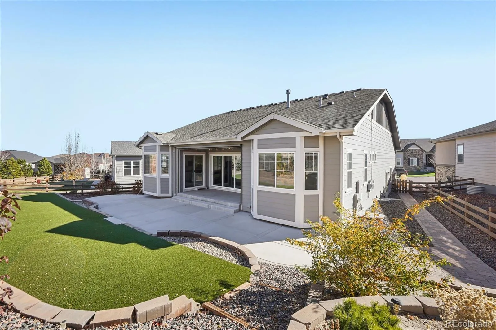 Upgraded and immaculately maintained 4 bedroom ranch in the highly sought-after Southshore community, offering a perfect combination of elegance, comfort, and modern lifestyle. Step inside to a chef’s kitchen featuring a gas cooktop, stainless steel appliances, double oven, expansive island, and a breakfast bar designed for entertaining or casual dining. The open family room is filled with natural light and anchored by a gas fireplace, while a stunning 3 panel sliding glass door seamlessly opens to the outdoor living area, creating a perfect flow between indoor and outdoor spaces. The backyard is a private oasis with a large drop down motorized patio screen, turfed lawn, and mature landscaping with numerous trees providing shade and tranquility, ideal for relaxing, entertaining, or play. Updated bathrooms feature contemporary finishes and high-quality fixtures, reflecting attention to detail throughout the home. The finished basement is an entertainer’s dream, complete with theater equipment and chairs as well as a pool table, all included, creating the ultimate space for movie nights, game nights, or gatherings with family and friends. Energy-efficient seller-owned solar panels offer significant savings with no lease to assume. Located in a quiet and friendly neighborhood, this home is just steps from the reservoir with biking and walking trails, perfect for an active lifestyle, while also providing easy access to community amenities, parks, and top-rated schools. Every element of this home has been thoughtfully upgraded and maintained, offering a turnkey living experience where comfort, luxury, and practicality seamlessly come together. This Southshore ranch presents a rare opportunity to own a sophisticated, move-in ready home designed for both everyday living and exceptional entertaining, blending style, function, and lifestyle in one remarkable package.