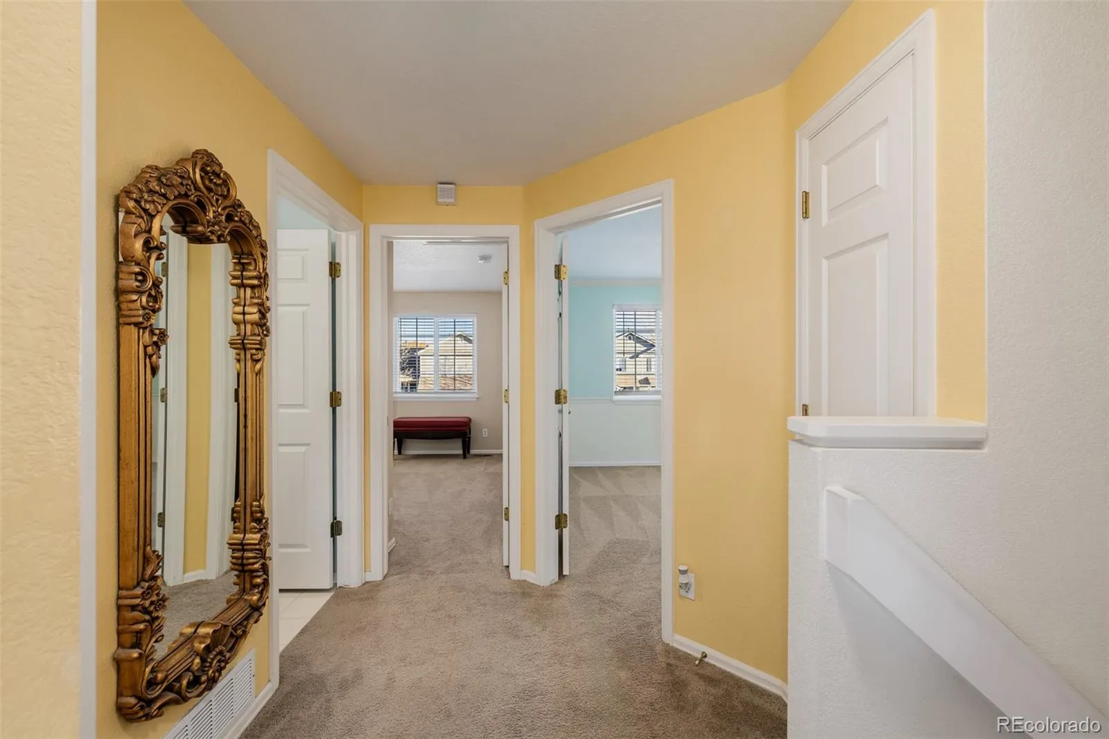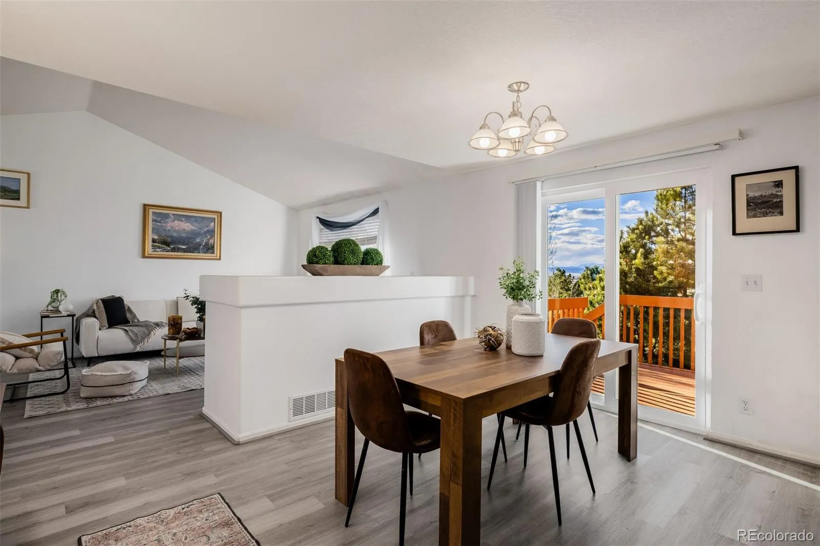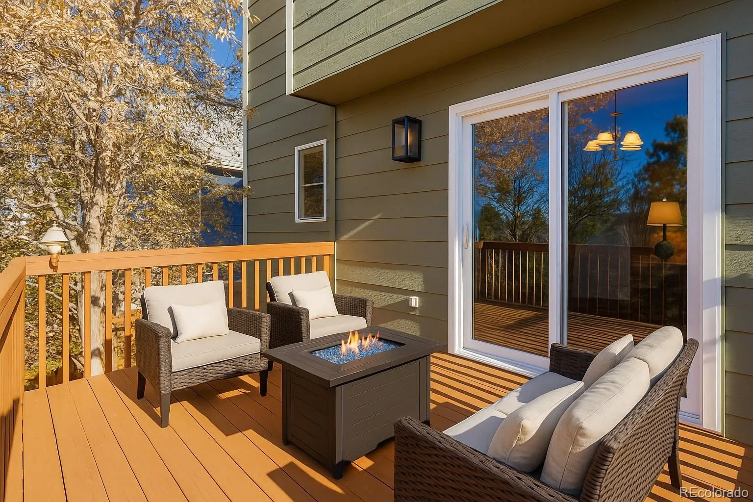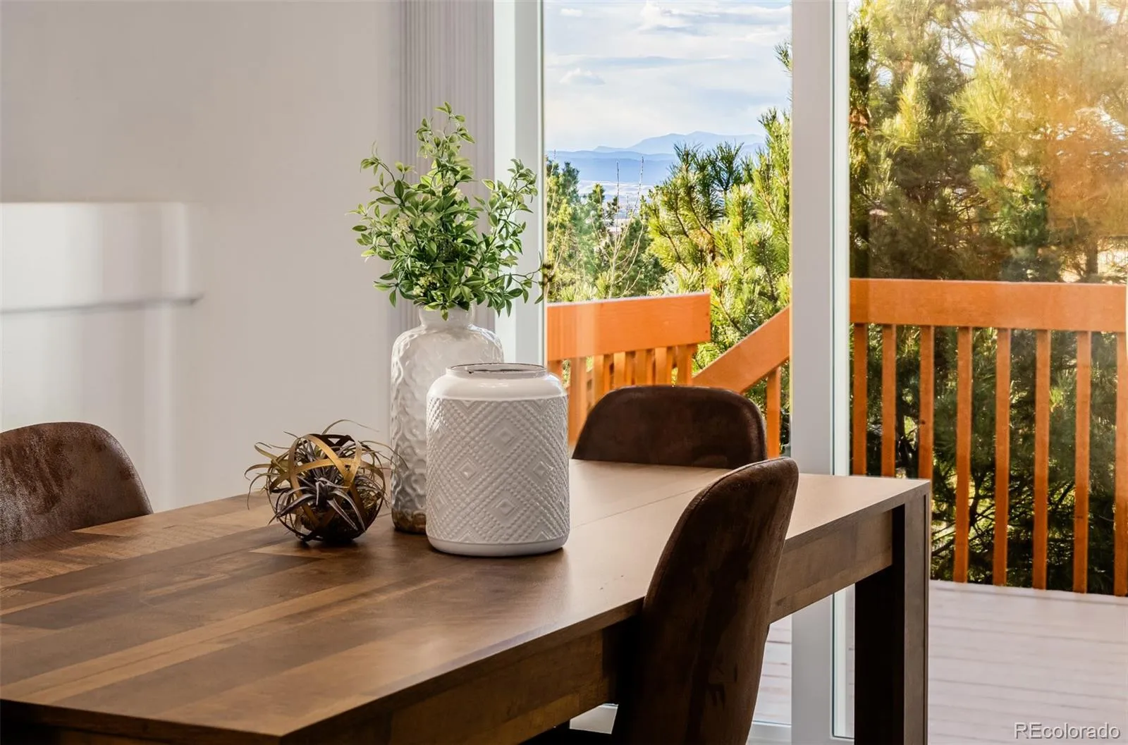 This home in the Metzler Ranch subdivision blends comfort, light, and privacy with an open main level that feels instantly livable. The living area centers around a gas fireplace that anchors the room and adds warmth, while the kitchen offers generous cabinet storage, all appliances included, and a smooth connection to the dining space. A new sliding glass door opens to a deck overlooking a backyard framed by mature trees, 2 producing apple trees, mountain views, and city lights at night, creating an outdoor setting with character and space for gardening, pets, gatherings, or quiet evenings outside. The main level includes a half bath with a brand new vanity and brand new toilet. The upper level offers 3 bedrooms with new carpet and bathrooms finished with brand new vanities and brand new toilets. Property enhancements include a new roof, a new 50 gallon gas water heater, upgraded locks, replaced windows in the secondary bedrooms, a brand new radon mitigation system, and an unfinished walkout basement that expands storage and future potential. A 2 car attached garage adds convenience and function. The location stands out with Metzler Family Open Space minutes away offering 109 acres of open land and 4 miles of trails, along with walking distance to Metzler Ranch Community Park with playgrounds, fields, a skate park, a batting cage, bike paths, and lighted courts. Daily needs are met less than 1 mile away at Milestone Crossing, and the Outlets at Castle Rock sit about 7 minutes away with shopping, groceries, and cafes. Quick access to I 25 provides an easy commute to Denver or Colorado Springs, and the home is also close to Downtown Castle Rock for dining entertainment and events, while Pikes Peak visible from the street pairs with the tree lined yard, mountain backdrop, and nighttime city lights to create a lifestyle that feels distinctly Colorado.