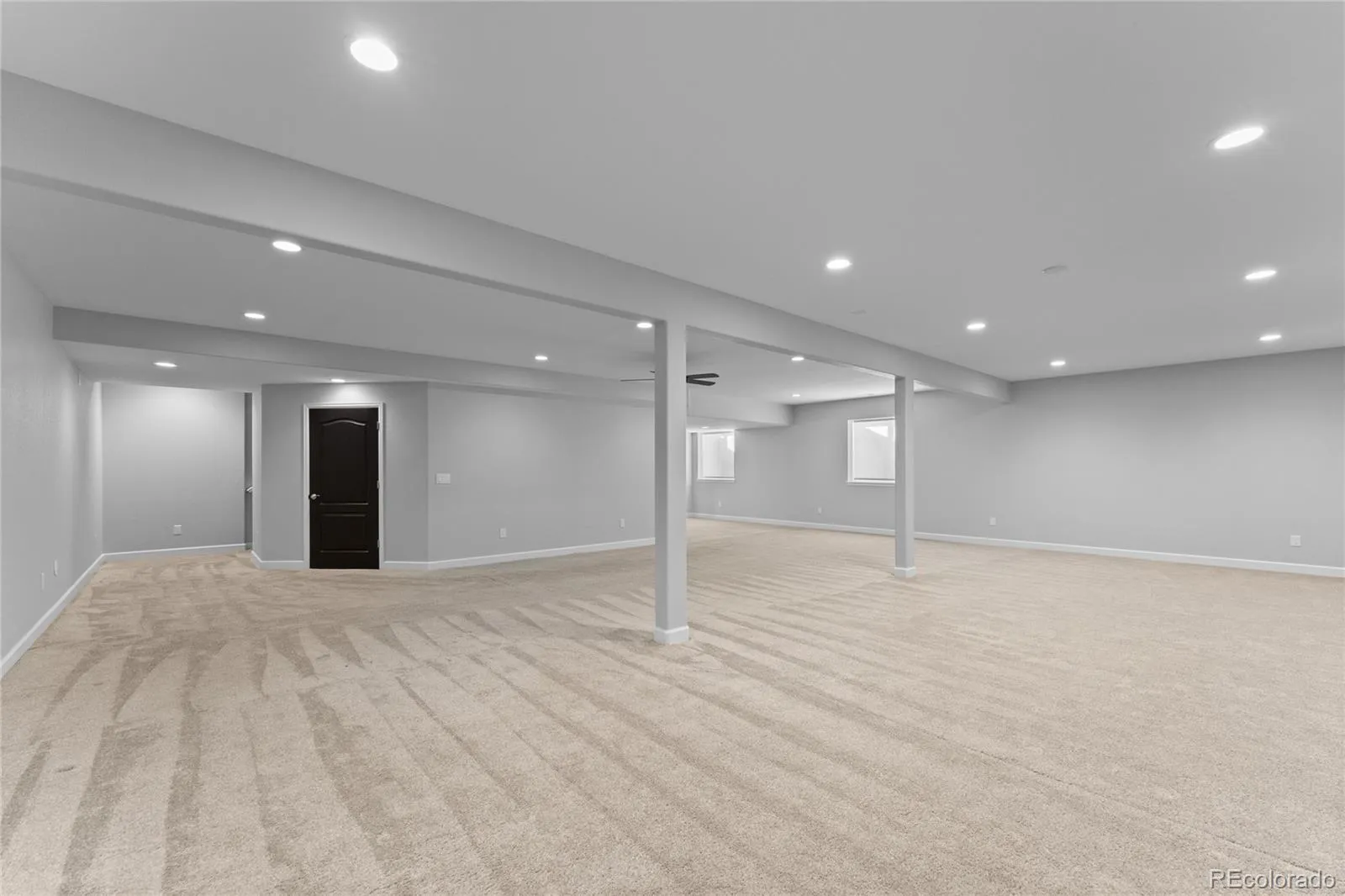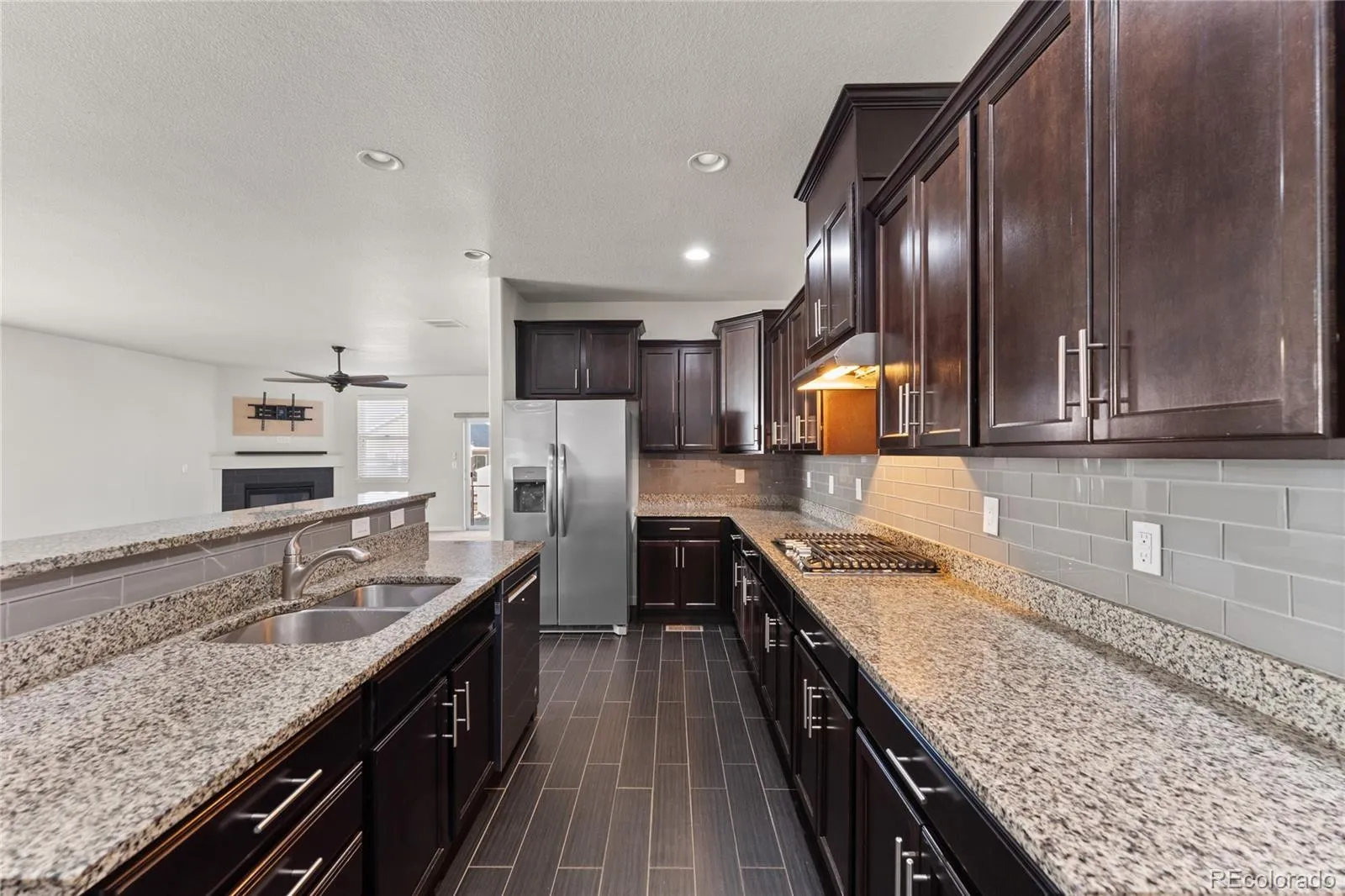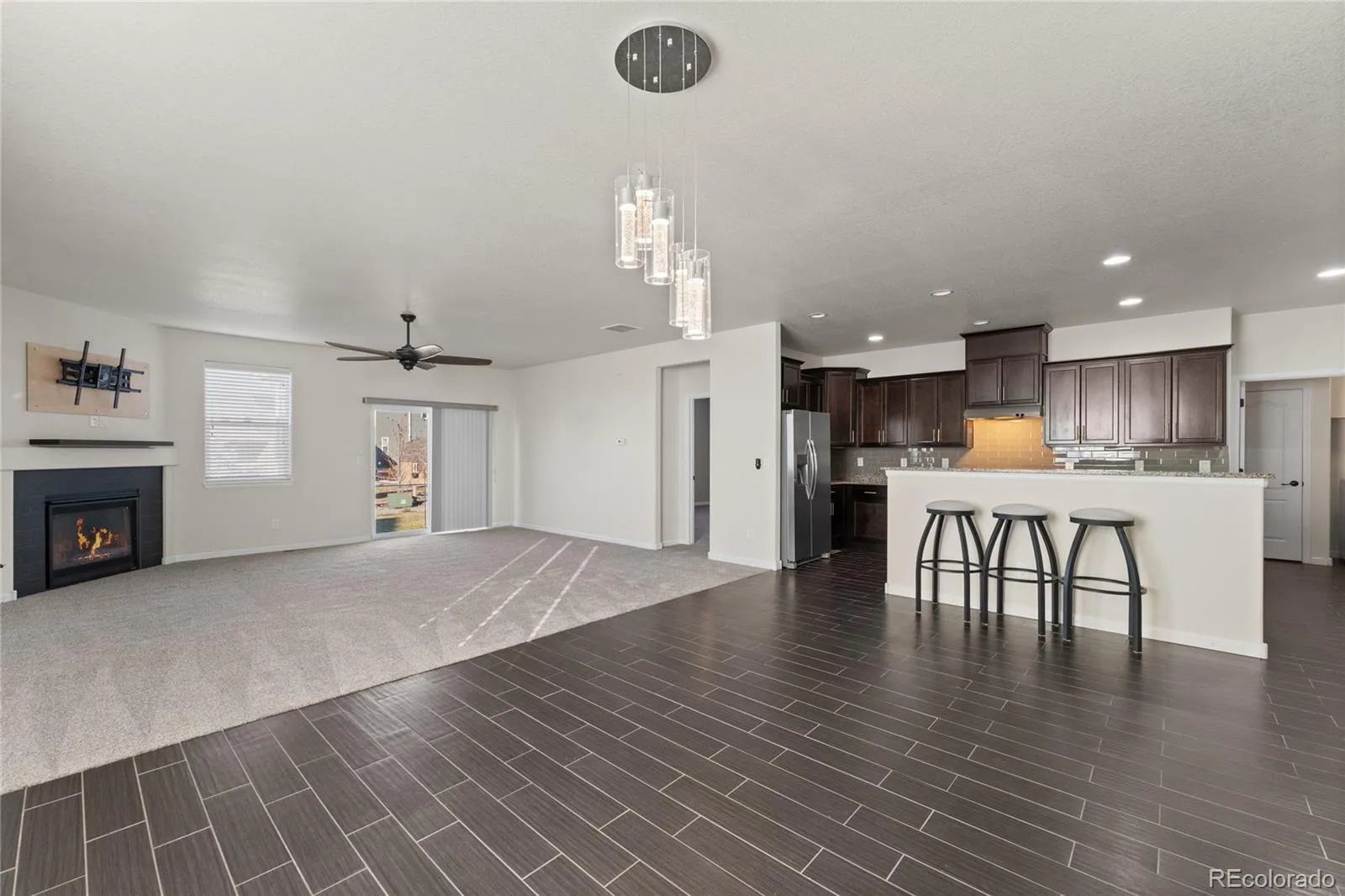 Tucked into the quiet golf course community of Spring Valley Ranch in Elizabeth, 5509 Harbor Town Dr is one of the very few ranch style homes with a fully finished basement and a three-car garage! When you enter, you’ll be greeted by warm, wood-look ceramic tile floors, and brand new carpet, both spreading across the main level in exactly the places you’d want them, and providing a beautiful contrast of color that gives this home a welcoming atmosphere. The kitchen has rich espresso colored cabinets, a sleek grey glass tile backsplash, and a brighter granite that beautifully ties in the colors of the home, and provides a pop of contrast to make the kitchen visually exciting! The stainless steel appliances, gas cooktop, coffee bar, and bar seating will make this kitchen the central hub where everybody WANTS to hang out! The primary suite has an en-suite bathroom with granite counters, a standup shower with oiled bronze surrounds, a soaking tub, and a generously sized walk-in closet. And off the 3-car garage is the laundry room, meaning this home can truly be used for main-level-living. Head downstairs, and you’ll find an absolutely CAVERNOUS finished basement! The family room is legitimately massive, and your imagination is your only limit down here. Game room, movie theater, golf simulator…there is SO MUCH ROOM FOR ACTIVITIES! There’s also another bedroom and modern bathroom, making this space perfect for older kids, or even a multi-generational living situation. The Spring Valley Golf Club is an absolute hidden gem! With 18 challenging holes of golf, and an incredible clubhouse with a great restaurant and a friendly atmosphere, this is the ideal neighborhood for somebody who wants to live in a golf course community, and be away from the hustle and bustle of a bigger city, but without being in the middle of nowhere. Come take a look today!
