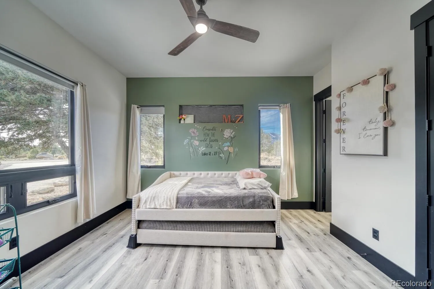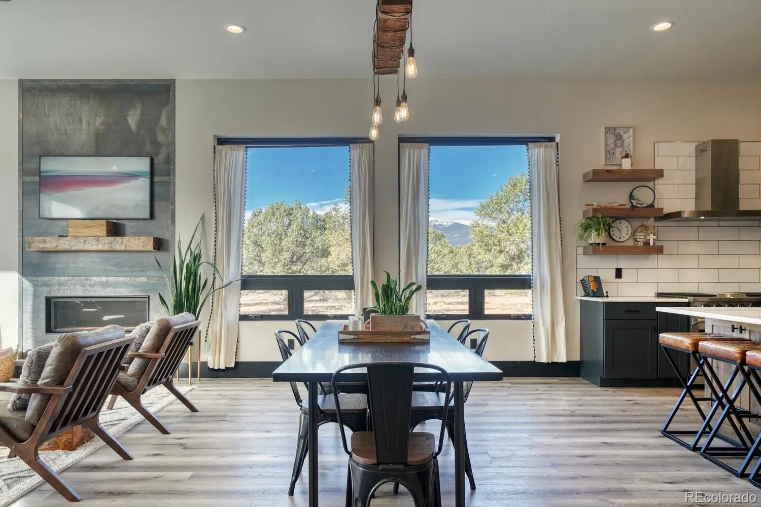 Nestled in the highly sought-after Lakeside Preserve subdivision of Buena Vista, Colorado, this exquisite 3,222 square foot mountain contemporary custom home offers the perfect blend of luxury, comfort, and breathtaking natural beauty. Step inside to an expansive open floor plan bathed in natural light, where soaring ceilings and clean lines create an inviting atmosphere for both relaxation and entertaining. The heart of the home is a chef’s dream gourmet kitchen featuring premium appliances, sleek granite countertops, a large center island, custom cabinetry, and a walk-in pantry—seamlessly flowing into the spacious great room with a dramatic ironclad fireplace and panoramic windows framing unobstructed views of the majestic Collegiate Peaks. The main level also includes a luxurious primary suite with a spa-like ensuite bath, dual vanities, a soaking tub, and an enormous walk-in closet cleverly concealing a hidden bonus storage room—perfect for seasonal items or valuables. Another guest bedroom with ensuite bathroom and an office adorn the main level. Upstairs, two generously sized bedrooms provide privacy and comfort for family or guests. From the upstairs family room the covered balcony delivers jaw-dropping views of Ice Lake and the surrounding 14,000-foot peaks. Additional highlights include high-end finishes throughout with wide-plank wood floors, designer lighting, smart home features and multiple outdoor living spaces to soak in the mountain scenery and an attached oversized 2-car garage. Built with meticulous craftsmanship and designed for mountain living at its finest, this rare Lakeside Preserve gem combines modern elegance with the serenity of Colorado’s high country. Don’t miss the opportunity to own a slice of paradise with Collegiate Peaks as your daily backdrop. Prime location just minutes from downtown Buena Vista, Arkansas River recreation, and world-class hiking, skiing, and fishing.