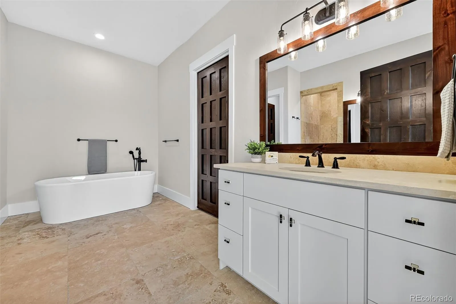 The Master Bedroom Suite features full views of Pikes Peak, double vanities, a Euro-Style step-in shower, soaking tub, and walk-in closet. The 2nd Junior Suite (north side of floor plan) offers guests complete privacy while the 3rd Flex-Room (office, 3rd bedroom, library, gym) has its own entry & exits. The 4+ Bay garage (fits 6 vehicles) and well suited for additional storage. Ample guest parking surrounds the entry to the home
