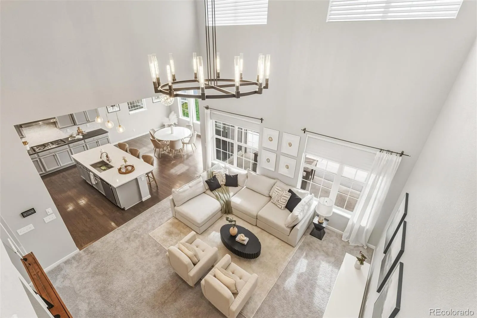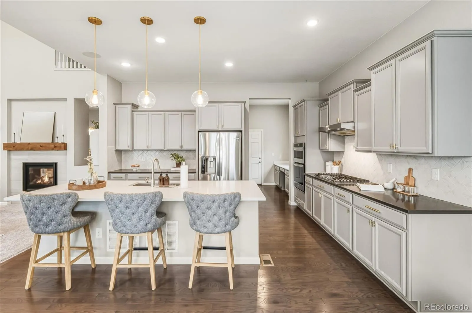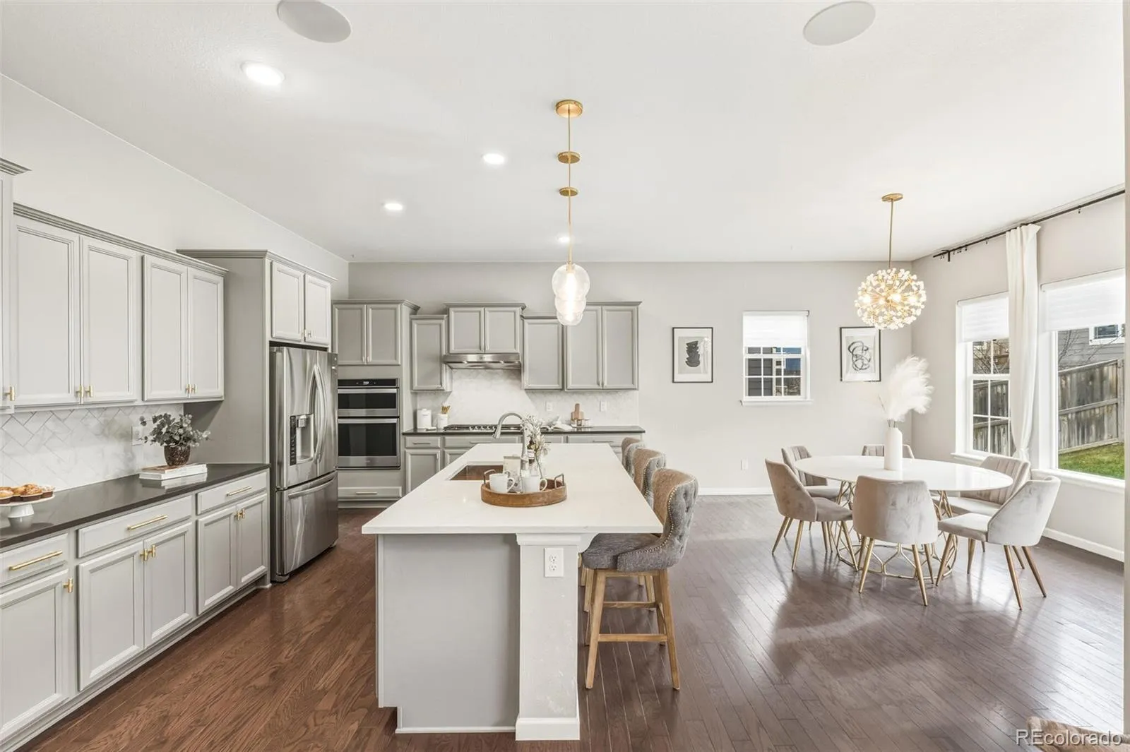 Discover 5393 square feet of thoughtfully crafted living space where modern elegance meets everyday comfort. This home balances drama and warmth, from the striking two-story great room to the inviting chef’s kitchen designed to bring people together. The kitchen feels like the heart of the home, styled with soft gray cabinetry, crisp white quartz and premium stainless-steel appliances including a gas range and double ovens. The spacious island is perfect for casual conversations, while the butler’s pantry—just steps from the garage—keeps life running smoothly. A formal dining room offers a welcoming spot for holidays, celebrations, and everything in between. In the great room, soaring ceilings and a wall of windows turn the outdoors into a changing piece of art. The modern tiled gas fireplace adds just the right touch of warmth for cozy evenings. Nearby, a main-level office gives you a peaceful place to focus, and the private guest suite with its own ensuite bath is ideal for extended family or weekend visitors. Upstairs, the primary suite is a true retreat—peaceful, spacious, and designed with relaxation in mind. The spa-inspired five-piece bath features a deep soaking tub, oversized walk-in shower, dual vanities with light-gray cabinetry, and white quartz counters. The expansive walk-in closet makes staying organized feel effortless. A bright and open loft creates another flexible living space, while the secondary bedrooms each offer walk-in closets and plenty of natural light. The unfinished basement provides endless potential—more living space, a gym, a theater, or whatever suits your lifestyle. Step outside to a lush, private backyard—an easy, natural extension of the indoor spaces. It’s the perfect place to unwind, entertain, or simply enjoy fresh Colorado air. All of this is tucked moments away from E-470, I-25, and several beautiful golf courses, offering both convenience and serenity.