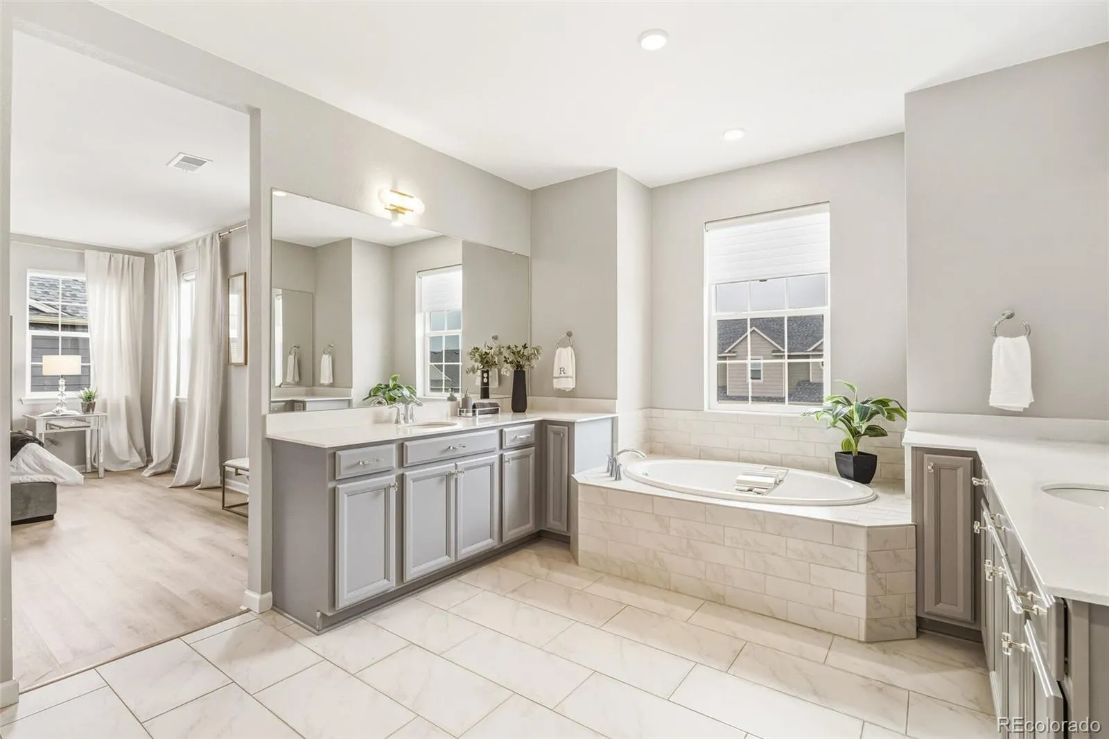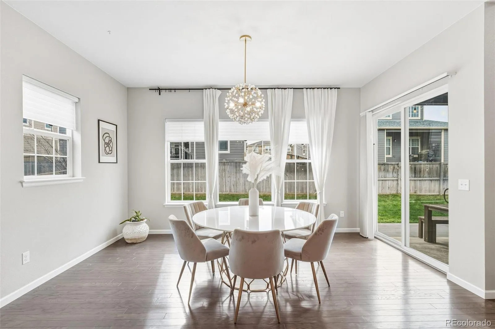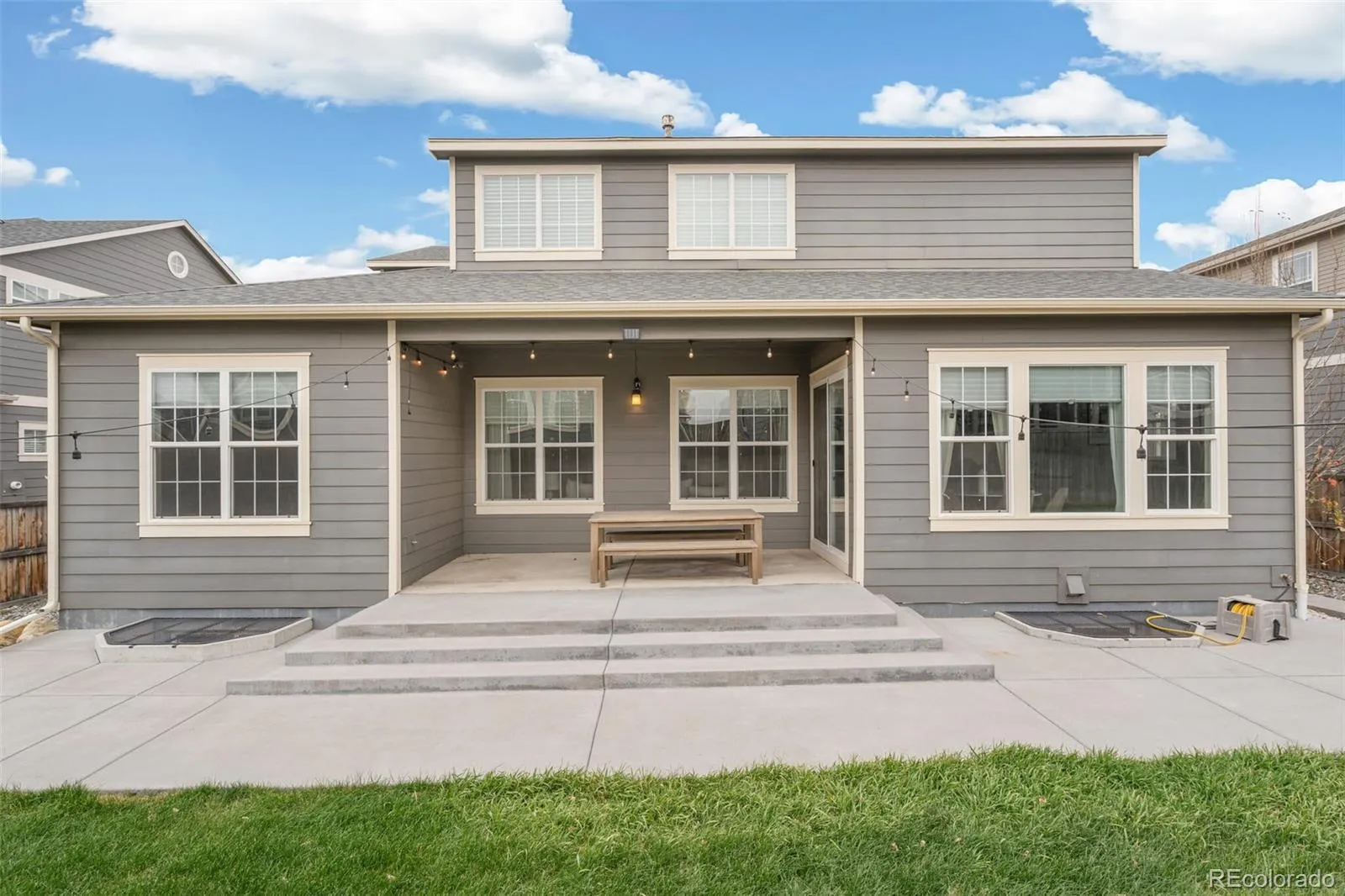 Discover 5393 square feet of thoughtfully crafted living space where modern elegance meets everyday comfort. This home balances drama and warmth, from the striking two-story great room to the inviting chef’s kitchen designed to bring people together. The kitchen feels like the heart of the home, styled with soft gray cabinetry, crisp white quartz and premium stainless-steel appliances including a gas range and double ovens. The spacious island is perfect for casual conversations, while the butler’s pantry—just steps from the garage—keeps life running smoothly. A formal dining room offers a welcoming spot for holidays, celebrations, and everything in between. In the great room, soaring ceilings and a wall of windows turn the outdoors into a changing piece of art. The modern tiled gas fireplace adds just the right touch of warmth for cozy evenings. Nearby, a main-level office gives you a peaceful place to focus, and the private guest suite with its own ensuite bath is ideal for extended family or weekend visitors. Upstairs, the primary suite is a true retreat—peaceful, spacious, and designed with relaxation in mind. The spa-inspired five-piece bath features a deep soaking tub, oversized walk-in shower, dual vanities with light-gray cabinetry, and white quartz counters. The expansive walk-in closet makes staying organized feel effortless. A bright and open loft creates another flexible living space, while the secondary bedrooms each offer walk-in closets and plenty of natural light. The unfinished basement provides endless potential—more living space, a gym, a theater, or whatever suits your lifestyle. Step outside to a lush, private backyard—an easy, natural extension of the indoor spaces. It’s the perfect place to unwind, entertain, or simply enjoy fresh Colorado air. All of this is tucked moments away from E-470, I-25, and several beautiful golf courses, offering both convenience and serenity.