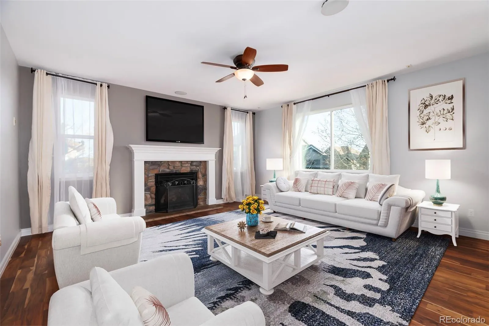 Welcome to this beautifully updated 3 bedroom, 3 bathroom home located in the sought-after Cobblestone Ranch neighborhood! Situated on a corner lot along a private, low-traffic loop, this property offers exceptional privacy and curb appeal. Step inside to discover a bright, open floor plan featuring new carpet, new wet-area flooring, and upgraded hardwood floors throughout the main living spaces. The heart of the home is the inviting kitchen, complete with granite countertops, a large island ideal for meal prep and entertaining, and seamless flow into the living room. Enjoy cozy evenings by the fireplace, creating the perfect setting for relaxation and gatherings. Upstairs you will find a private primary bedroom with an en suite bathroom and a spacious walk-in closet—your own tranquil retreat at the end of the day. Two additional bedrooms provide flexibility for family, guests, or hobbies. On the main level is a dedicated office with a charming bay window that offers the ideal work-from-home setup. The expansive basement adds even more versatile living space, including a large recreational room – perfect for a home theater, gym, or play area. Outside, you’ll love the oversized 3-car garage and the extended stamped-concrete patio, offering ample space for outdoor dining and entertaining. This home blends comfort, thoughtful upgrades, and functional design—an exceptional opportunity in the charming Cobblestone Ranch community! This is truly a hidden Gem ion a sea of mediocrity
