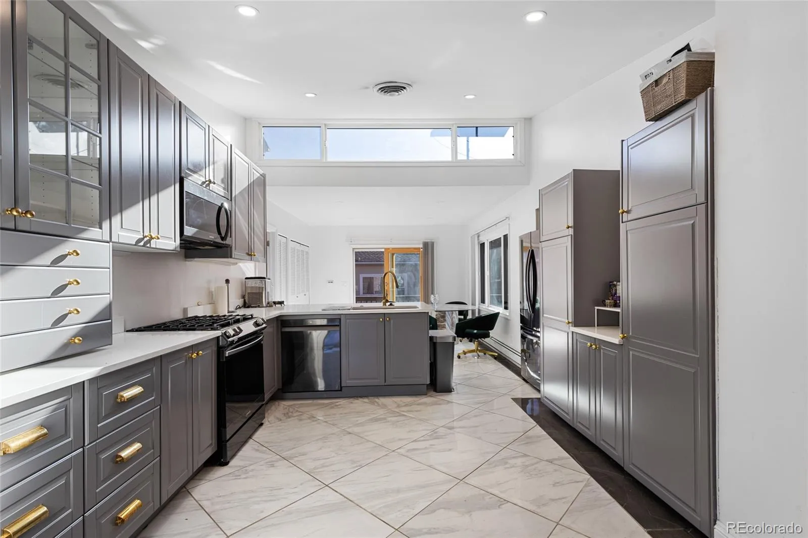 The upper level includes a serene primary suite and two additional bedrooms, each supported by fully renovated bathrooms showcasing distinctive design and quality finishes. The lower level adds another 1,000 finished square feet, complete with the second full kitchen and a nostalgic potbelly-style fireplace, complemented by marble and granite accents that elevate the home’s craftsmanship. Two sets of skylights on bring in additional sun daily.
