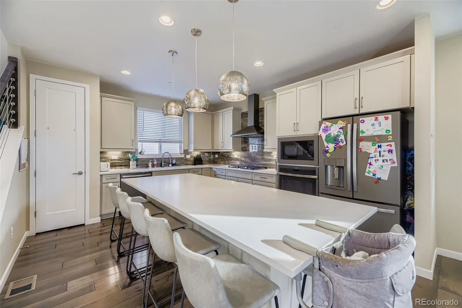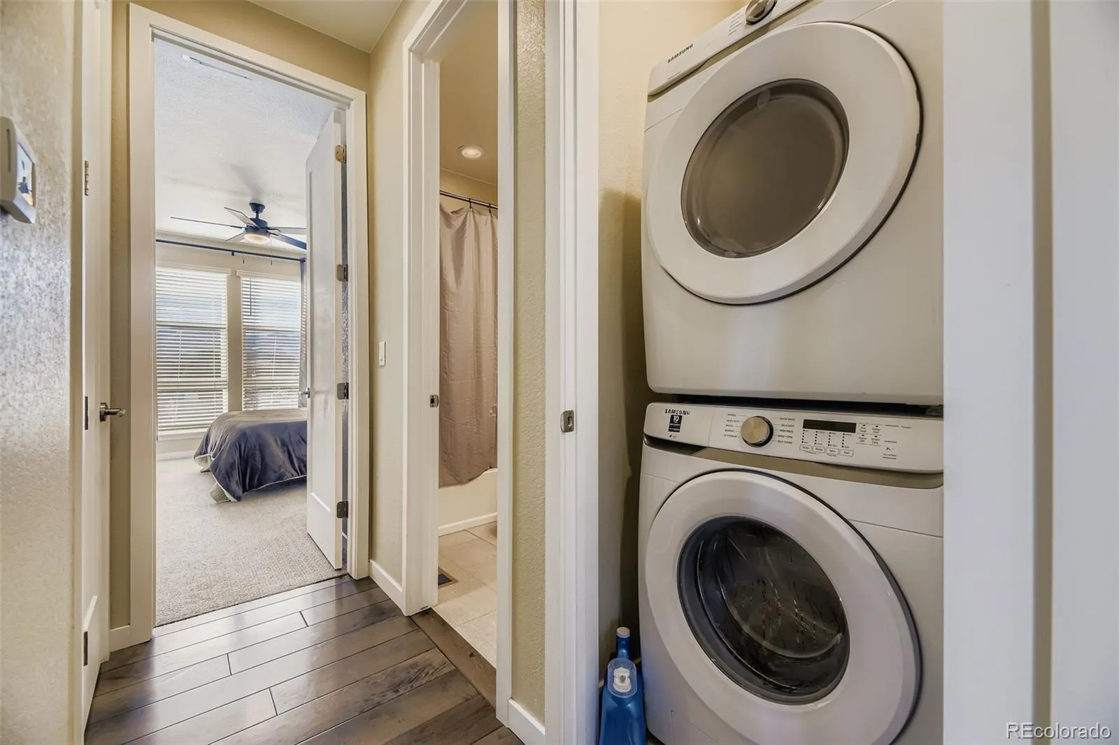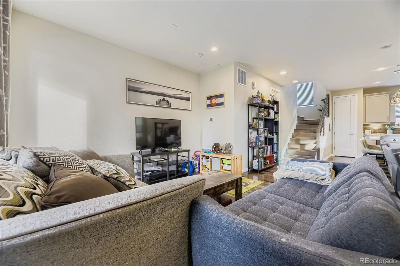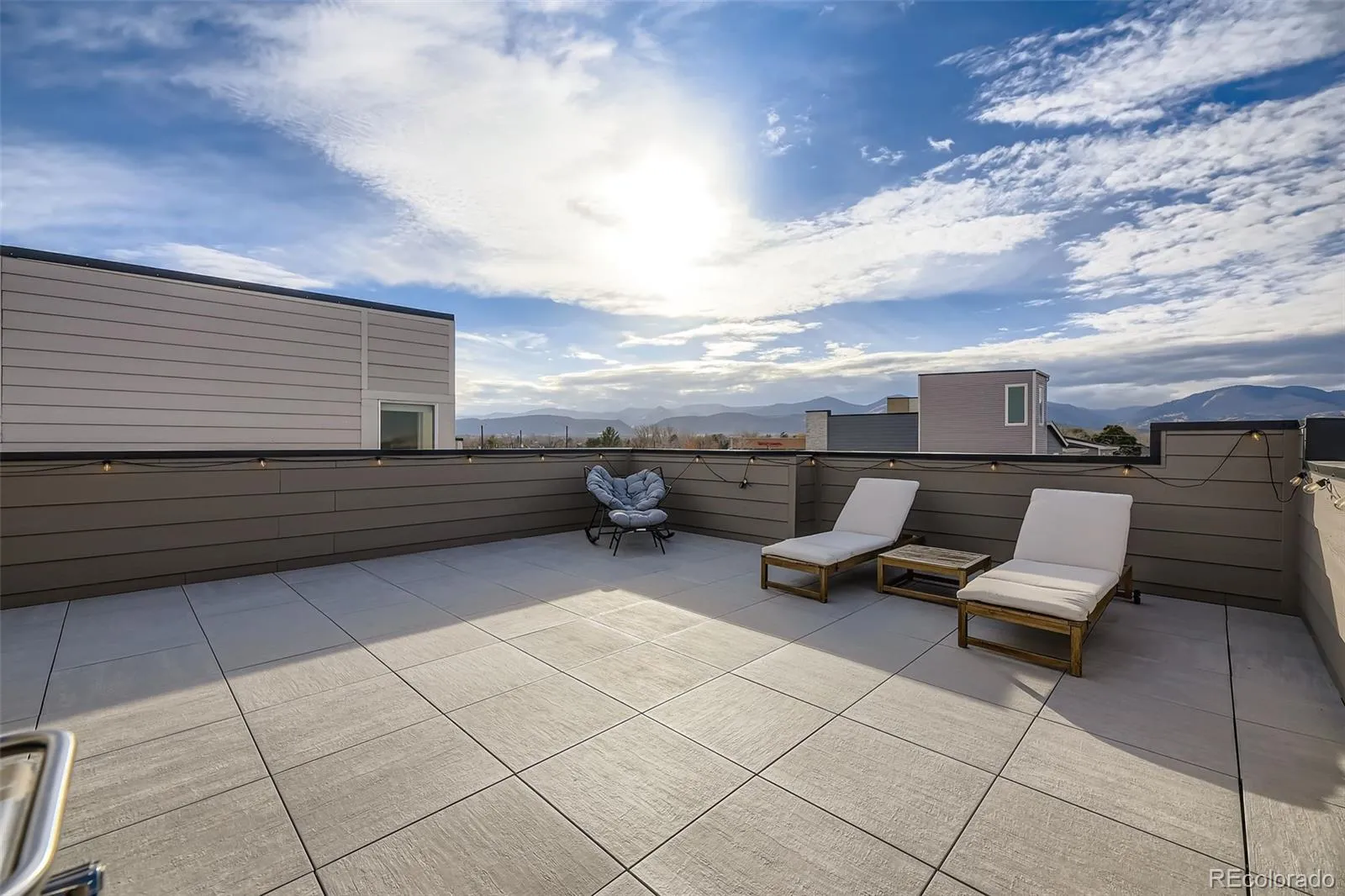 The highlight of this home is the top-floor rooftop patio, offering expansive mountain and neighborhood views. With a built-in gas line, it is perfect for grilling and entertaining.