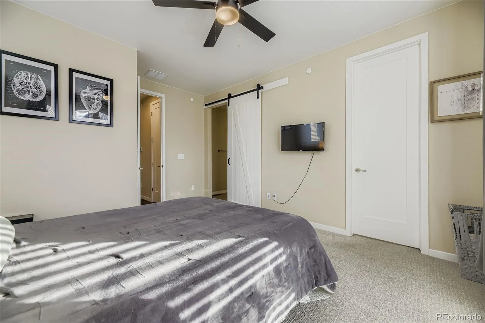 Upstairs, the primary bedroom features a walk-in closet, an updated bathroom with dual sinks and a large shower, and a new barn-style door for added privacy. The laundry room is conveniently located on the same floor.