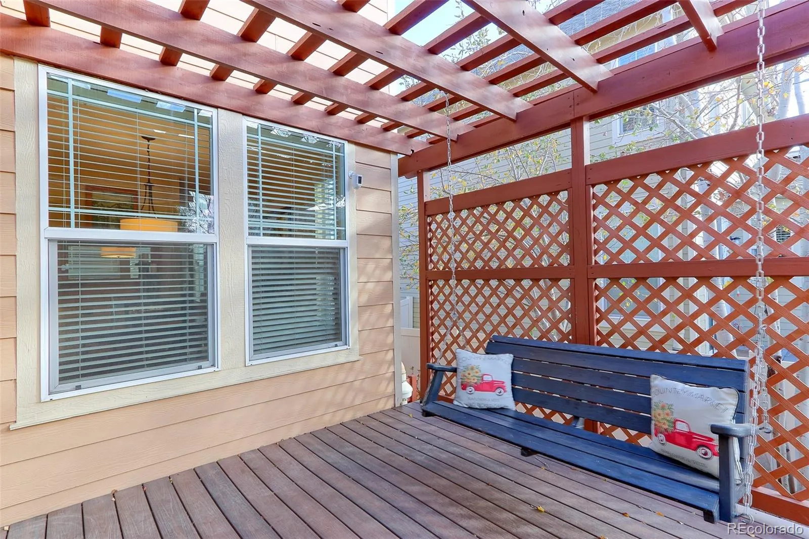 This beautifully maintained, sun-filled townhome blends comfort, style, and flexibility in a prime Lafayette location. Gleaming wood-look flooring leads through an inviting main level featuring a spacious living room, a dining room with custom lighting, a generous kitchen with newer stainless steel appliances, and a versatile flex space with a built-in desk, along with the convenience of main-floor laundry. Upstairs, two serene primary bedrooms each offer a walk-in closet and private bath. The finished basement adds even more living options with a third primary bedroom or a potential family room complemented by a modern 3/4 bath. Outdoor living shines in the private yard with its covered deck, patio, and raised garden beds, along with a welcoming covered front porch. A two-car attached garage provides everyday ease, while the location offers effortless access to Coal Creek Trail, the Great Outdoors Waterpark, and LaMont Does Park, and is just minutes from Historic Downtown Lafayette’s charming shops and restaurants with quick connections to both Denver and Boulder.