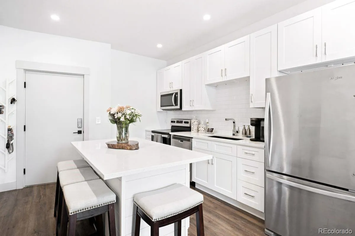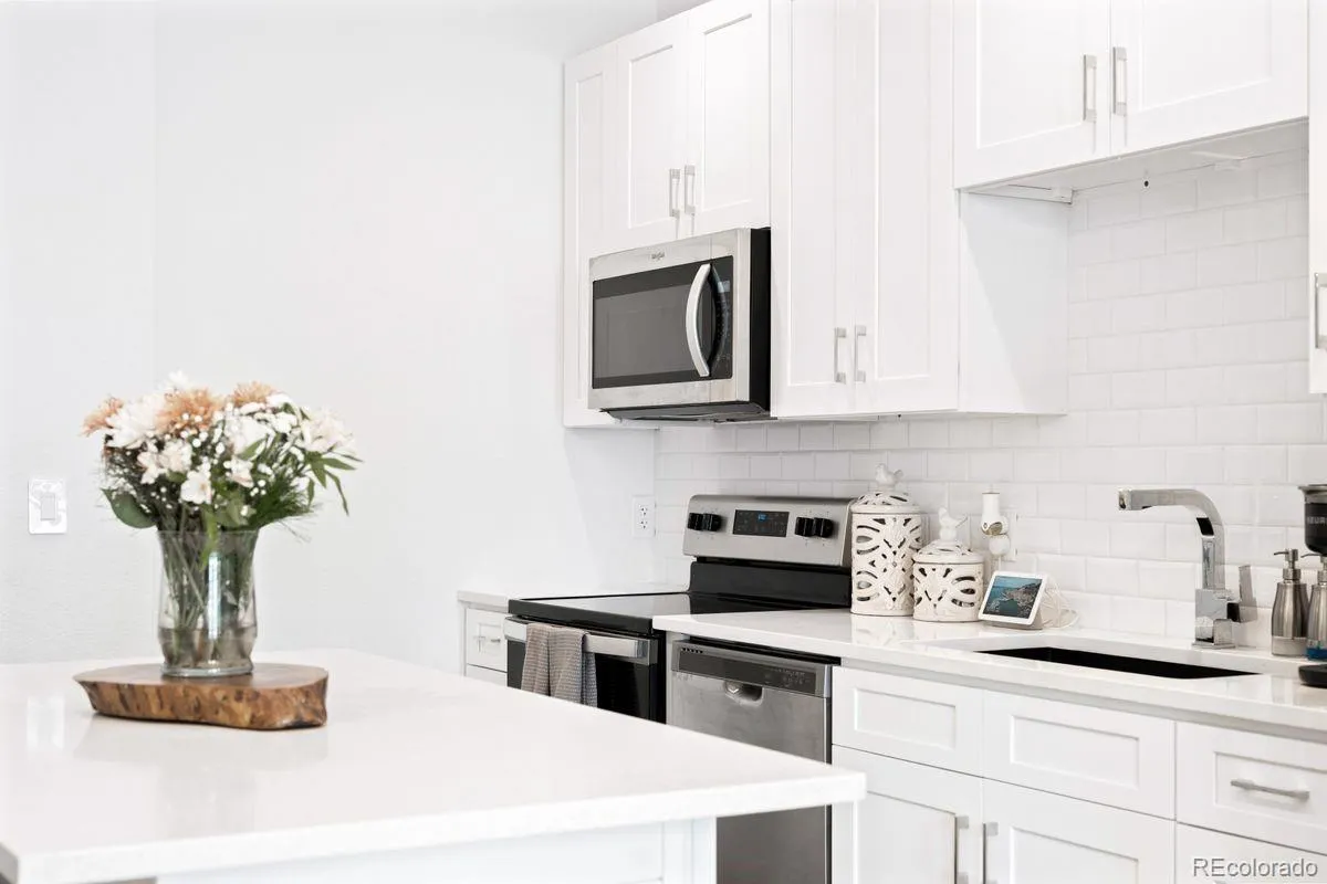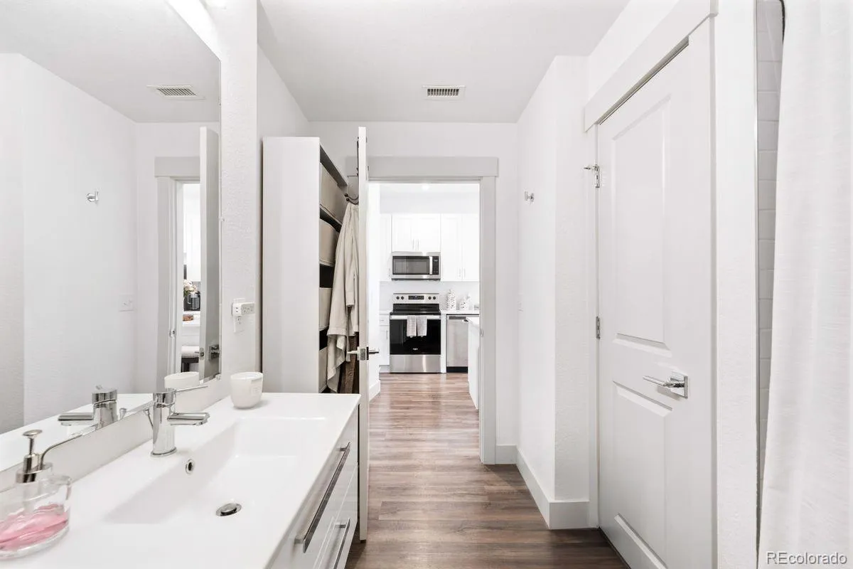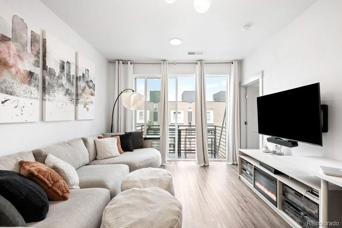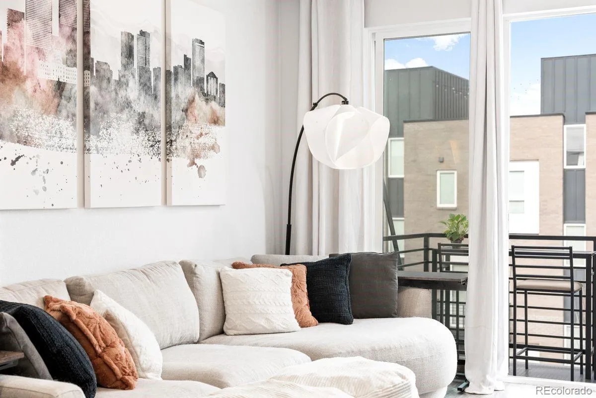 Welcome to Luna Flats, a newly built boutique community offering stylish, efficient living in one of Edgewater’s fastest-growing corridors. This contemporary 1-bedroom, 1-bath home delivers 555 square feet of thoughtfully designed space, pairing modern finishes with low-maintenance convenience. Inside, the open layout creates an inviting flow between the living room and the eat-in kitchen, which features a self-cleaning oven, refrigerator, microwave, and dishwasher. A spacious walk-in closet anchors the comfortable primary bedroom, while the full bathroom offers clean, modern finishes and easy access from the main living areas. In-unit laundry adds to the convenience, and efficient forced air heating and central air conditioning ensure year-round comfort. Located on the third level, this unit provides easy access and a private balcony, perfect for morning coffee or relaxing outdoors. Large windows bring in natural light, giving the home an airy, welcoming feel. Built by Echo Builders, Luna Flats features a fresh architectural style with contemporary lines and quality craftsmanship throughout. The professionally managed HOA includes exterior maintenance, grounds upkeep, insurance, trash, and snow removal, letting owners enjoy a true lock-and-leave lifestyle. A deeded reserved parking space is included. The building is pet-friendly, and residents benefit from an elevator, secure entry, and a highly walkable location. Just minutes from Sloan’s Lake, Edgewater Public Market, shops, restaurants, Target, Walker-Branch Park, and the Lamar Light Rail Station, this home offers unbeatable access to transportation and amenities. Whether you’re a first-time buyer, investor, or someone looking to simplify, Luna Flats offers exceptional value in an unbeatable location. Please see broker’s notes for information on ongoing construction defect litigation. Unit is non-warrantable and priced accordingly.