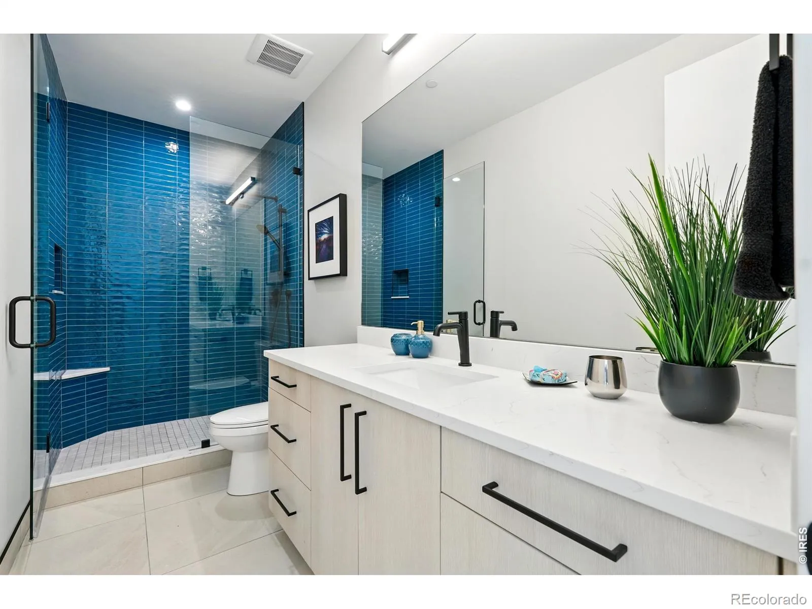 Located in the heart of South Boulder’s desirable Table Mesa neighborhood. This new build, net zero home with a 10kW owned solar system is set back on a cul-de-sac (not located on Table Mesa), just minutes from trailheads, parks, top-rated schools, and Table Mesa Shopping Center. Every detail of this 5 bed, 6 bath home with 2 car garage marries luxury and function, thoughtfully designed to accommodate both everyday living and entertaining. You’re greeted with soaring ceilings, beautiful white oak floors, and a warm open layout. A true heart of the home, the chef’s kitchen is outfitted with Thermador appliances, quartz countertops, 9-foot waterfall island, and an oversized walk-in pantry that is accessible from the garage. The dining and living spaces are flooded with natural light and extend seamlessly to the backyard covered patio, overlooking the fully fenced backyard with mature trees and lush landscaping. The main level bedroom with large en-suite bathroom is perfect for guests or home office. Take the custom floating white oak and steel staircase to the upper level, you’ll find the primary suite, 2nd en-suite bedroom and laundry room. The primary suite is a sanctuary unto itself, boasting a custom walk-in closet and 5-piece luxury bath with heated floors, steam shower, soaking tub and vaulted ceilings. Head outside onto your private balcony to enjoy morning coffee or evening stargazing. The fully finished basement features 2 bedrooms, wet bar with full sized fridge, & large rec room that’s perfect for theater, game room, or home gym. Wide driveway & attached two car tandem garage offers EV charger, two over head doors (can pull through into backyard) & two entrances into the home. Multi-zone HVAC system with heated bathroom tile floors, sump pump, radon system and full xeriscaped front yard are just a few custom details that this lovely home has to offer. HERS index score of 0 ensures year-round comfort & considerable cost savings. You won’t be disappointed! Qu