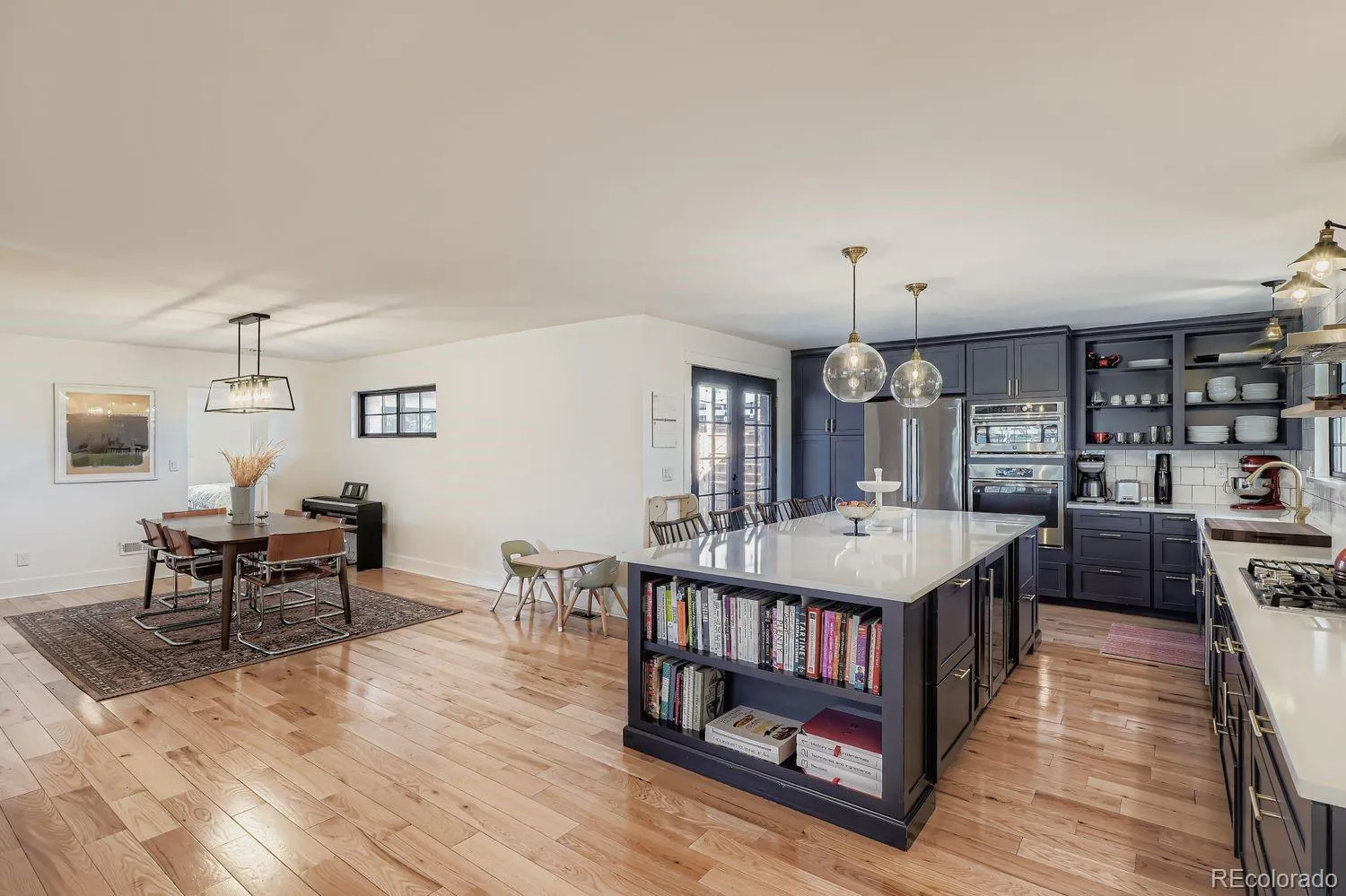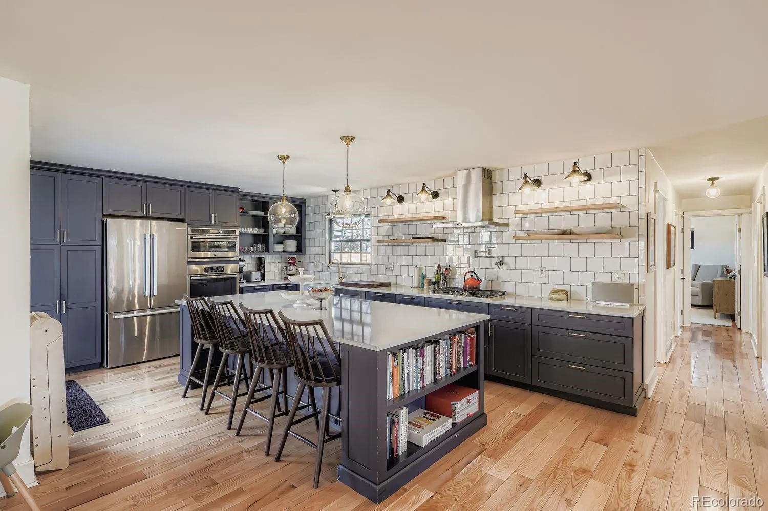 Nestled in the heart of Virginia Village, this beautifully reimagined mid-century ranch seamlessly blends timeless charm with thoughtful, high-end updates—delivering the open-concept layout today’s buyers crave. At the center of the home is a stunning new kitchen designed for both style and function: a generous island with seating, soft blue-gray shaker cabinetry, gleaming quartz countertops, and premium stainless-steel appliances. Flowing effortlessly into the bright dining and living areas, the space is anchored by a cozy fireplace and framed by oversized windows that flood the rooms with natural light. The private primary suite is a true retreat, featuring an expansive walk-in closet and a spa-inspired bathroom finished with classic, enduring design. Three additional well-proportioned bedrooms share a beautifully updated full bath, while a convenient laundry/mudroom connects directly to the attached two-car garage. Step outside to a rare 12,000-square-foot lot—fully fenced and offering both a spacious patio and lush lawn, perfect for play, entertaining, or quiet evenings under the stars. Move-in ready and ideally located just minutes from everything Denver has to offer, this turnkey ranch is the one you’ve been waiting for—elegant, effortless, and truly special.