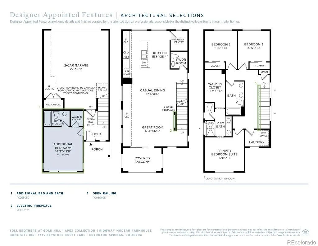 The Ridgway features luxurious living spaces across a desirable three-story layout. Upon entry, a cozy foyer is adjacent to a bedroom and bath complete with a walk-in closet. On the second floor, you’ll find the open concept living room which provides easy access to a covered balcony, ideal for outdoor entertaining. The kitchen connects to a casual dining area and is well-appointed with a sizable walk-in pantry as well as a large center island. The tranquil primary bedroom suite is secluded on the third floor, complete with an ample walk-in closet and a private bath featuring dual sinks, a private water closet, and a luxe shower. Also found on the third floor are two secondary bedrooms that share a full hall bath. Additional features of the Ridgway include a powder room on the main living level, bedroom-level laundry, and ample storage throughout the home.