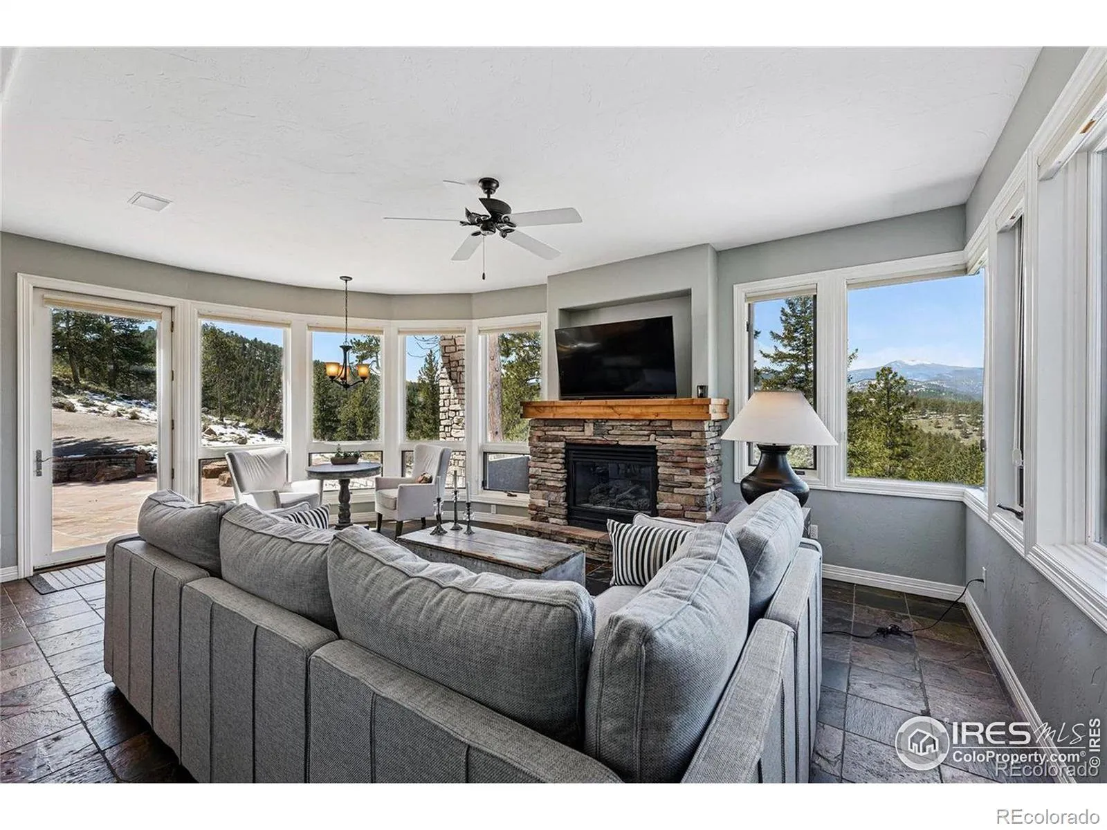 Top-of-the-World Views Luxury, Privacy & Endless Colorado Skies. Perched atop 10 private acres in Evergreen’s exclusive Skyhill Estates, 290 Skyhill is one of just six homes in a gated enclave of prestigious 10-acre estates. Set at the end of the road with no visible neighbors, this 5,155 sq ft retreat offers panoramic views, soaring ceilings, Brazilian slate floors, and radiant in-floor heat throughout. Enjoy a new Sub-Zero fridge, generator, water filtration + RO, fiber + Starlink internet, and buried on-site power lines to protect your views. Flexible spaces include a reading nook, TV room, and home office. Community tennis & pickleball. Just minutes to Denver, Golden, Evergreen, and ski resorts – yet a world apart. Inside, the thoughtfully designed space features soaring ceilings, dramatic windows, and slate flooring that frames mountain beauty from every room. The upper-level primary suite offers spectacular views, spa bath, and walk-in closet. Downstairs with soaring ceiling height and walkout light and windows, a large TV room/office, two bedrooms, and a built-in reading nook create flexible space for work or guests. Power outages? Not for you! A new generator keeps everything running. 290 Skyhill offers what few others can: luxury infrastructure, privacy without isolation, designer finishes, and unforgettable views – all in a coveted Evergreen location. It’s the rare mountain home that checks every box – and exceeds expectations.