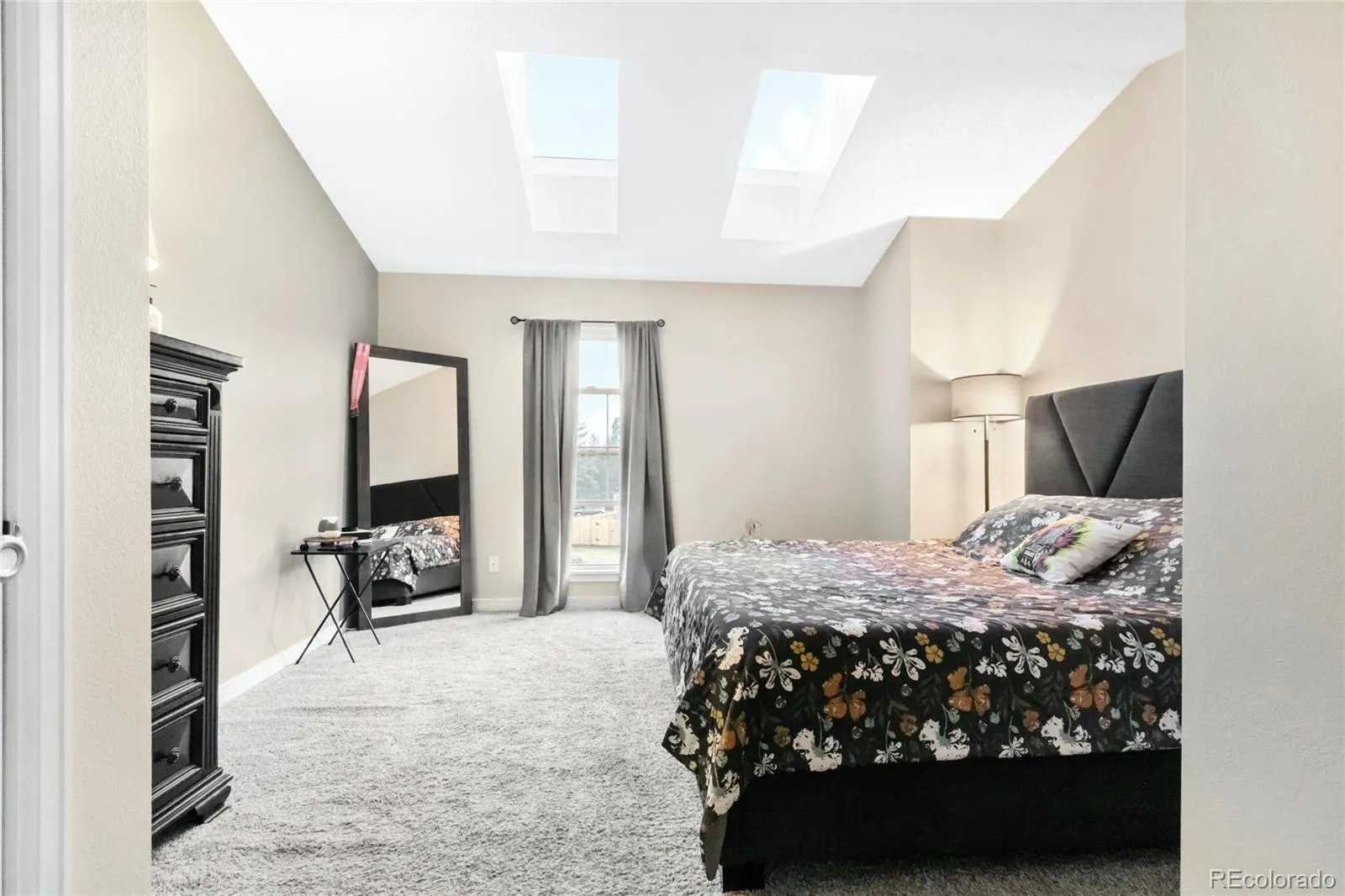 • Updated primary suite with dual closets, vaulted ceilings, and skylights
