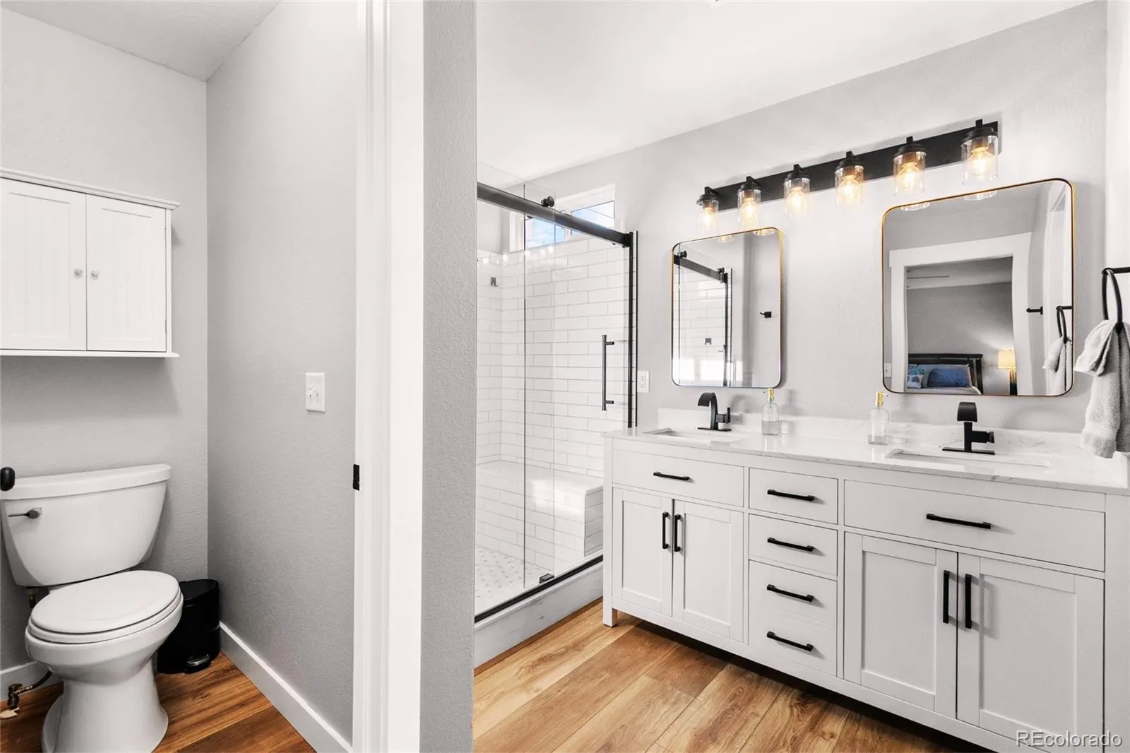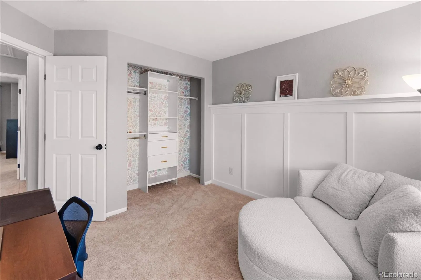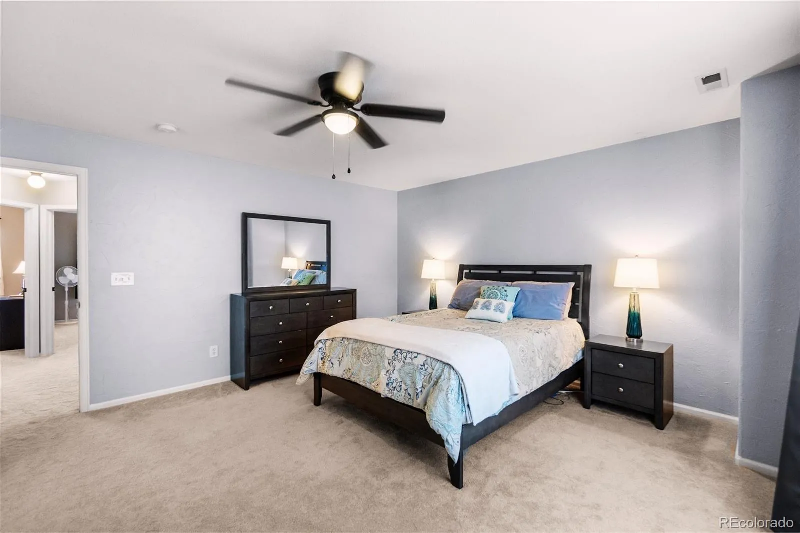 Venturing upstairs, you’ll discover an expansive loft, which offers versatile space that can be used as a home office, playroom, or additional sitting area. The primary bedroom is a true retreat, complete with a luxurious spa-like bathroom that includes modern fixtures, and a walk-in shower. Two generously sized guest bedrooms with ample closet storage are also located on this level, along with a conveniently placed full bathroom in the hallway.