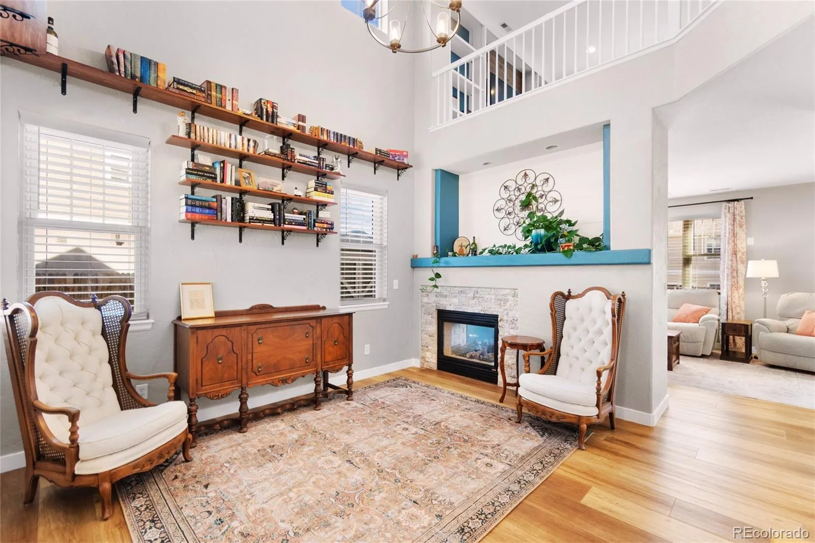 As you enter the home, you will be greeted by soaring vaulted ceilings that create an inviting atmosphere in both the entryway and the formal living area. The ambiance is further enhanced by a beautifully designed double-sided fireplace, which serves as a focal point and can be enjoyed from both the elegant formal living room and the cozy family room, perfect for family gatherings or entertaining guests.